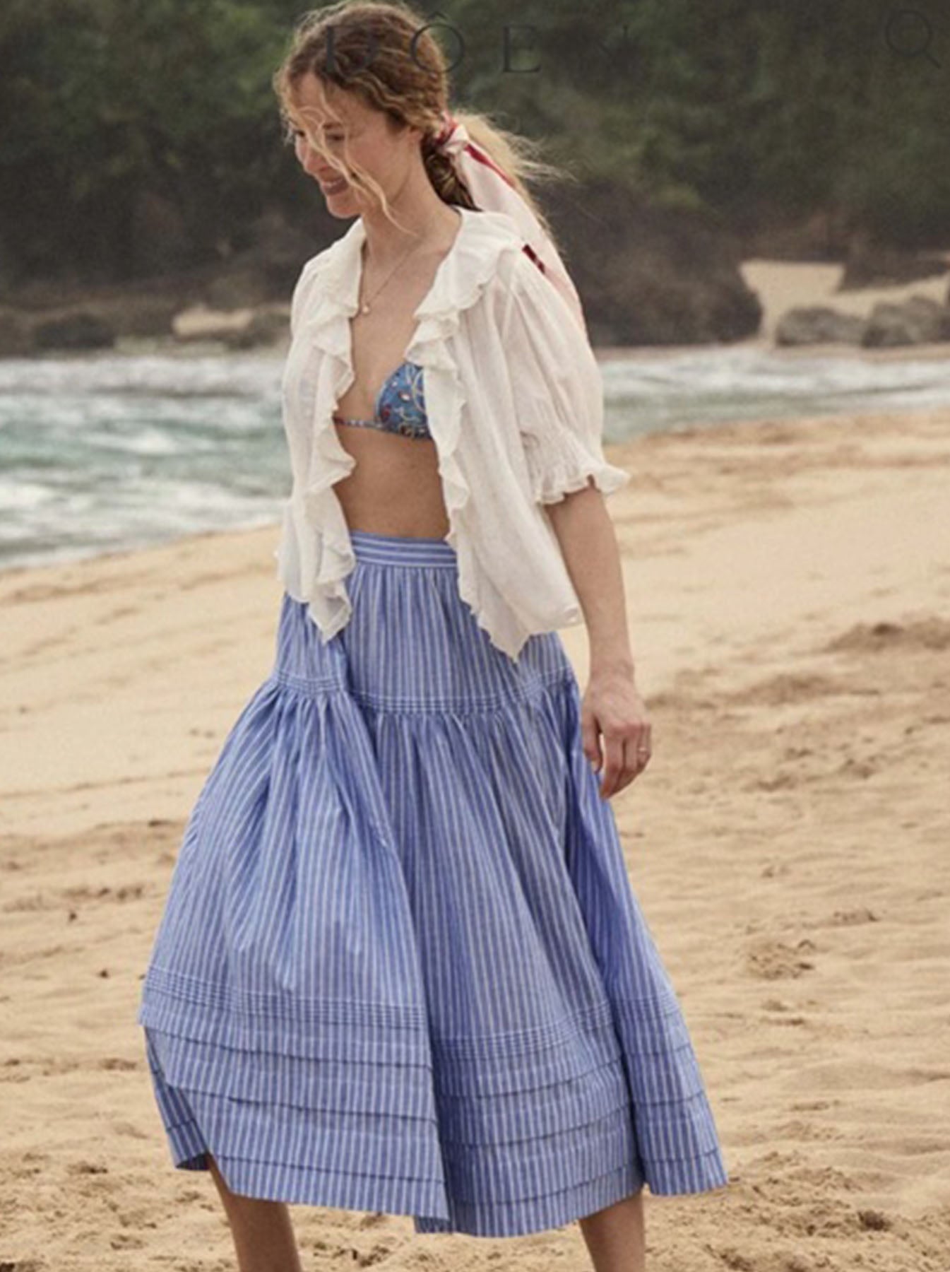 DÔEN is a women-led clothing brand founded by Santa Barbara–born sisters Margaret and Katherine Kleveland. Rooted in coastal California, the brand creates timeless, romantic pieces inspired by the nostalgic, sun-washed style of decades past. Known for its emphasis on thoughtful design, quality craftsmanship, and supporting women throughout its supply chain, DÔEN blends vintage-inspired silhouettes with a modern, effortless sensibility.