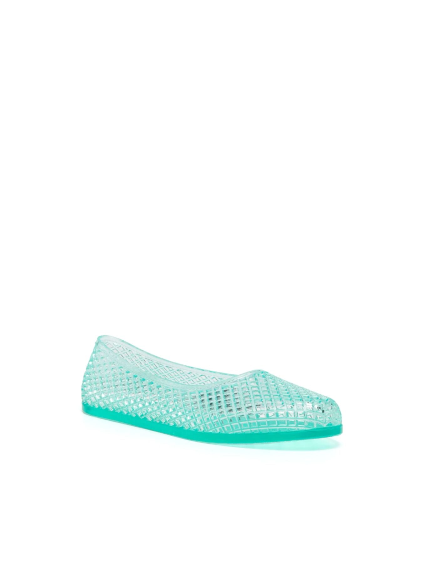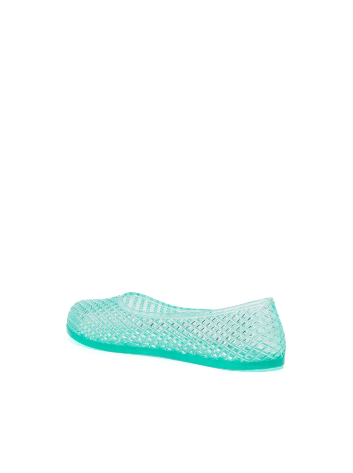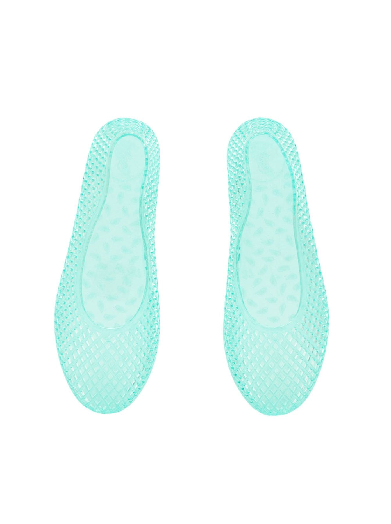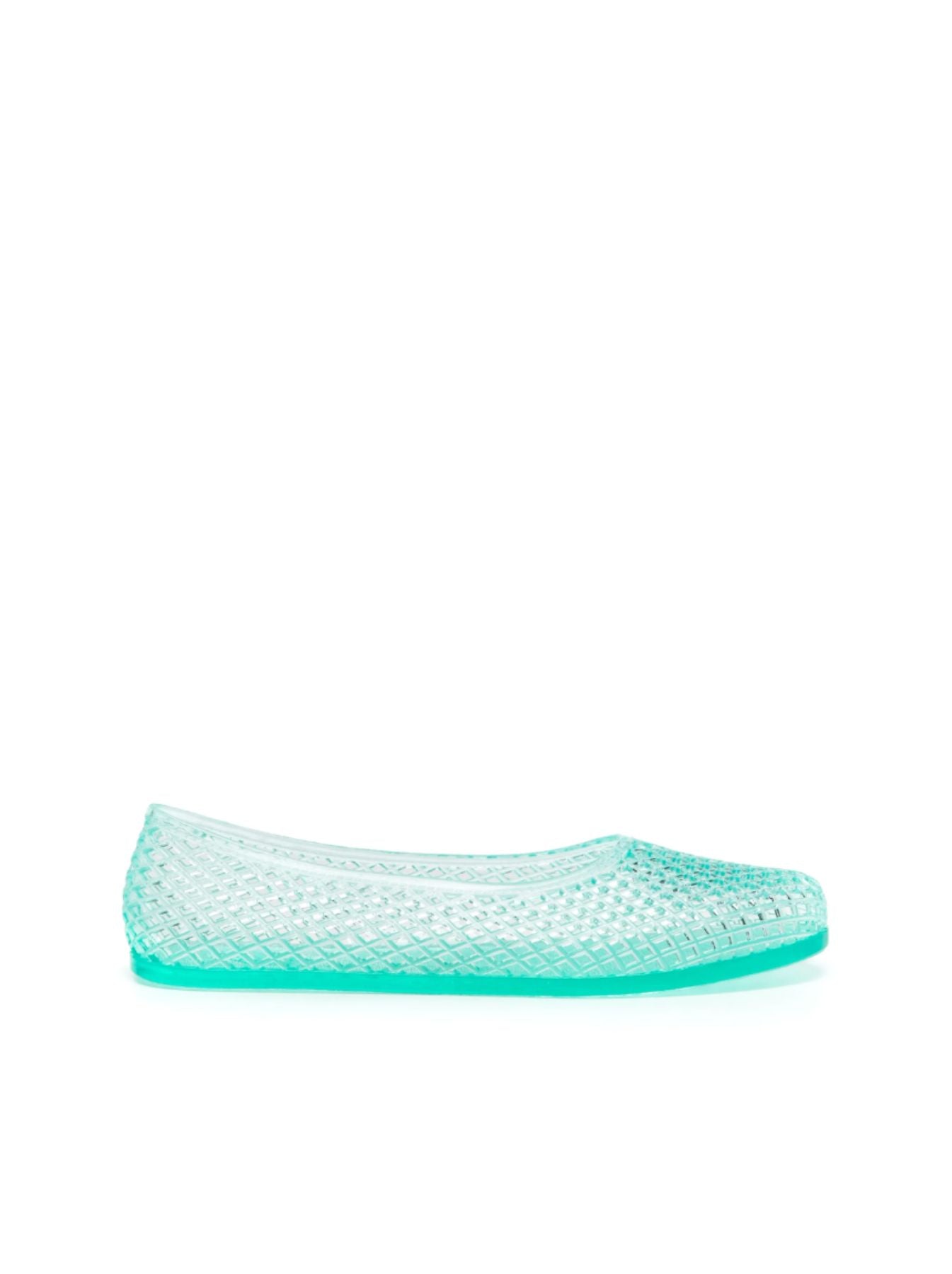 - Details: Rubber-mesh, transparent aqua-green ballet flat