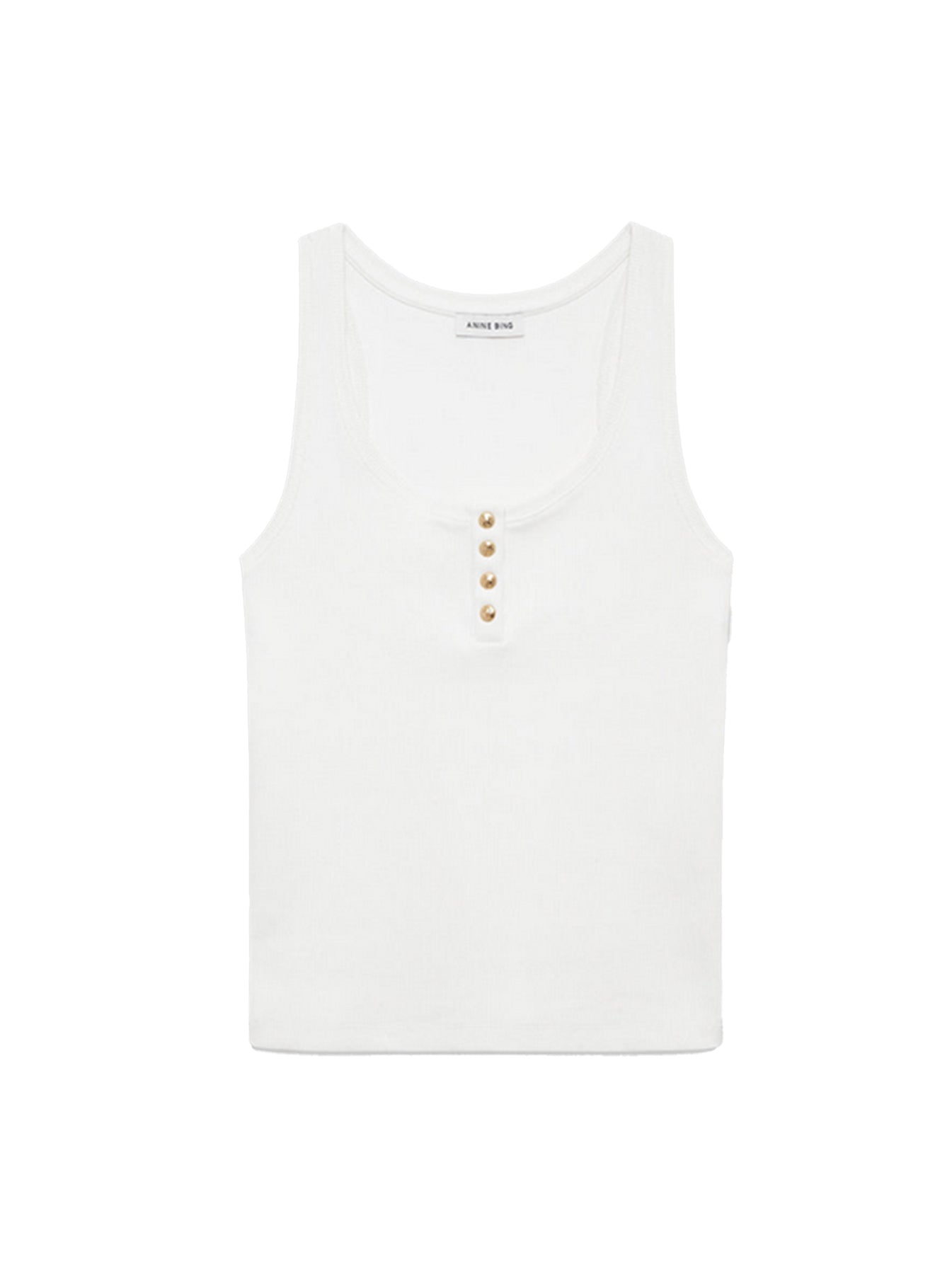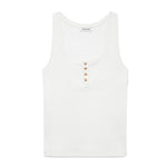 - Details : Ribbed tank with scoop neckline, long-line body and gold button front placket.