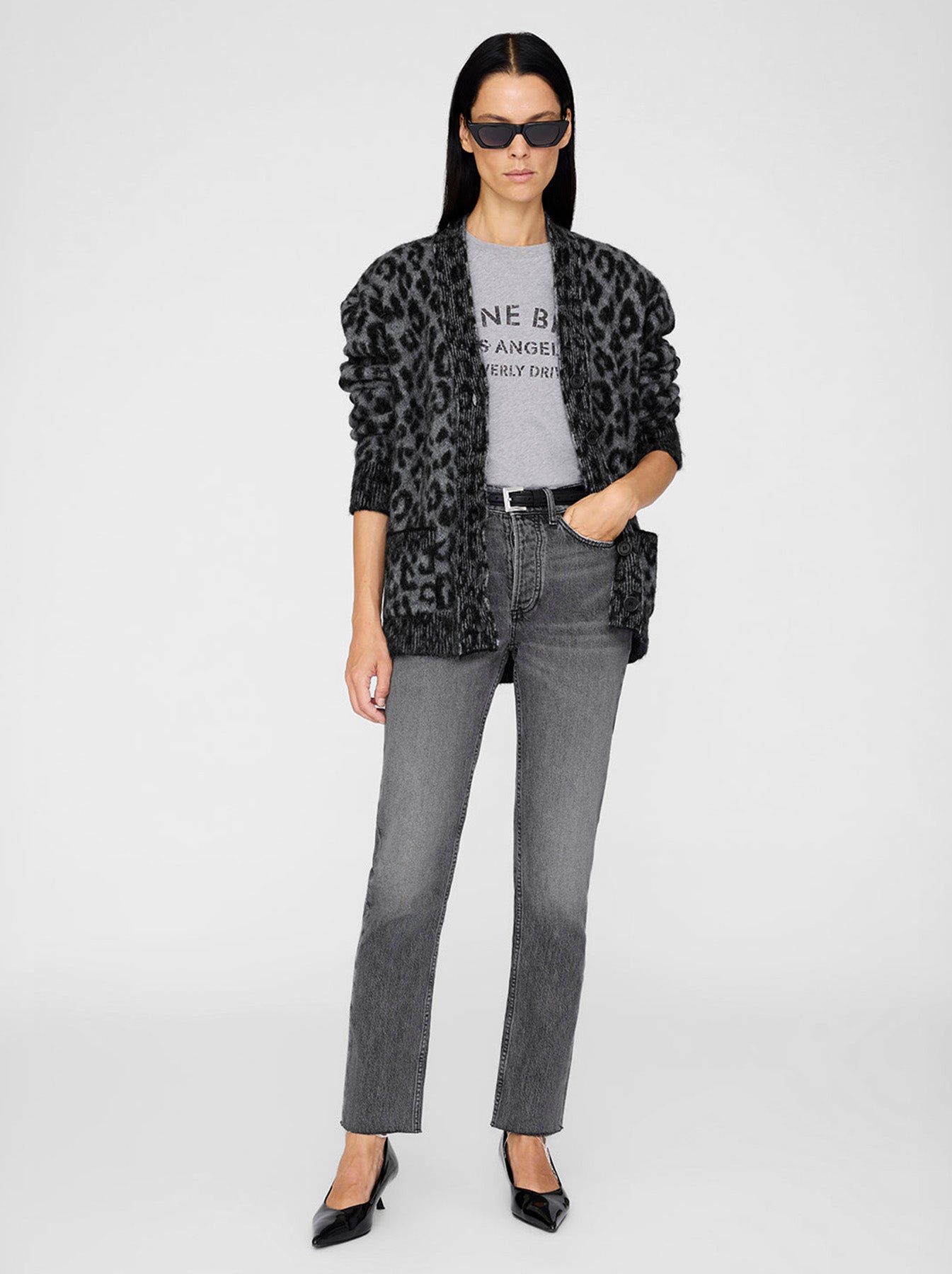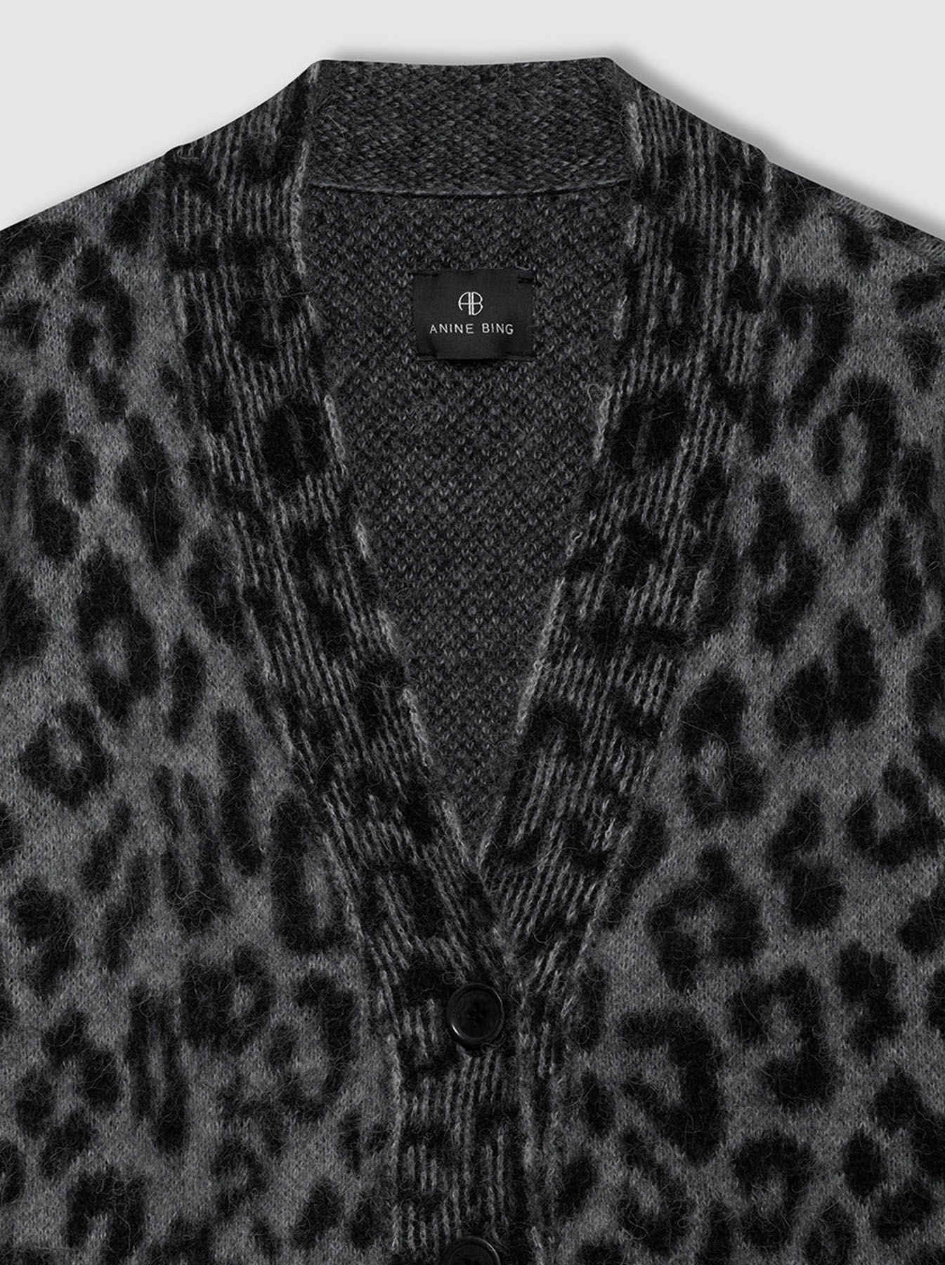 The Banks Cardigan brings an effortless blend of softness and edge. Its relaxed silhouette and muted leopard print make it easy to wear without ever feeling basic. The wool-blend knit offers a light, cozy feel - perfect for everyday layering. Wear it buttoned over slim-leg jeans and loafers for an understated, off-duty look.
