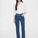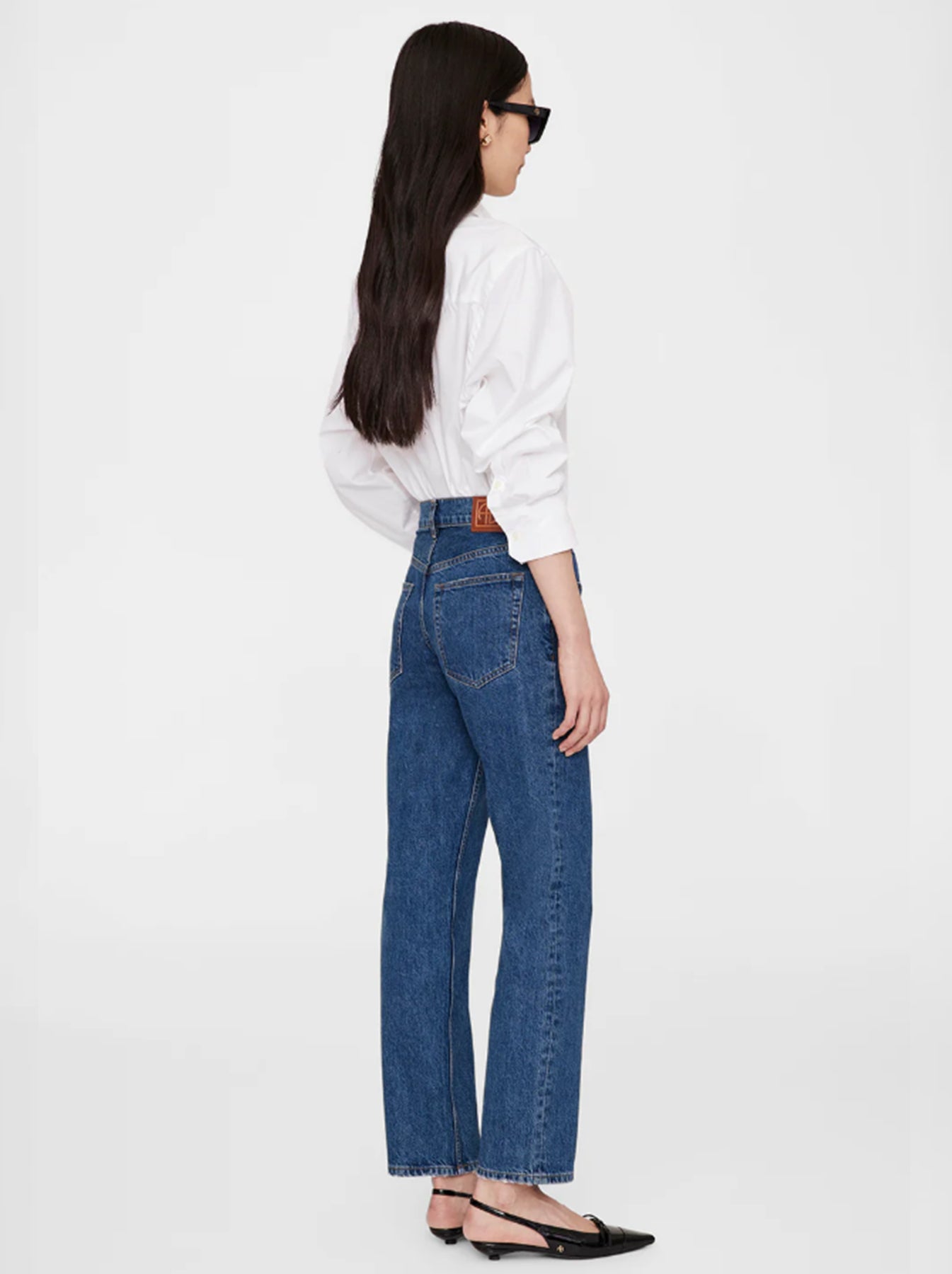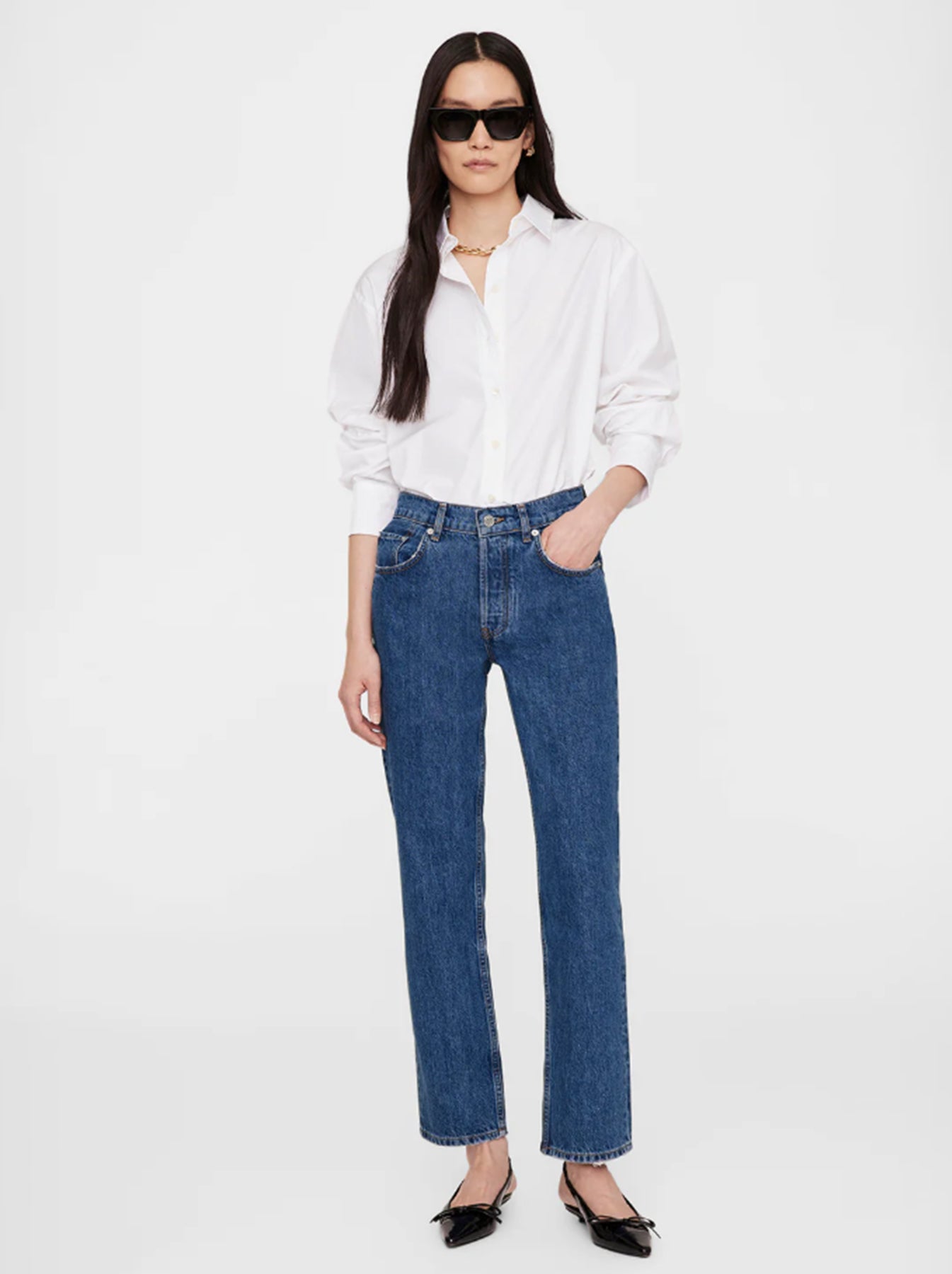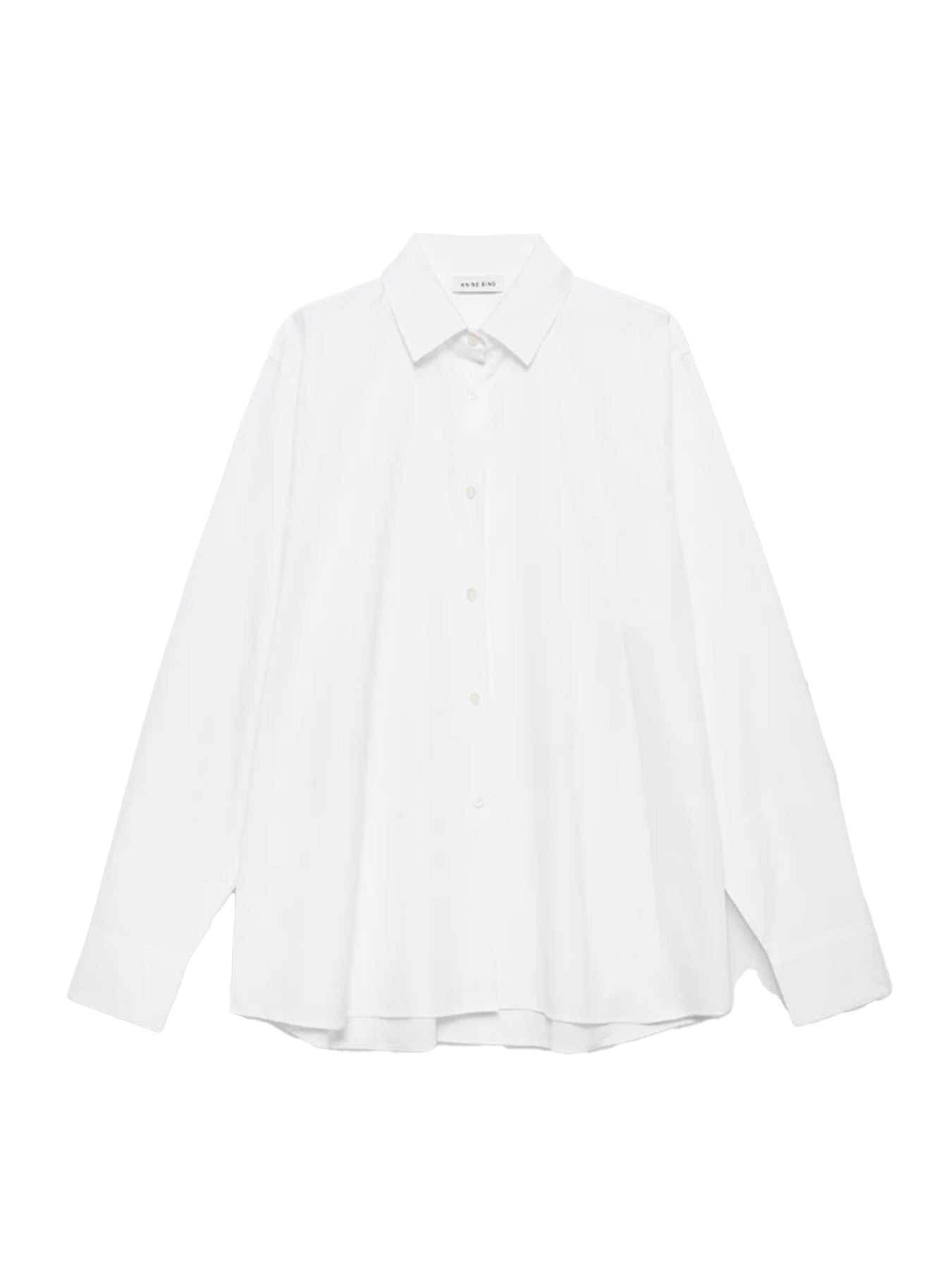 A crisp wardrobe staple by Anine Bing, the Essie Shirt is crafted from 100% cotton poplin, offering a clean structure with a soft, smooth hand feel. It features a spread collar, mother-of-pearl buttons, and subtly dropped shoulders for an effortlessly polished, forged-in-Italy vibe. Keep it classic by tucking it into tailored trousers with loafers, or wear it half-tucked with wide-leg denim for a relaxed-chic look.