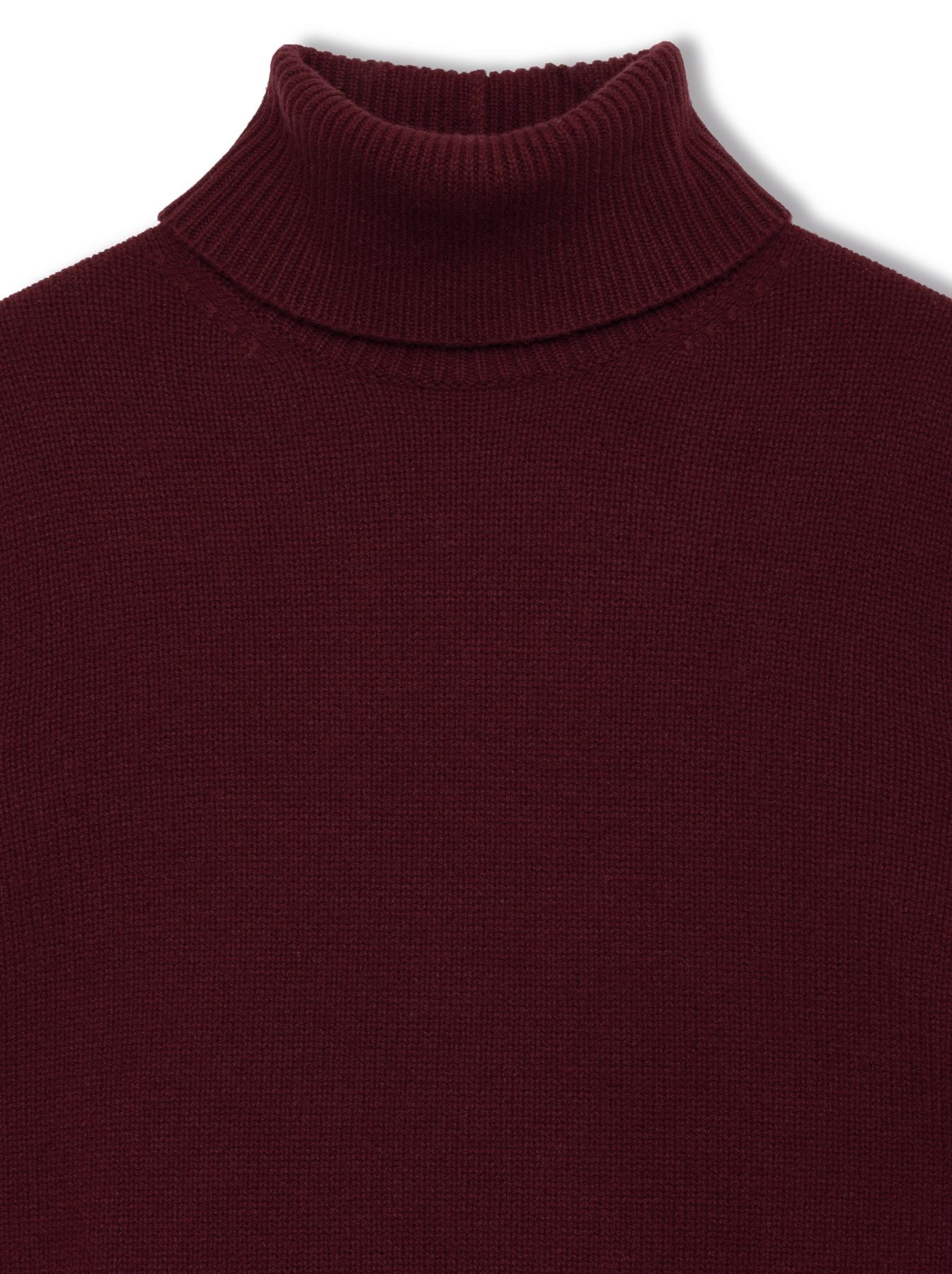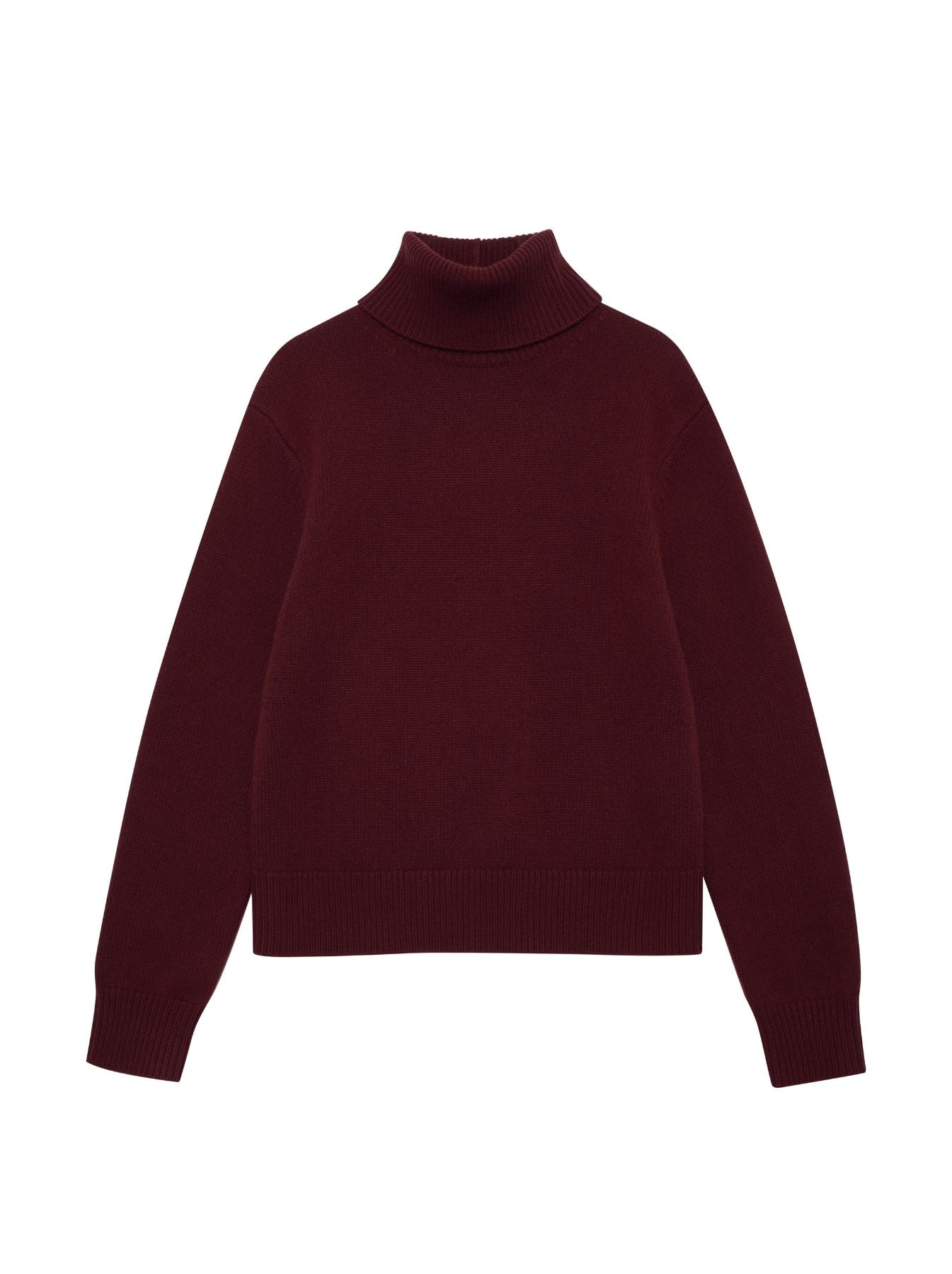 - Details: A timeless, merino wool-cashmere blend turtleneck, featuring refined ribbing at the neck, cuffs, and hem in a deep burgandy.