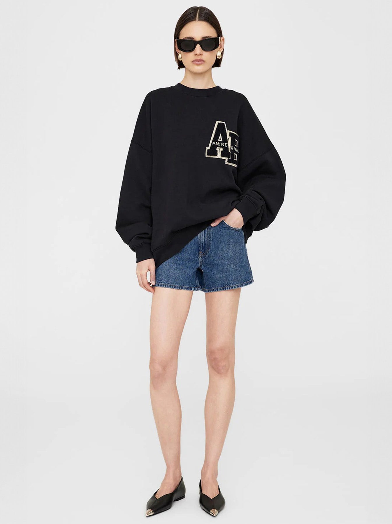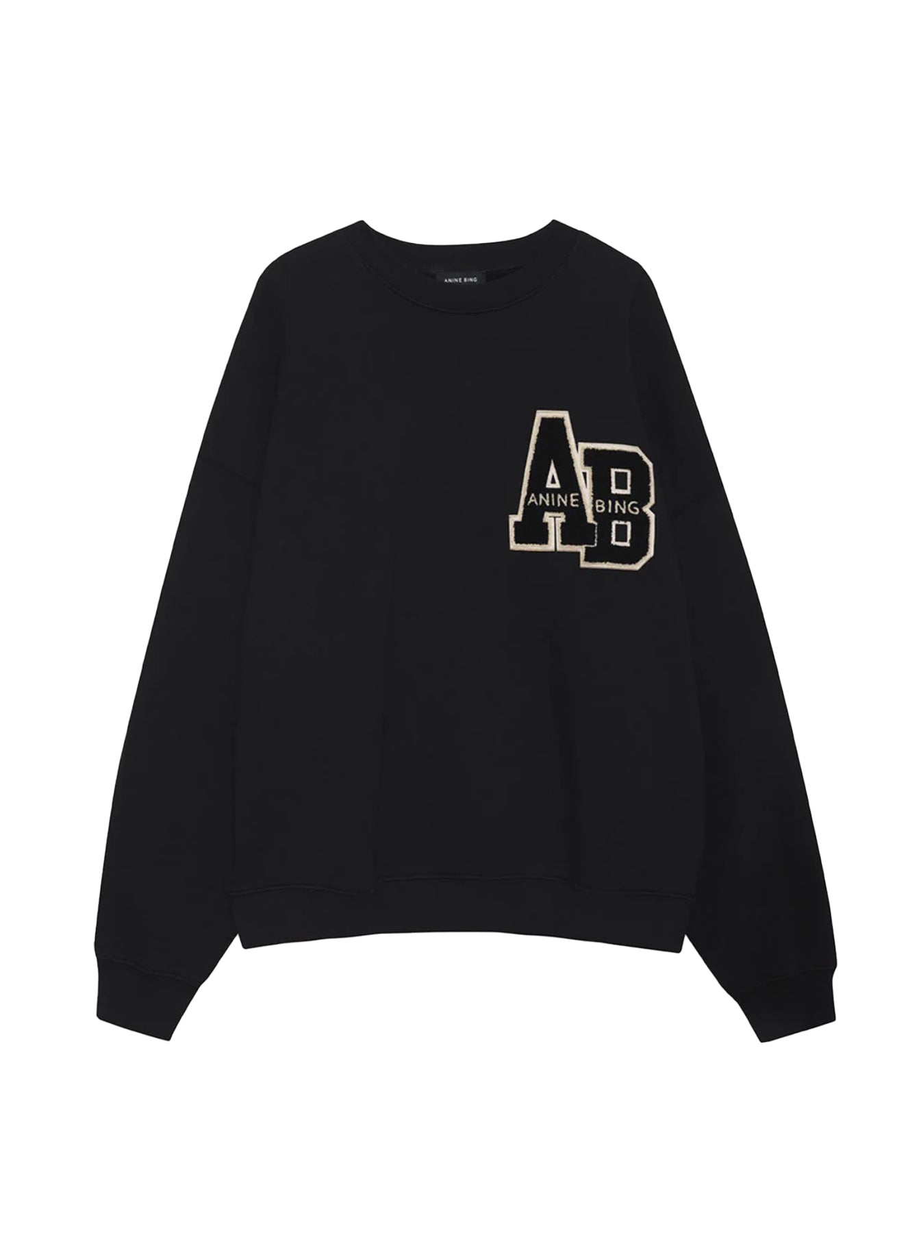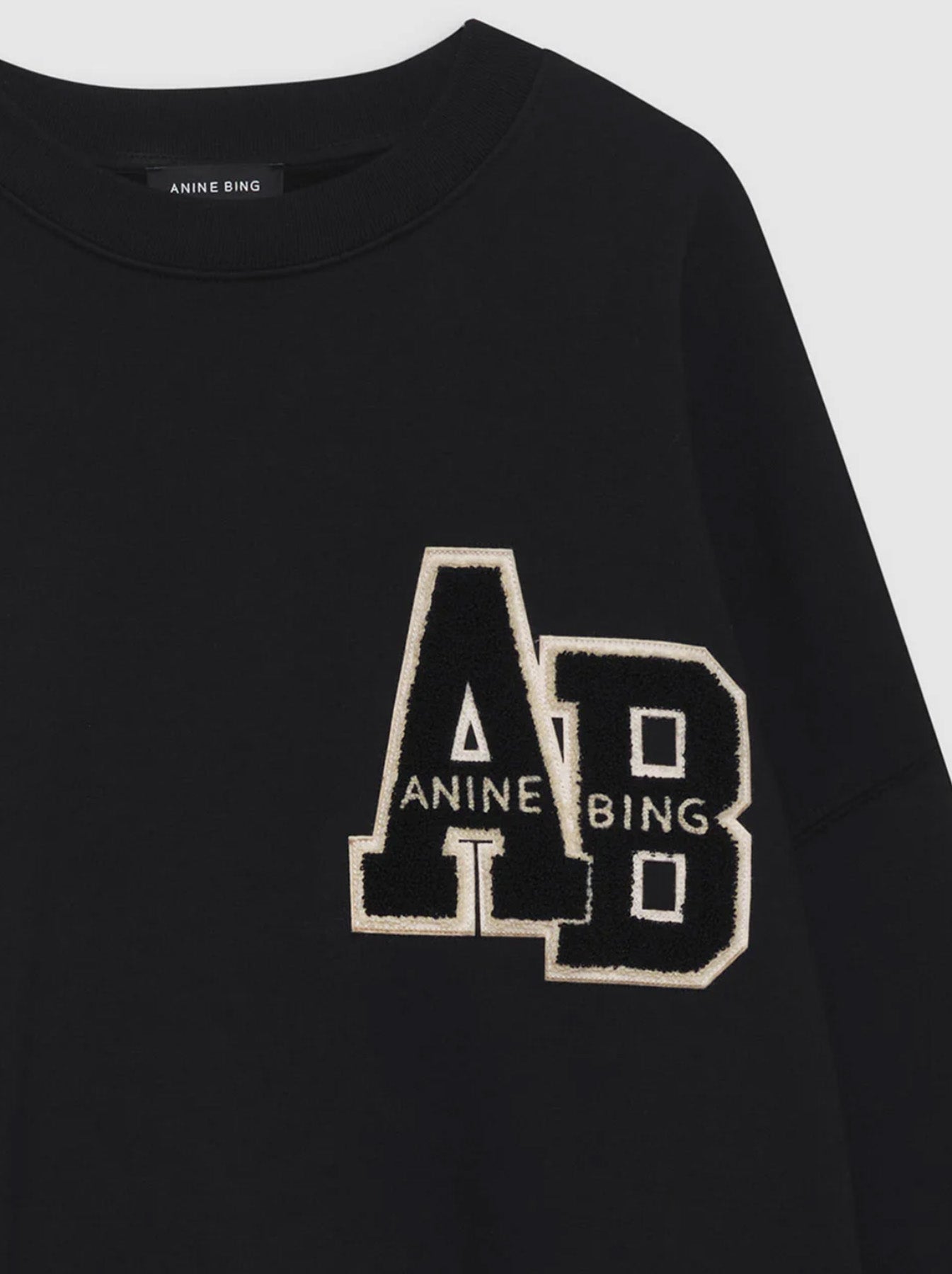 - Details: Classic oversized sweatshirt with a shorter body and boxier fit in comparison to other Anine Bing sweatshirts - Embellished with an Anine Bing "AB" cream and black, chenille patch on the front right of chest.