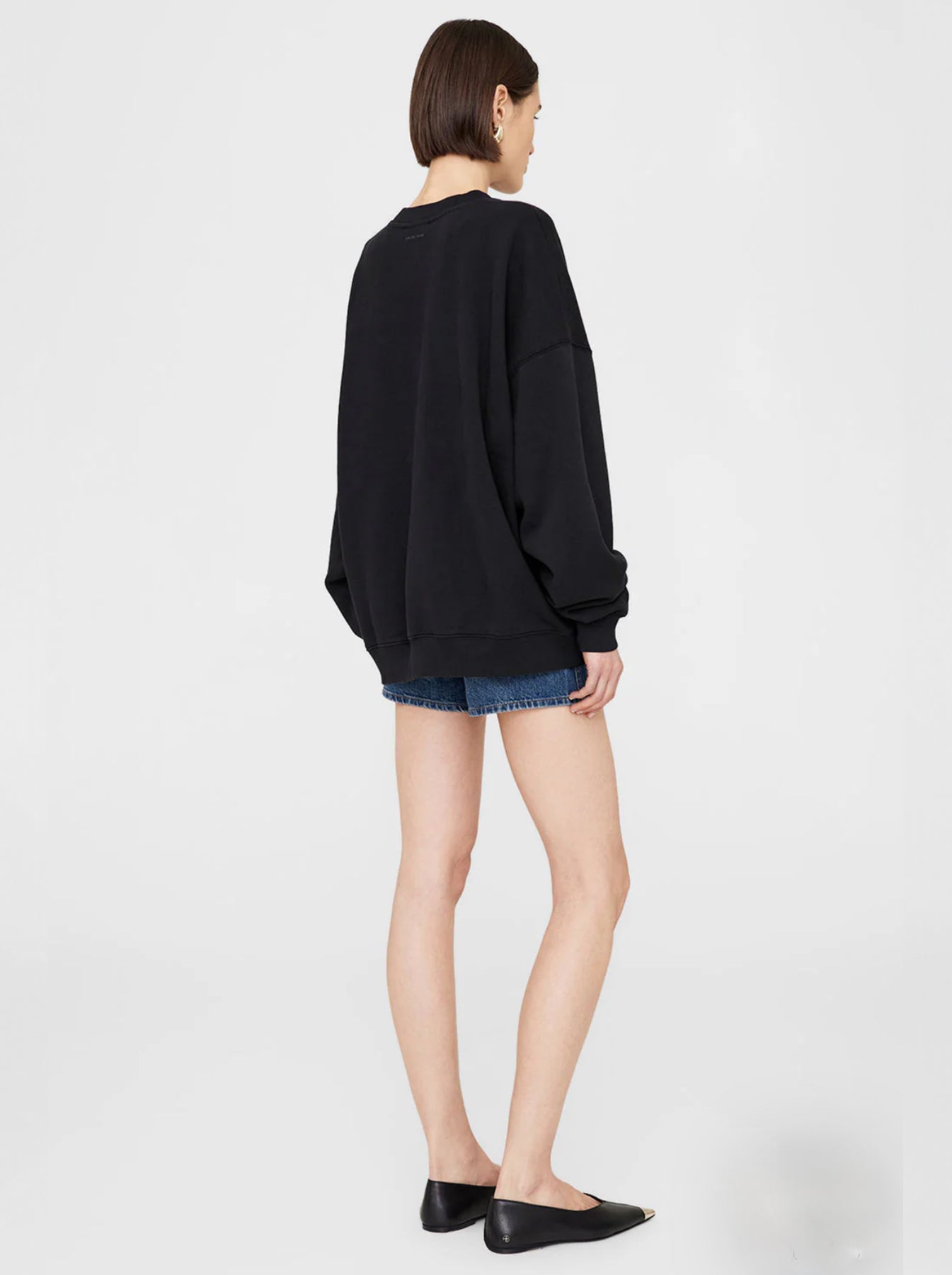 Introducing the new Anine Bing Miles Oversized Sweatshirt Letterman - a comfy crewneck sweatshirt crafted from midweight 100% organic cotton in classic black. The Miles sweatshirt is elevated by an iconic ANINE BING letterman chenille patch, hand-stitched onto the chest, to create that signature collegiate-inspired style. This lounge-wear-inspired sweatshirt features an uber-relaxed fit, generously cut with a slightly widened and chopped silhouette. Wear it into the summer with shorts to keep the chill off.