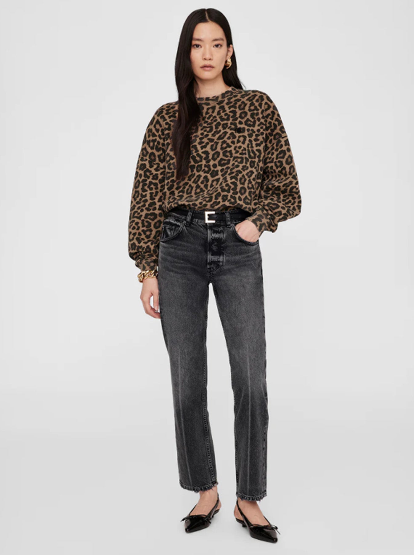 Miles Oversized Sweatshirt - Black and Brown Leopard