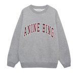 The Spencer Sweatshirt by Anine Bing is crafted from a mid-weight melange cotton fleece in a heather grey shade. This crew neck pullover showcases a custom "Anine Bing" graphic in contrasting red across the chest. With a cropped, boxy fit similar to the popular Tiger Sweatshirt, it offers a laid-back, casual vibe. Mix and match with the new Karter Joggers in reg for stylish relaxed look.