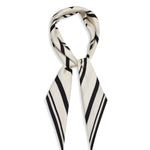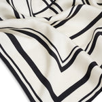 The York Scarf by Anine Bing is crafted from 100% silk, with a smooth, lustrous feel that drapes beautifully around the neck or acts as a perfect bag accessory. Its ivory base is contrasted by bold black borders and centered with a striking oversized AB monogram, creating a graphic, statement-making print that feels both modern and timeless.