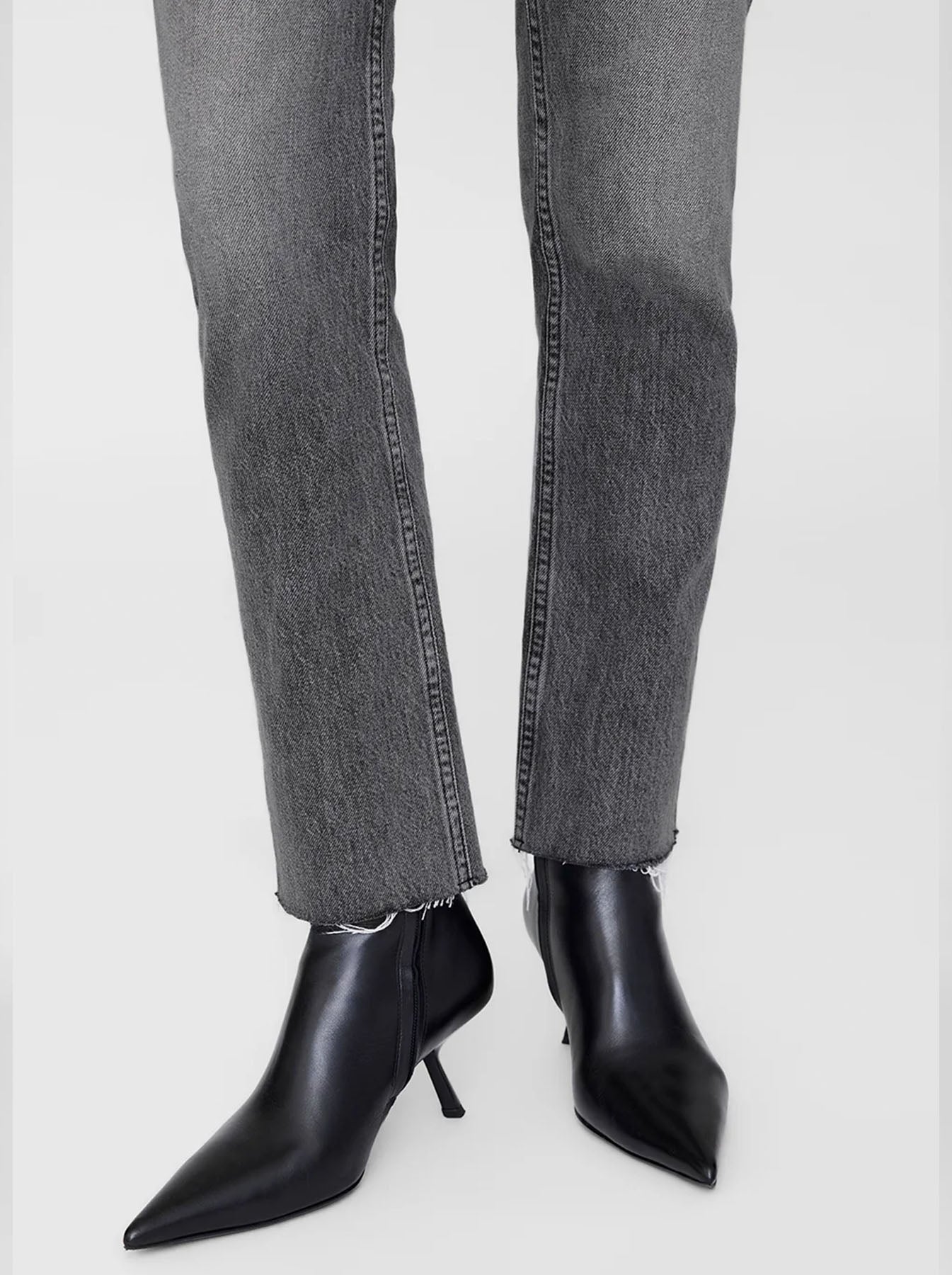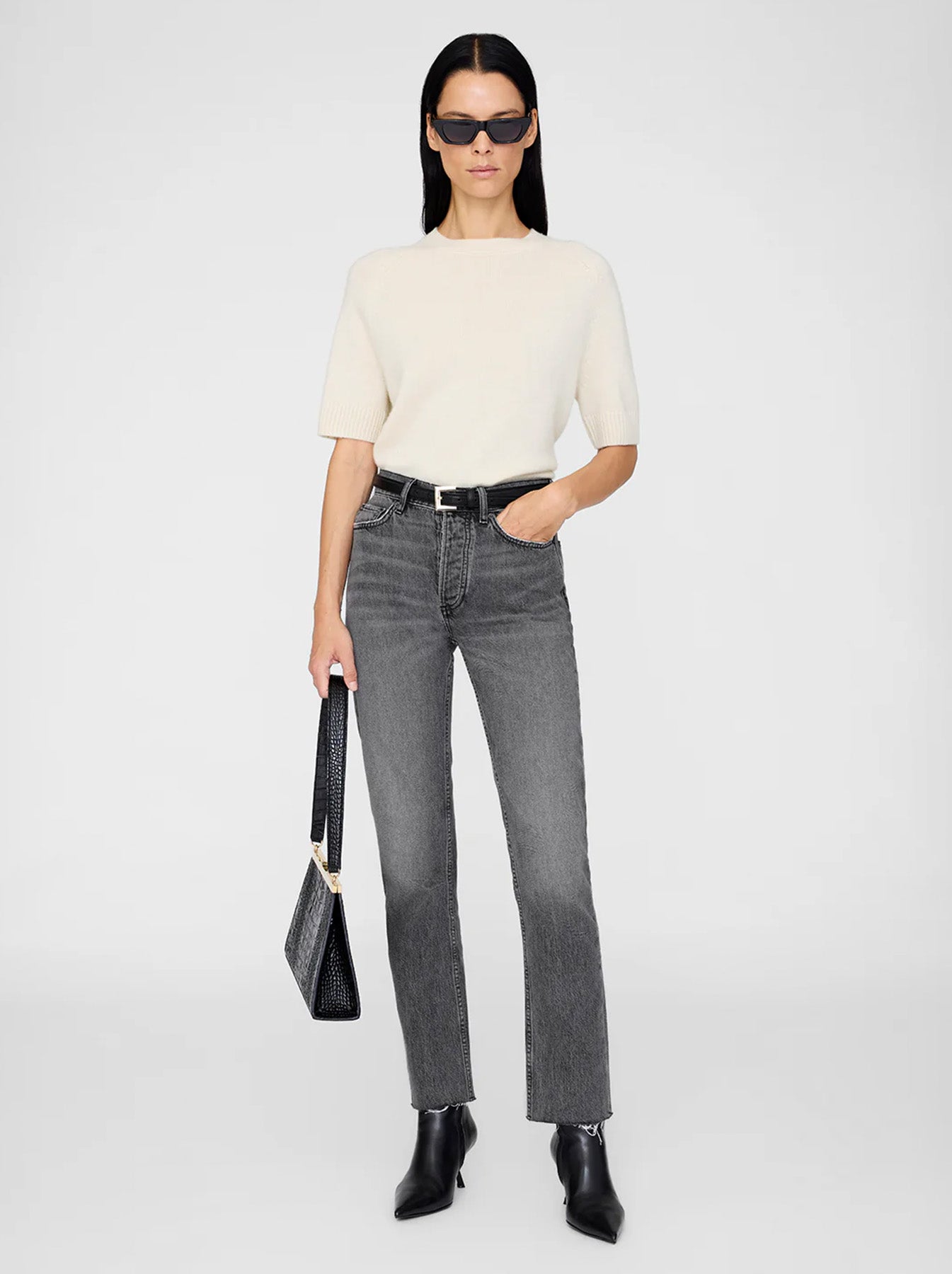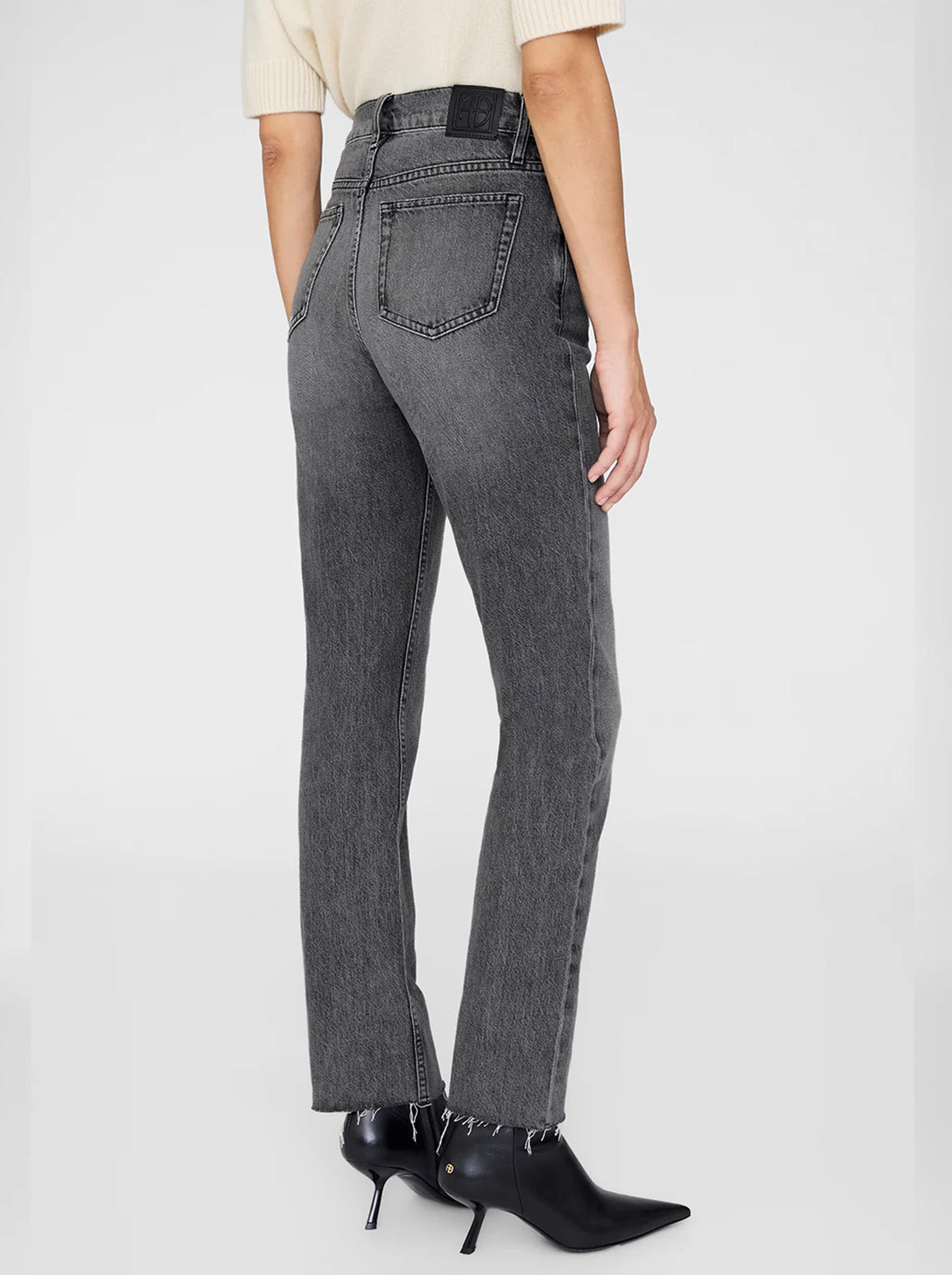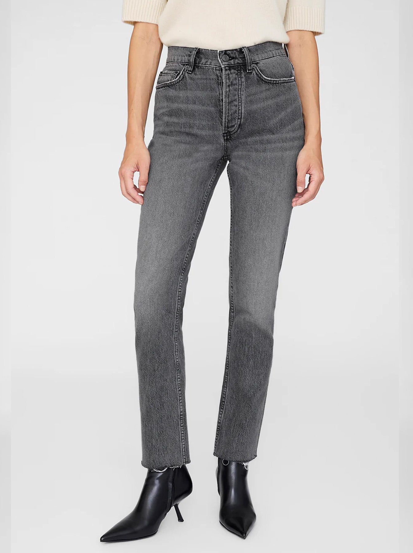 The Bruno Jean from Anine Bing is made from midweight regenerative cotton denim in a light grey wash for a subtly vintage feel. Cut with a high rise and straight leg, it includes a zipper closure and an ankle-length inseam, while the raw hem adds an edgier finishing touch