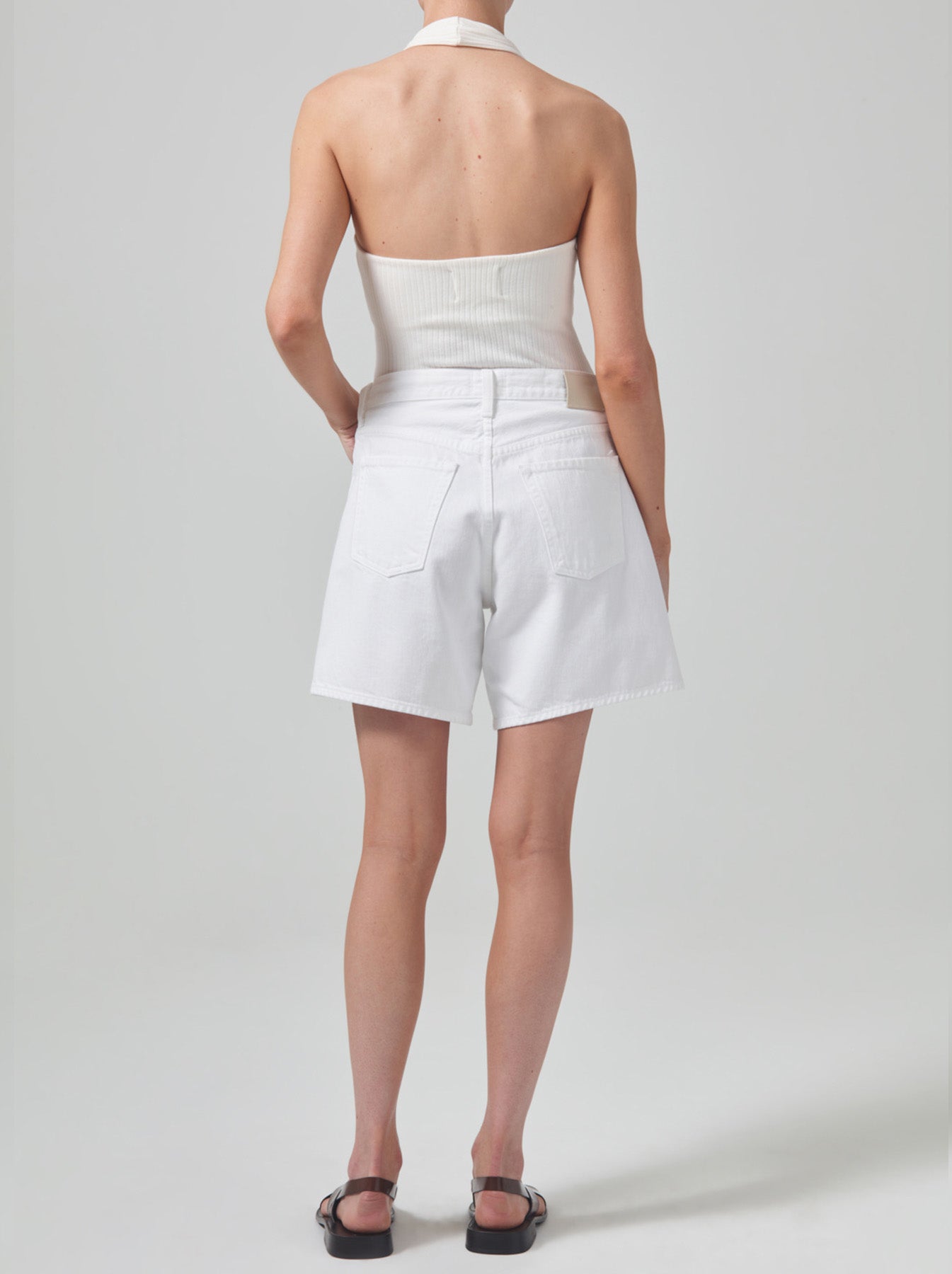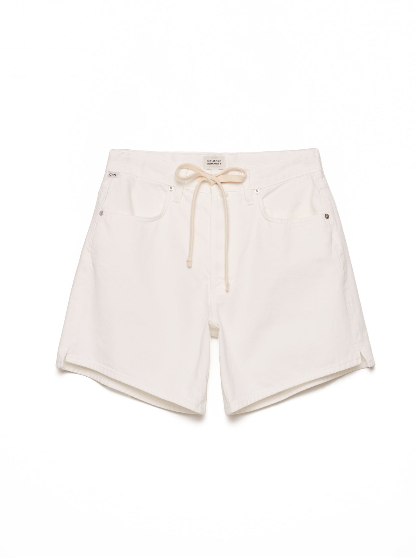 The Brynn shorts from Citizens of Humanity offer a different take on traditional denim shorts with the inclusion of a cotton drawstring on the waistband. Crafted from lightweight cotton, the Brynn sits naturally at the waist with a relaxed leg for the ultimate comfort. These mid-thigh shorts are designed with a small hem slit, adding to their effortless, beachy aesthetic.