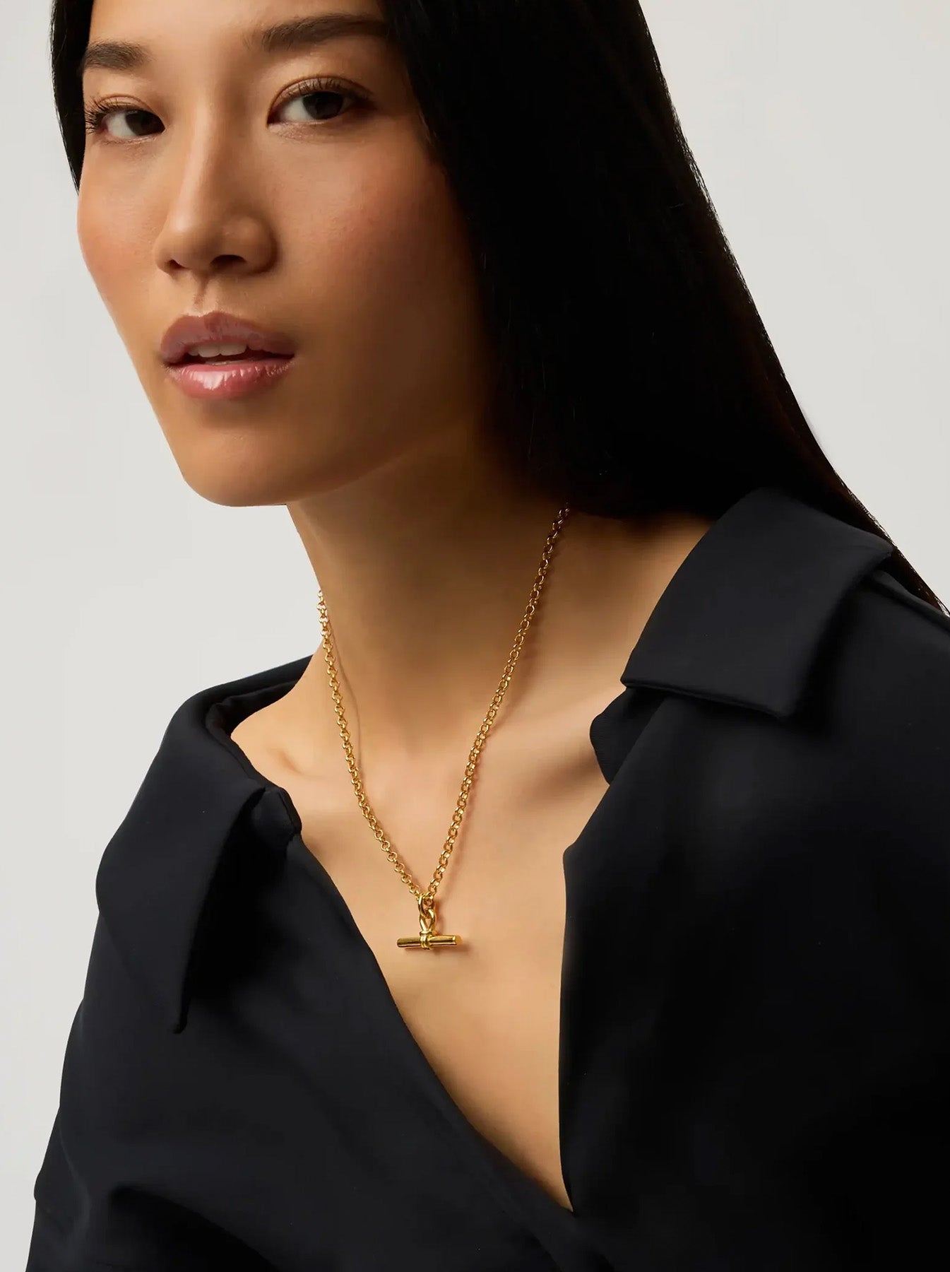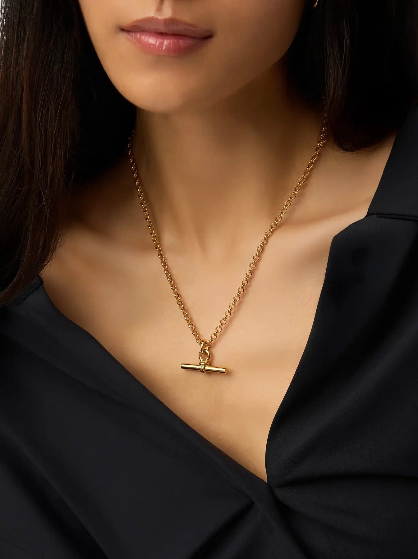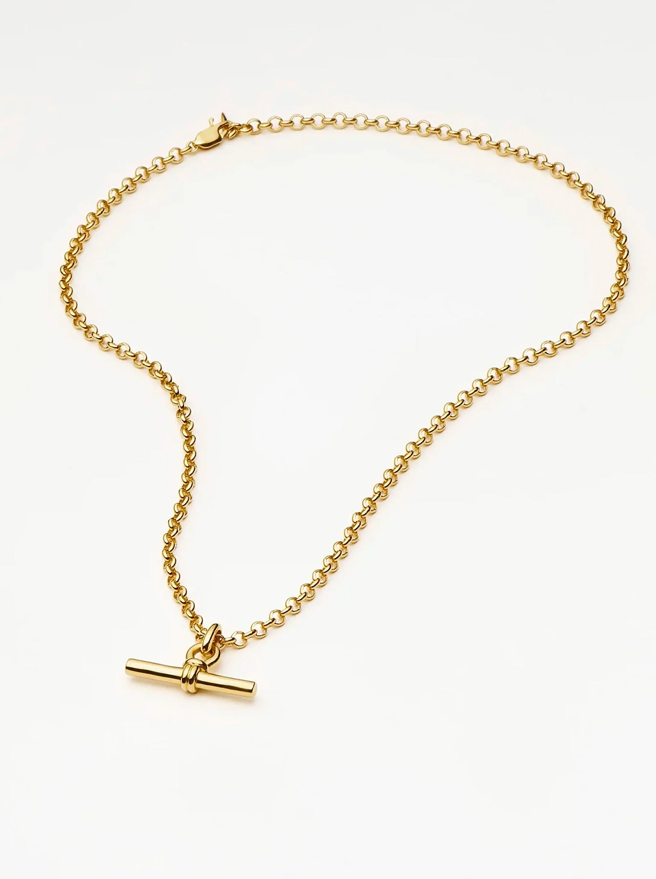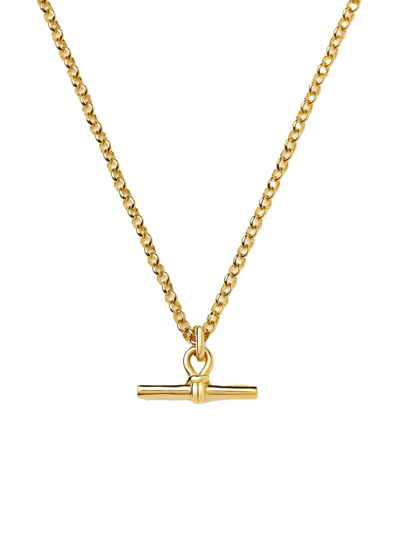 Elevate your jewelry collection with this refined pendant necklace, featuring an iconic T-Bar design reimagined on a substantial gold chain. A versatile staple that transitions effortlessly from day to evening, it works beautifully as a standalone statement or paired with delicate layering pieces for added dimension and elegance.