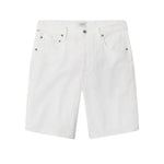 - Details: High to Mid-rise, relaxed bermuda denim shorts in a white denim wash, with a clean hem, tonal stitching, classic 5 pockets, and concealed button fly