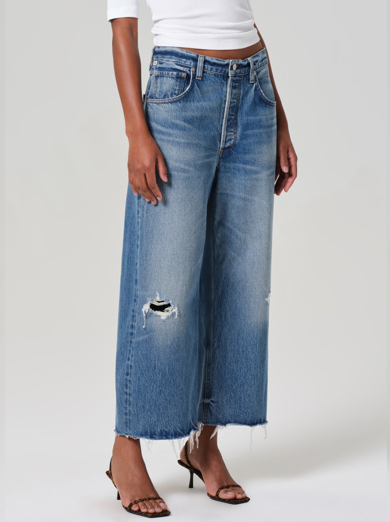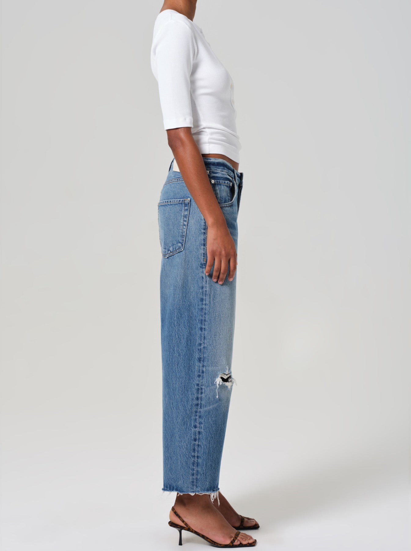 Embodying the essence of vintage aesthetics, Citizens of Humanity brings this striking new Ayla denim addition to their collection. Featuring their well-loved baggy leg silhouette, the new Ayla showcases a perfectly balanced and cropped raw hem with slight distressing for that retro touch. Pair with an oversized cardi and a pointed boot for a casual winter outfit.