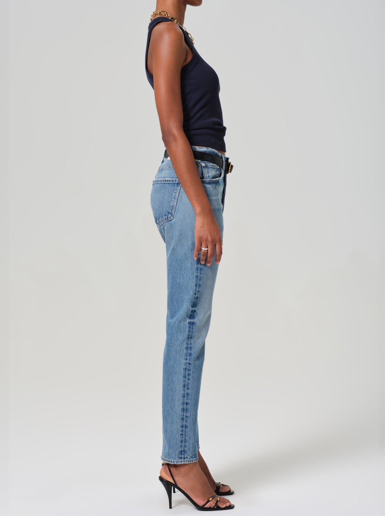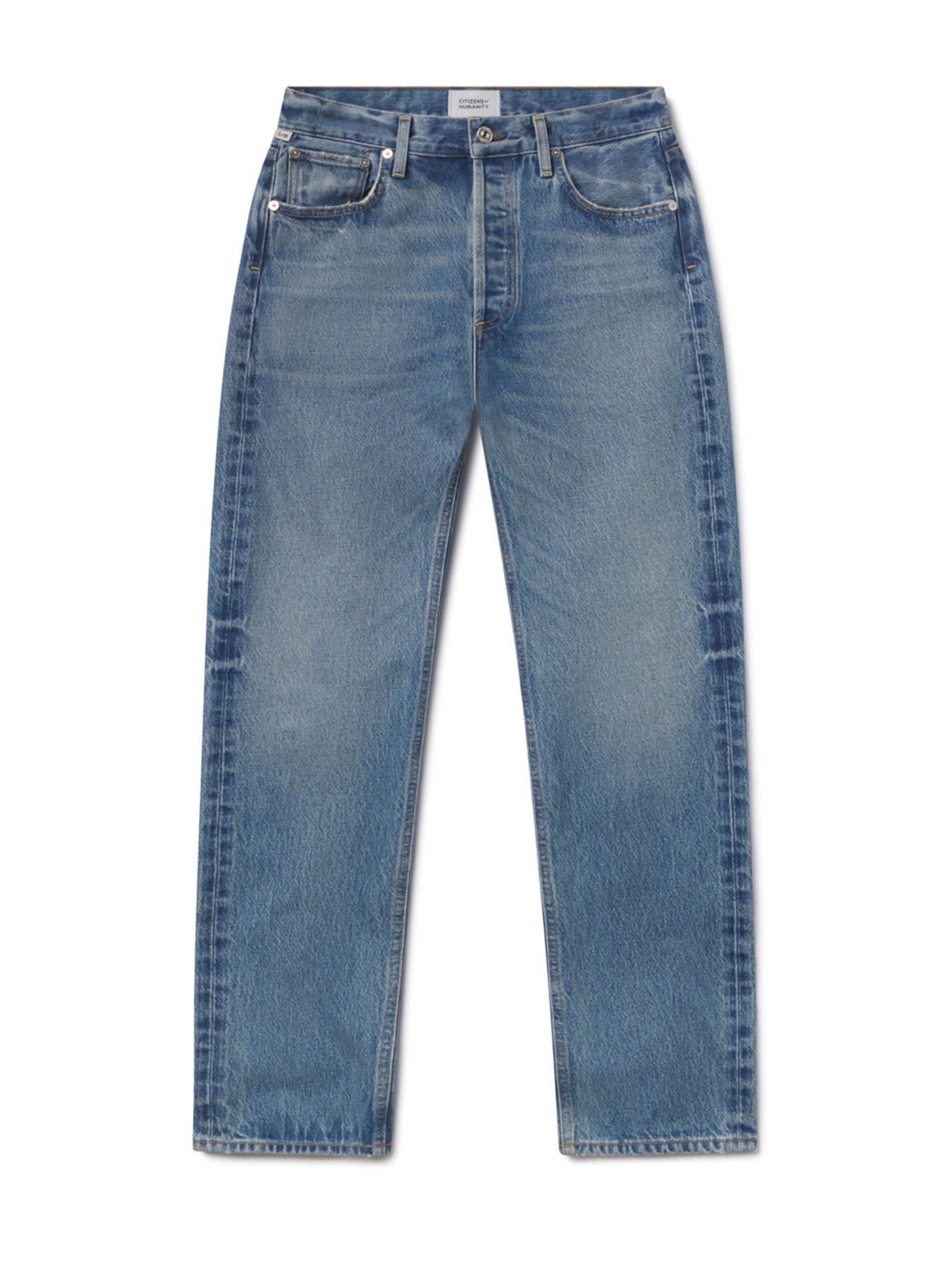 Clean and classic, the Blaine Jeans by Citizens of Humanity feature a flattering high-rise and straight-leg silhouette designed for everyday wear. The Blaine offers a structured fit with a naturally soft, lived-in feel. The Perri wash offers a versatile medium indigo tone with subtle fading for a sophisticated worn-in appearance. Elevate your winter wardrobe by pairing these jeans with an oversized sweater and loafers for a cozy yet stylish look.