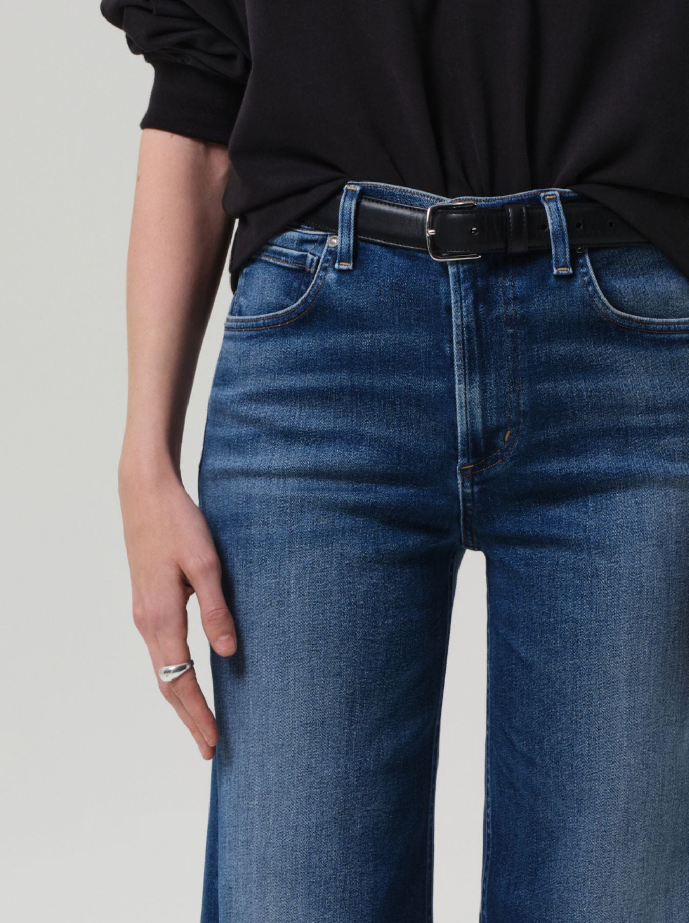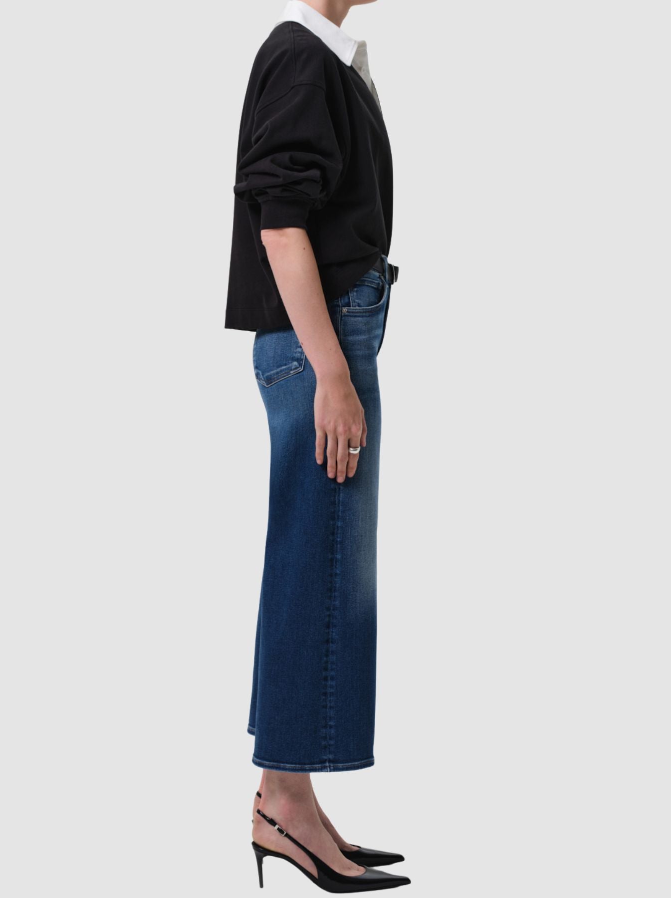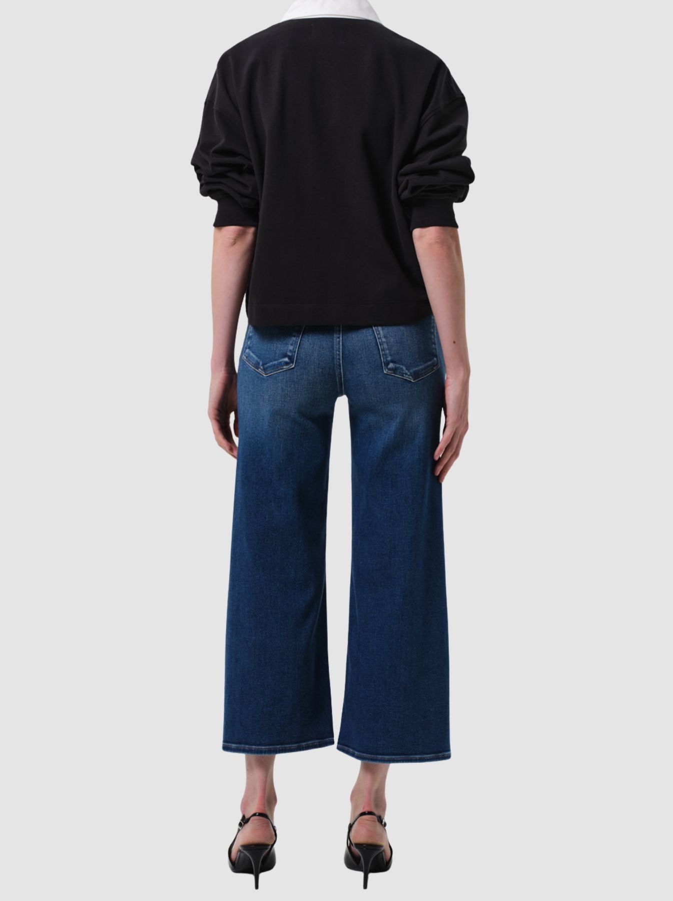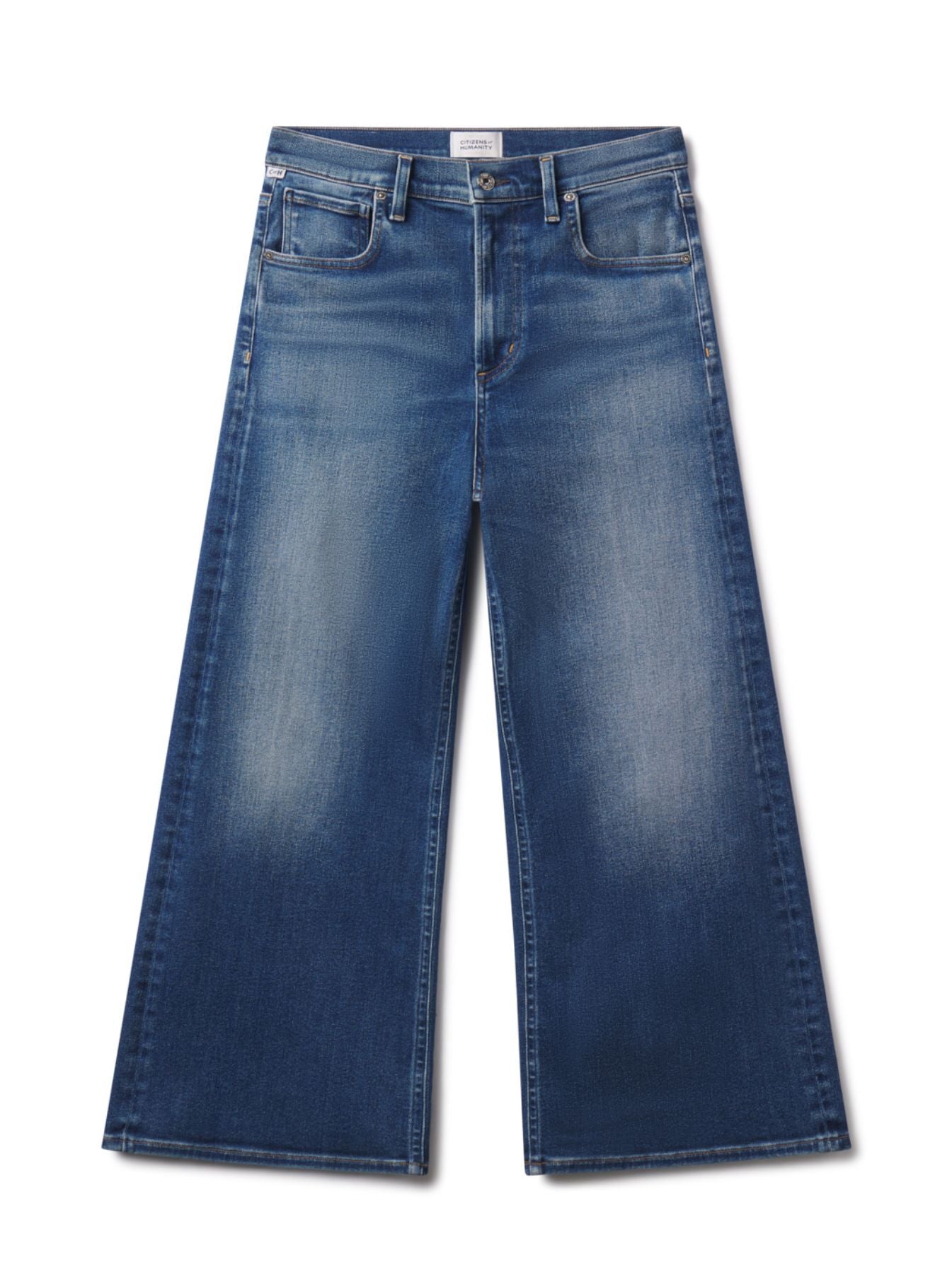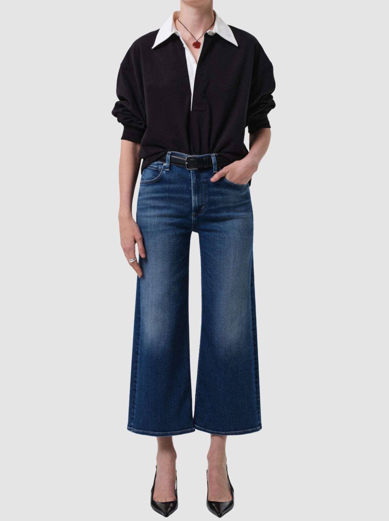Introducing the Lyra Wide Leg Crop from Citizens of Humanity, a vintage-inspired silhouette with a modern twist. Crafted from lightweight stretch denim, it moves with ease while maintaining its flattering shape, a fresh departure from the brand’s signature rigid styles. The cropped, wide-leg cut subtly flares toward the hem, creating a playful, retro-inspired movement. Pair it with a tucked-in blouse and heeled sandals for a look that feels both effortless and fashion-forward.