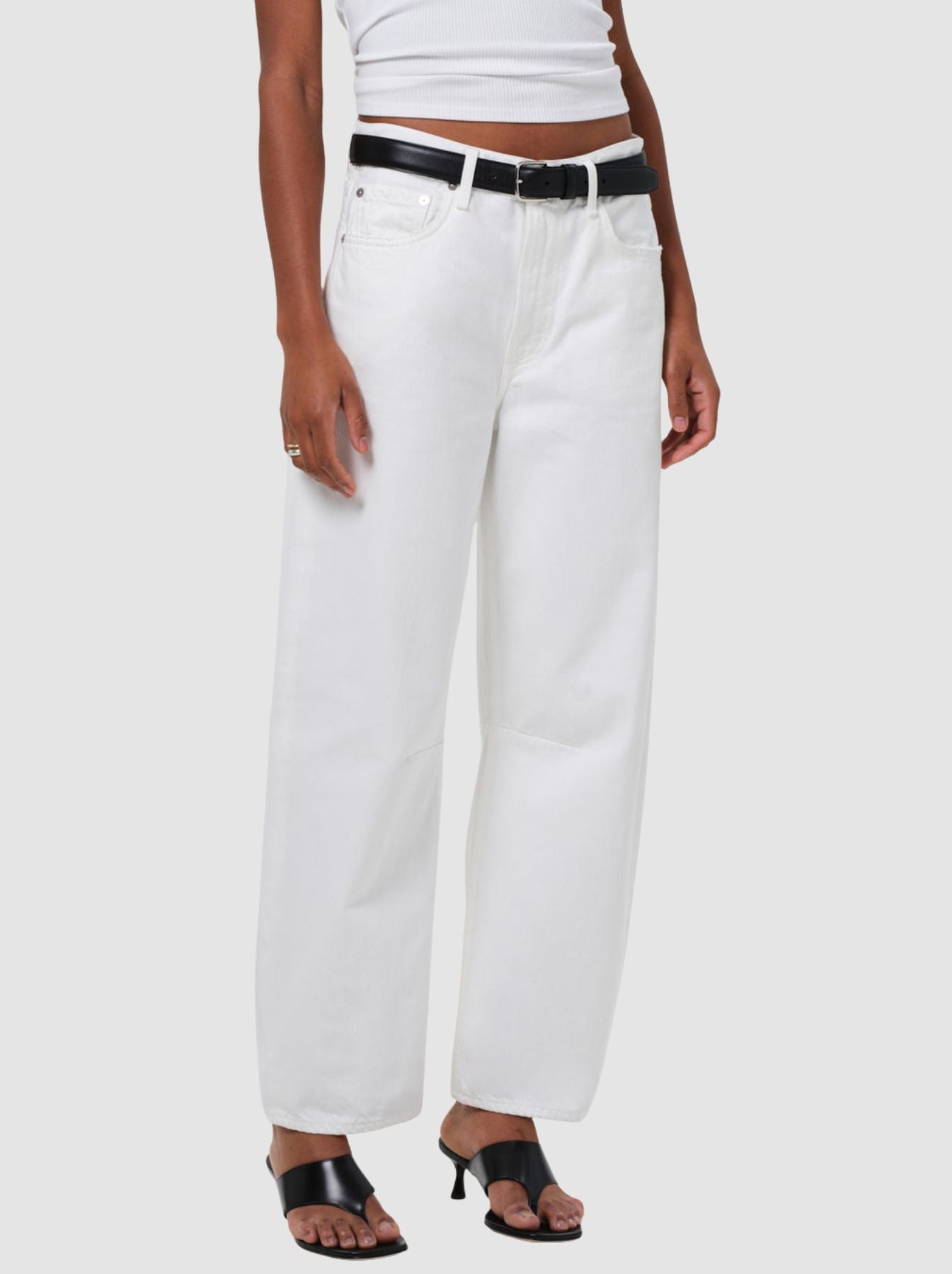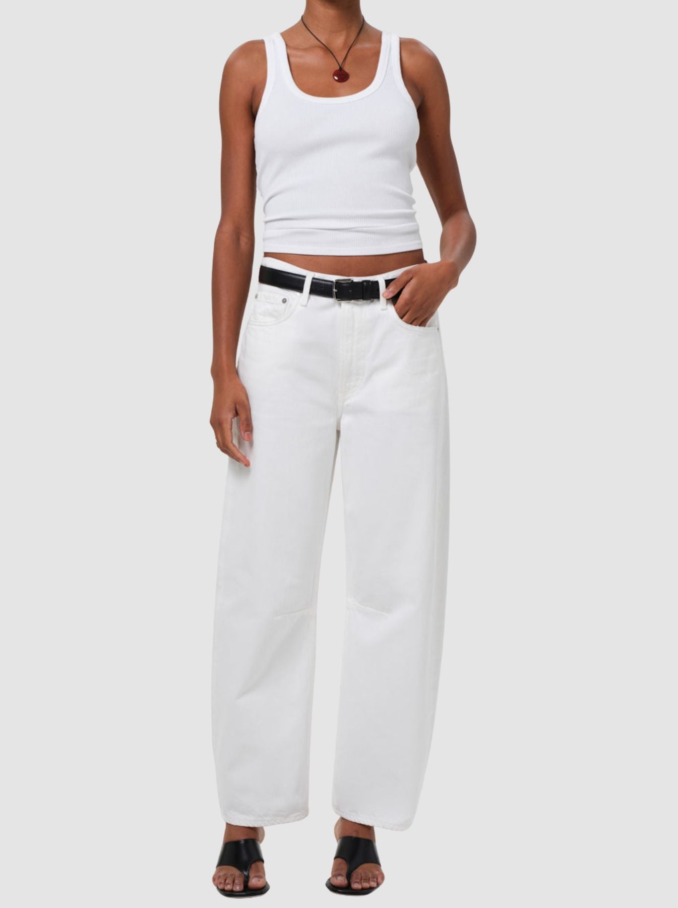 Effortlessly modern, the Miro Jean from Citizens of Humanity features a barrel-leg silhouette that crops perfectly at the ankles. Made from soft yet sturdy cotton, it feels substantial without being restrictive, giving you freedom to move while keeping a clean shape. A light denim option like this brings a fresh, versatile addition to any summer wardrobe. Pair it with a linen vest and minimalist sandals for a fresh, contemporary look.