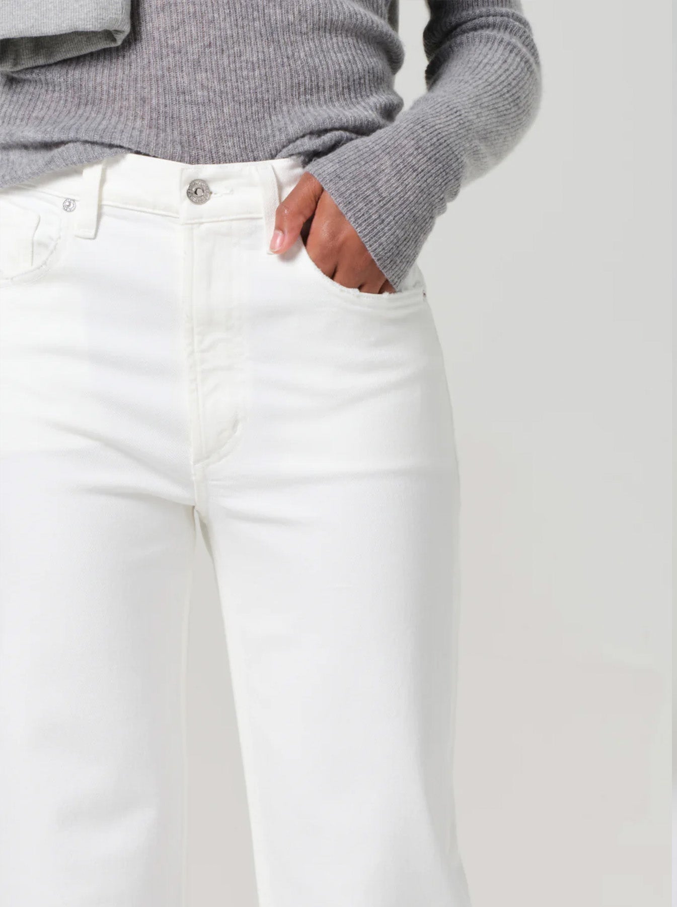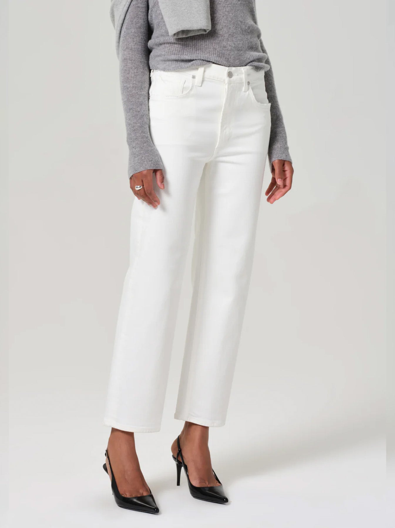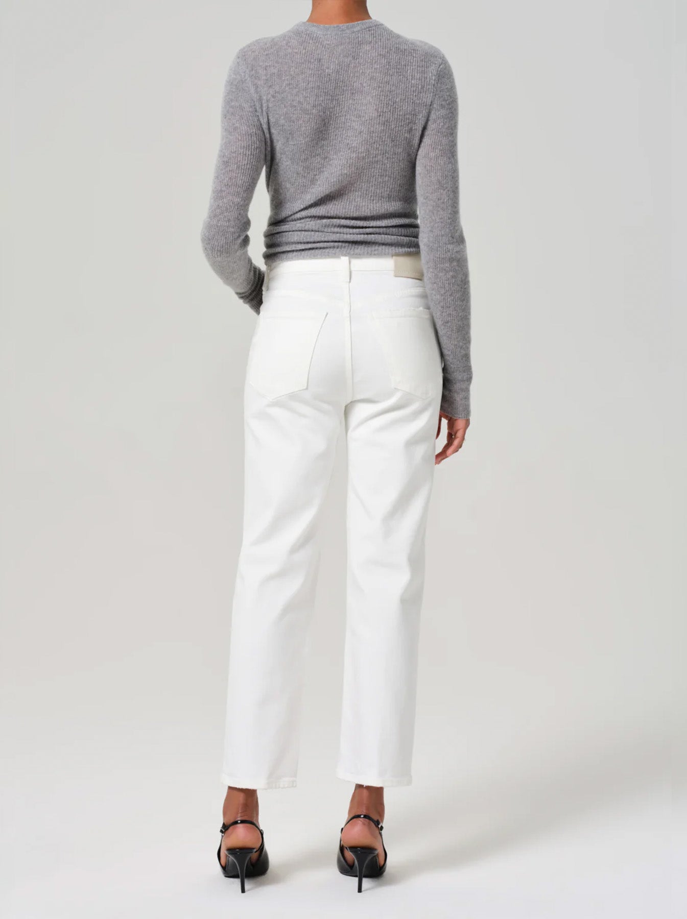 Clean lines and effortless polish define Citizens of Humanity’s Palma Straight Leg Jean, crafted in soft stretch denim with a high-rise fit for flattering support. Designed with a sleek straight-leg silhouette, it elongates the frame while offering comfortable movement. Crisp soft white adds a modern, versatile feel, making this jean a timeless wardrobe staple. Pair with a tucked-in tee and classic loafers for a polished, off-duty look.