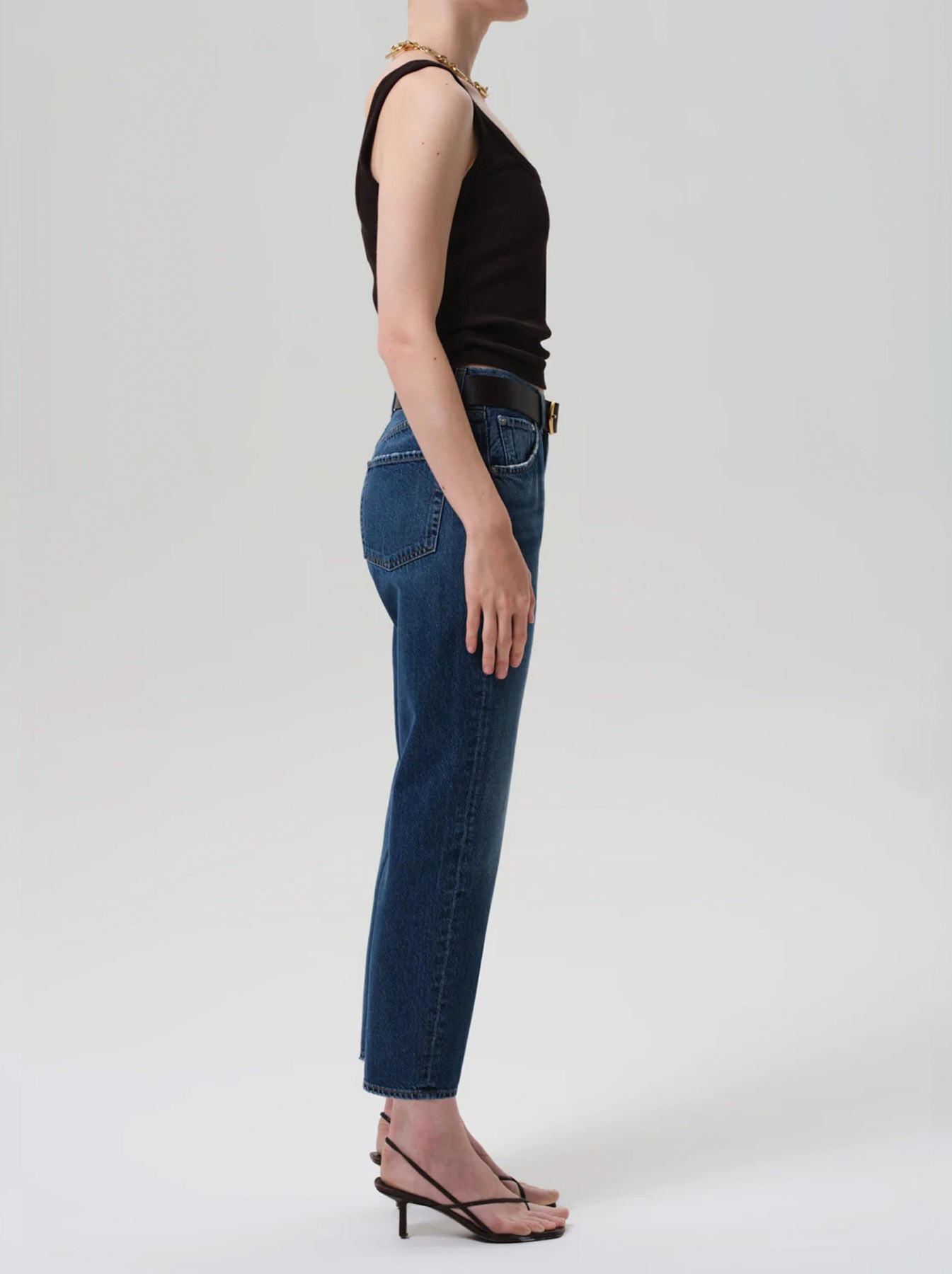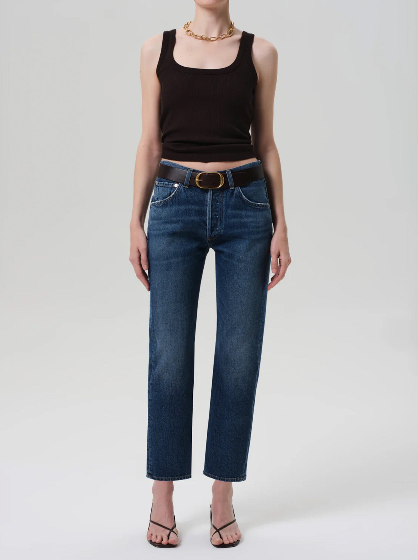 Citizens of Humanity delivers everyday ease with the Winslow Boyfriend Jean, a low-rise denim blending straight-leg structure with relaxed boyfriend fit. Rigid denim gives the jean a structured feel that softens naturally with wear, creating a comfortable, lived-in silhouette. Clean lines and subtle fading keep the look modern and approachable, perfect for daily wear. Layer with a lightweight cardigan and slide-on mules for a casual, city-ready look.