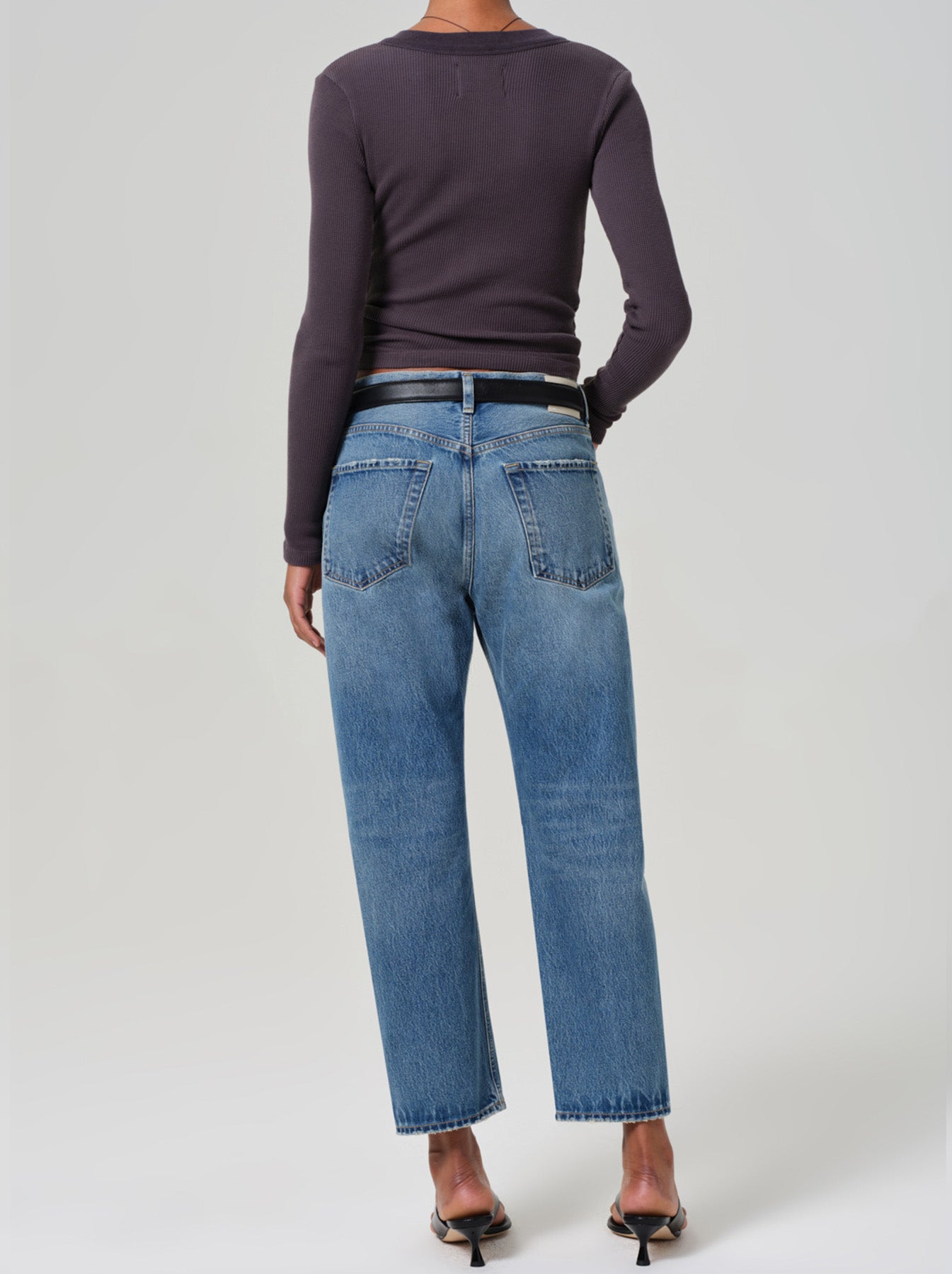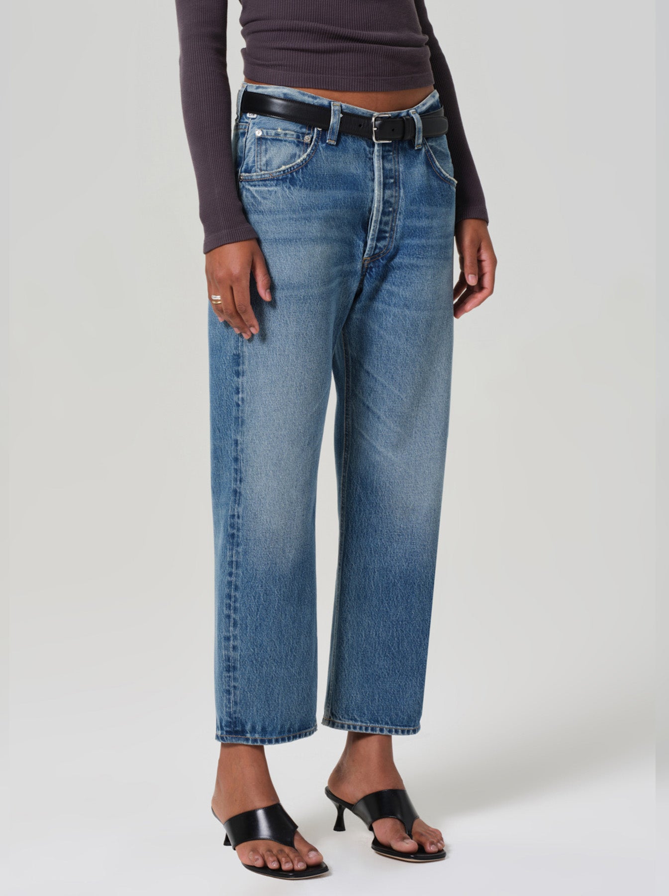 Citizens of Humanity renews the classic boyfriend denim silhouette with their new Winslow jeans. This low-rise denim is crafted from their signature 100% rigid cotton and features fading and slight whiskering on the upper thigh and knees. Match these timeless jeans with a large knit top and fashionable kicks for a laid-back winter look