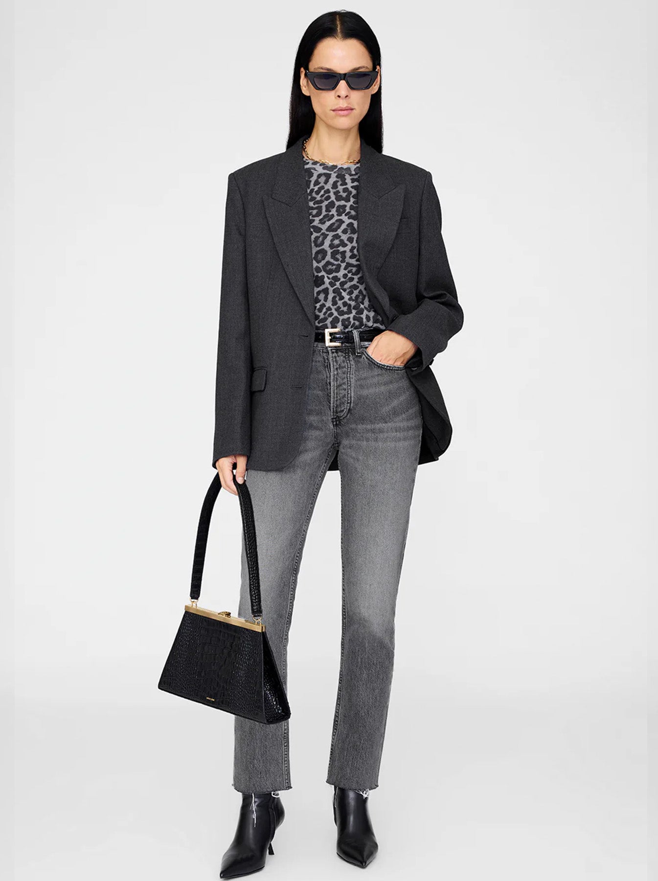 A true wardrobe staple, Anine Bing’s Cohen Cotton Tee combines everyday ease with subtle, statement-making details. Crafted from washed black cotton, it features a faded leopard screen print that lends a quiet edge to its clean design. The straight hem and crew neckline keep the cut classic and versatile, whether layered or worn alone. Style it with leather shorts for an edgy, fashion-forward look.