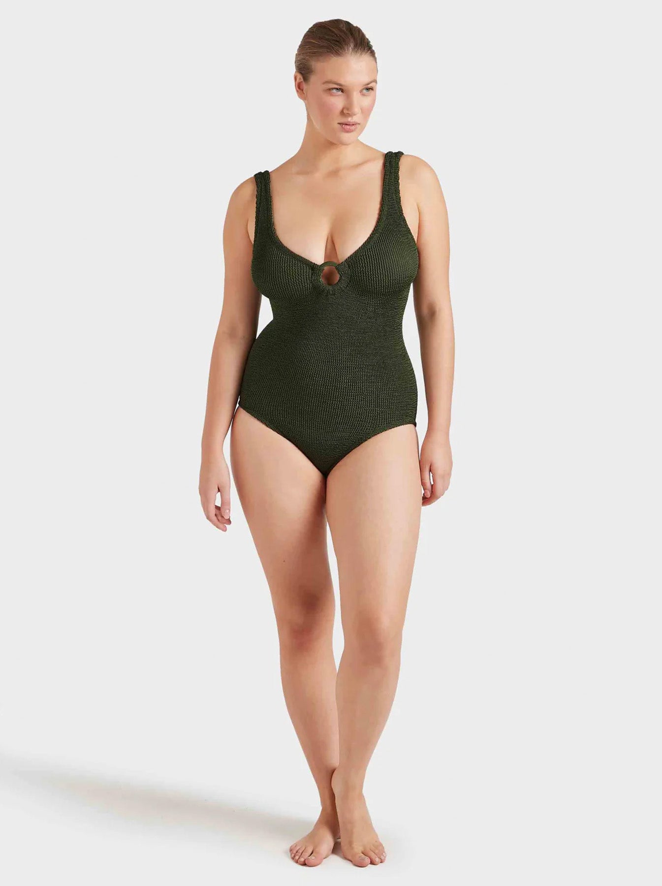 Coverage Celine Crinkle Swimsuit - Metallic Khaki