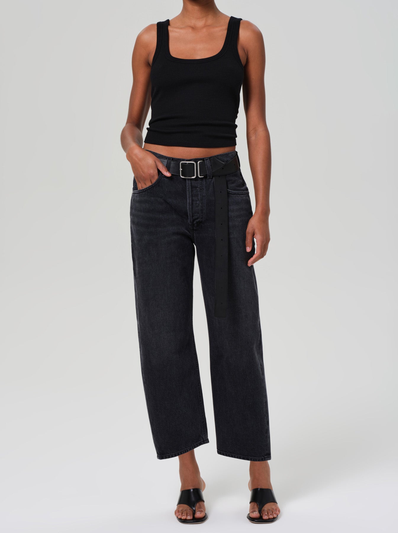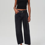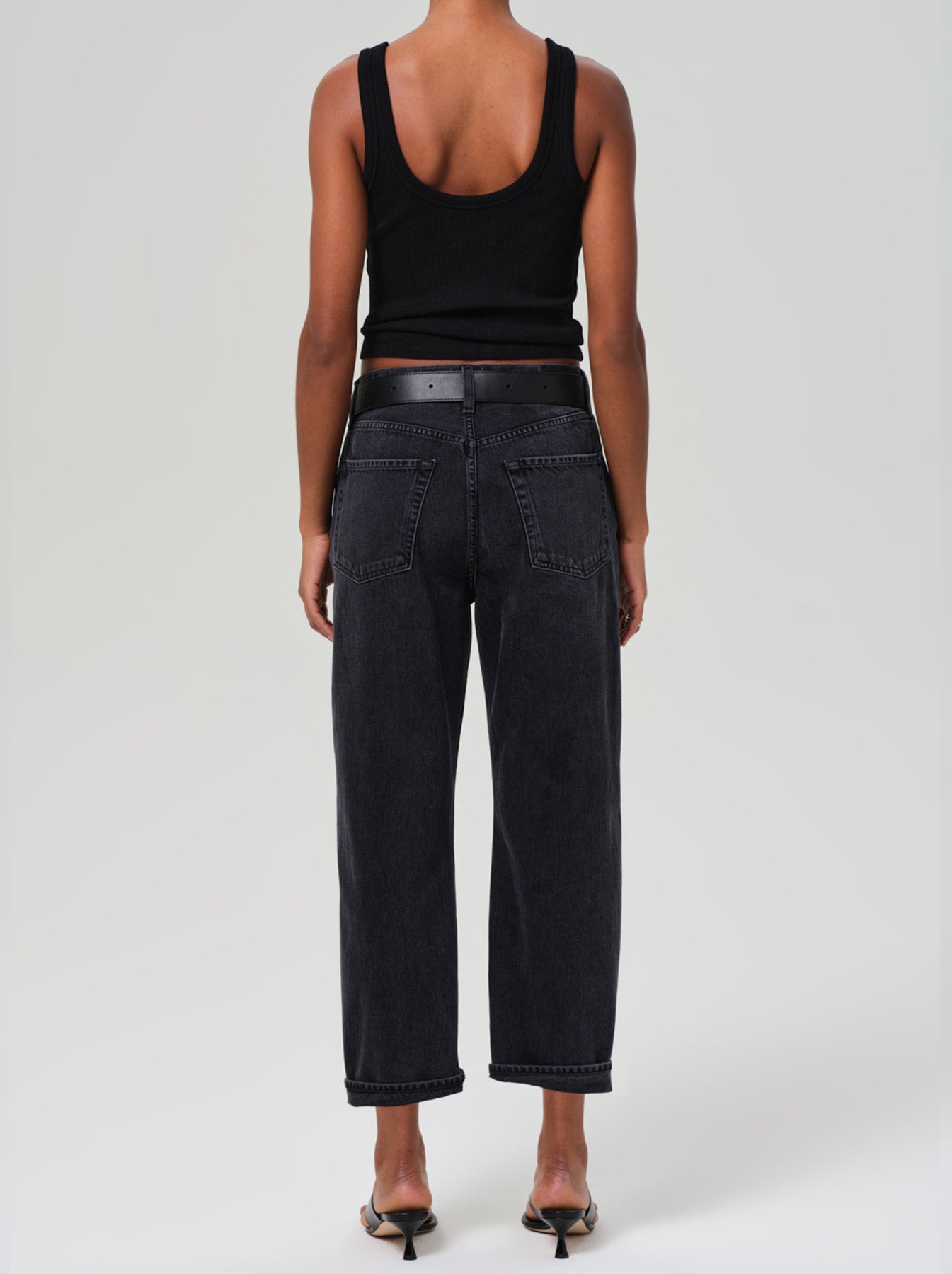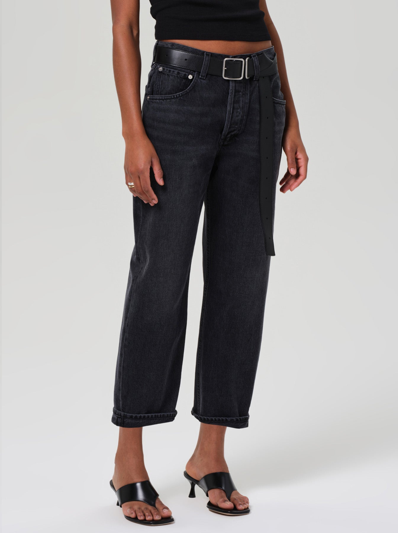 - Cropped above ankle with a baby-roll cuff