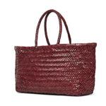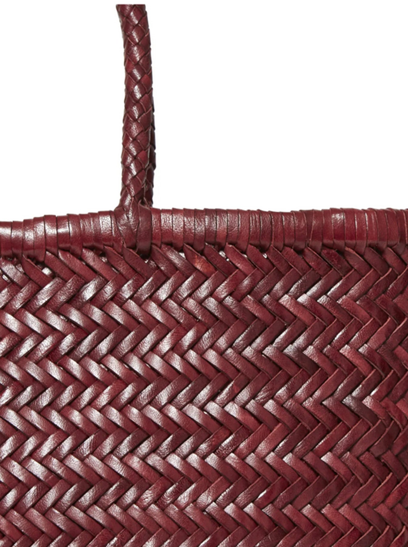 Bamboo Large Triple Jump Woven Leather Tote - Bordeaux