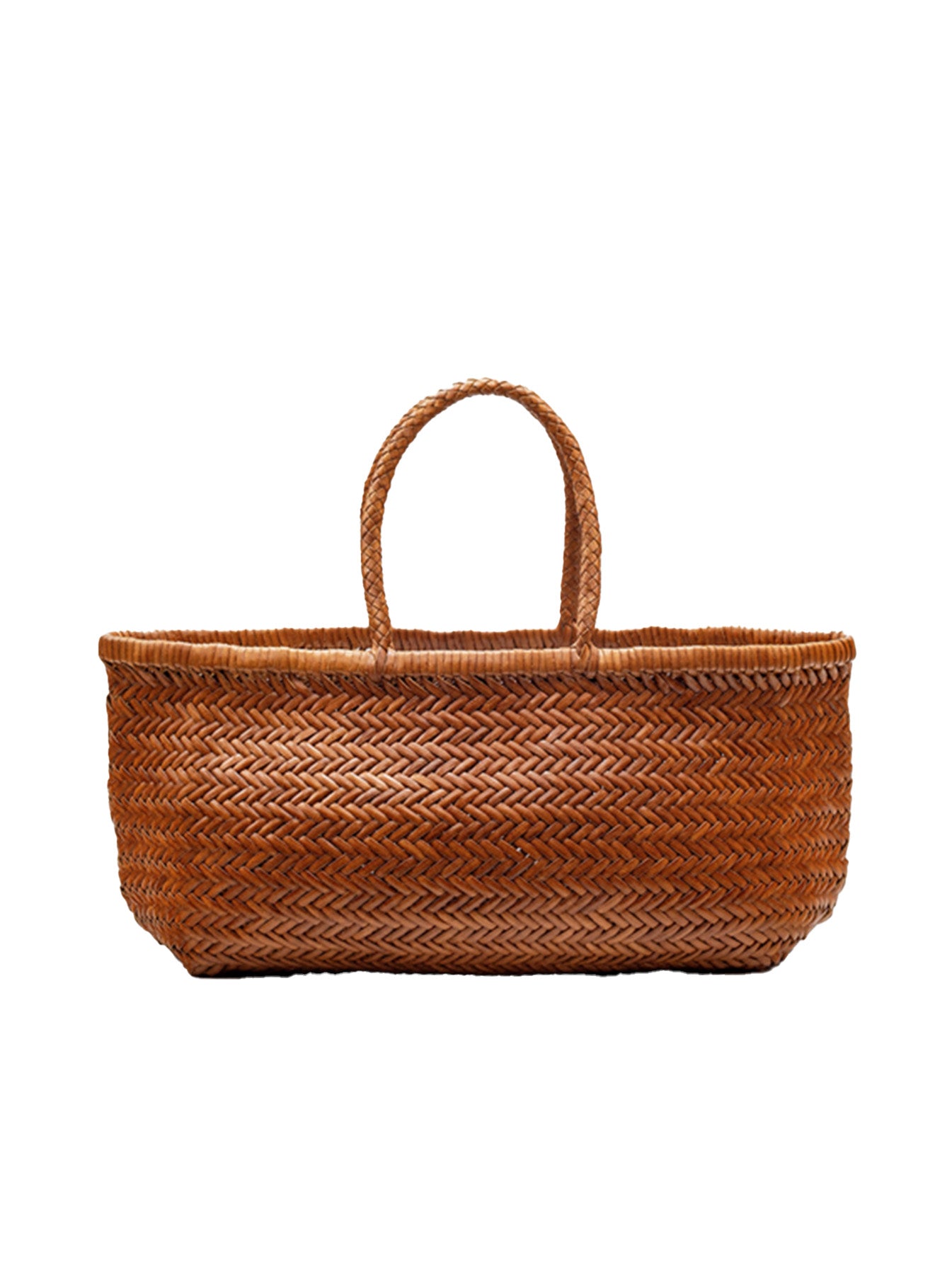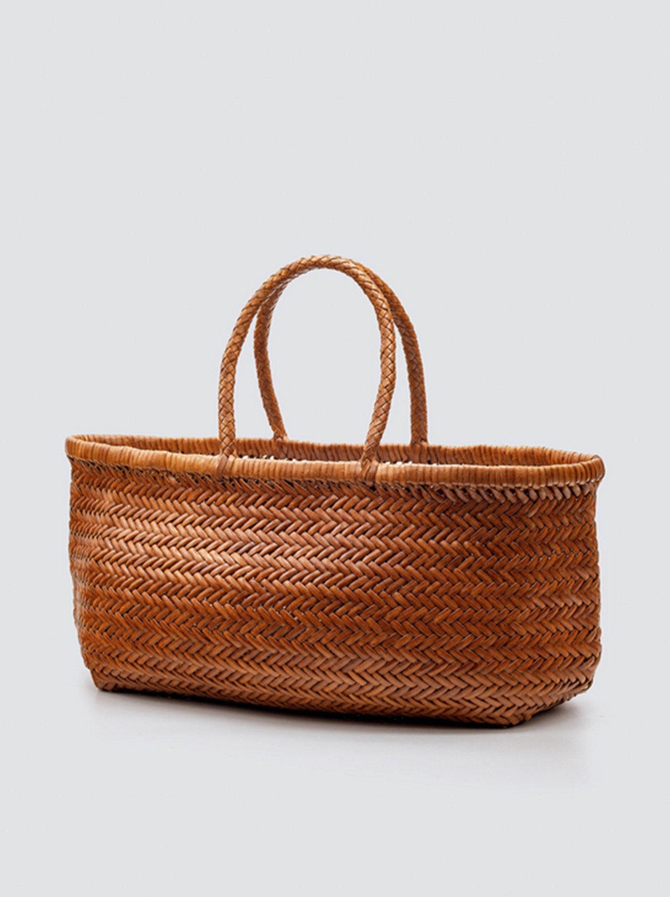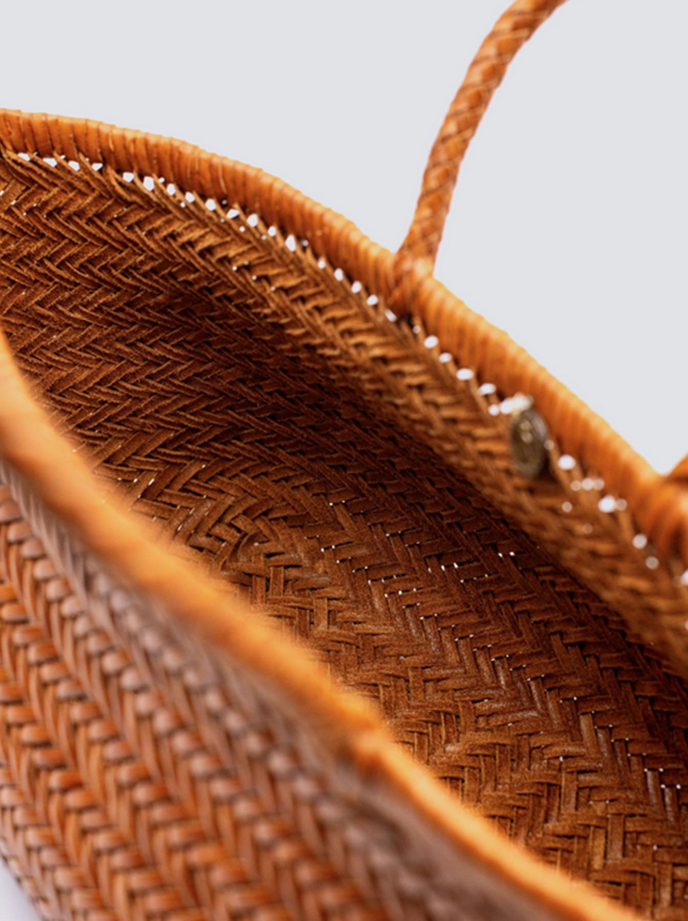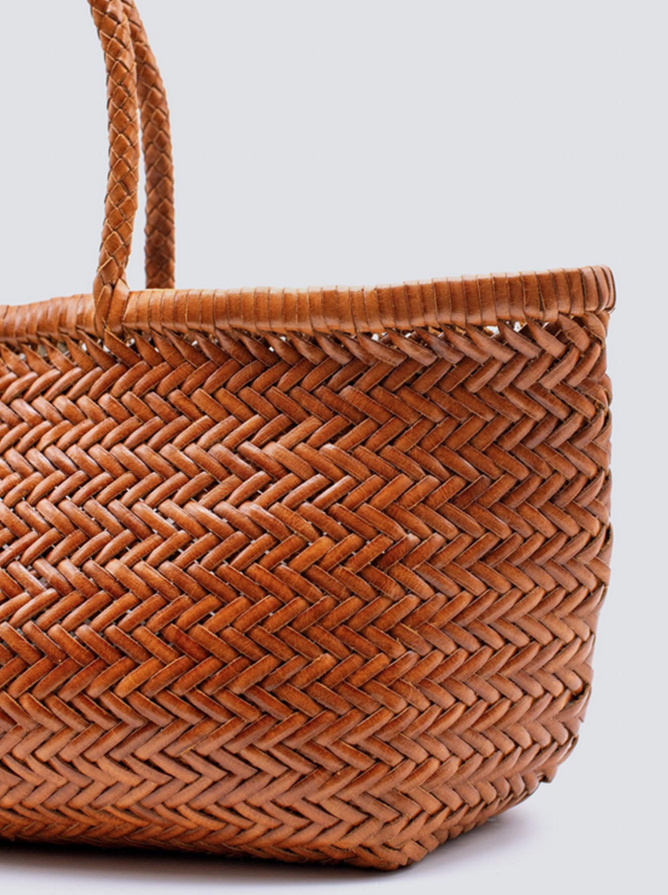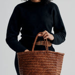 Bamboo Large Triple Jump Woven Leather Tote - Tan