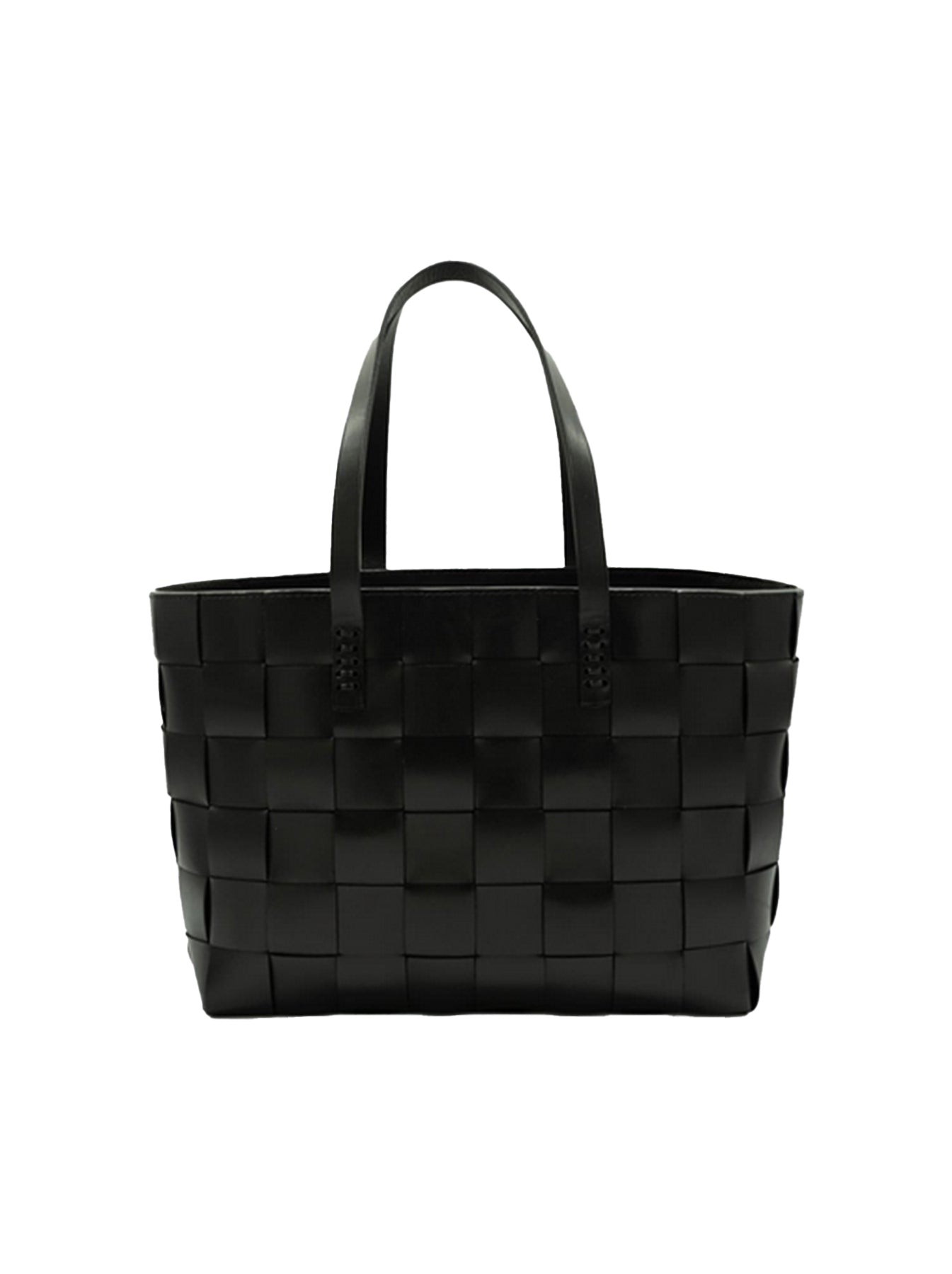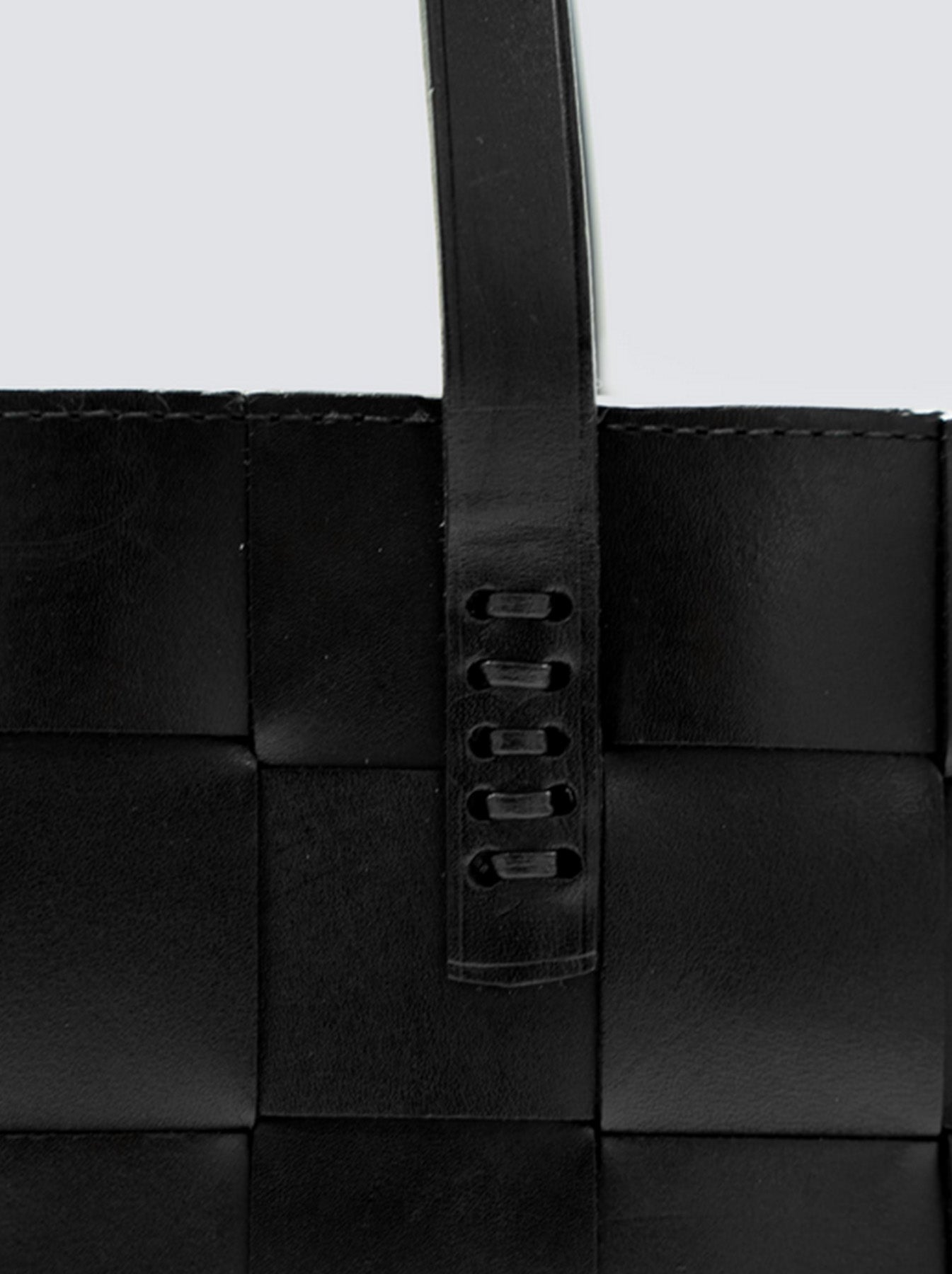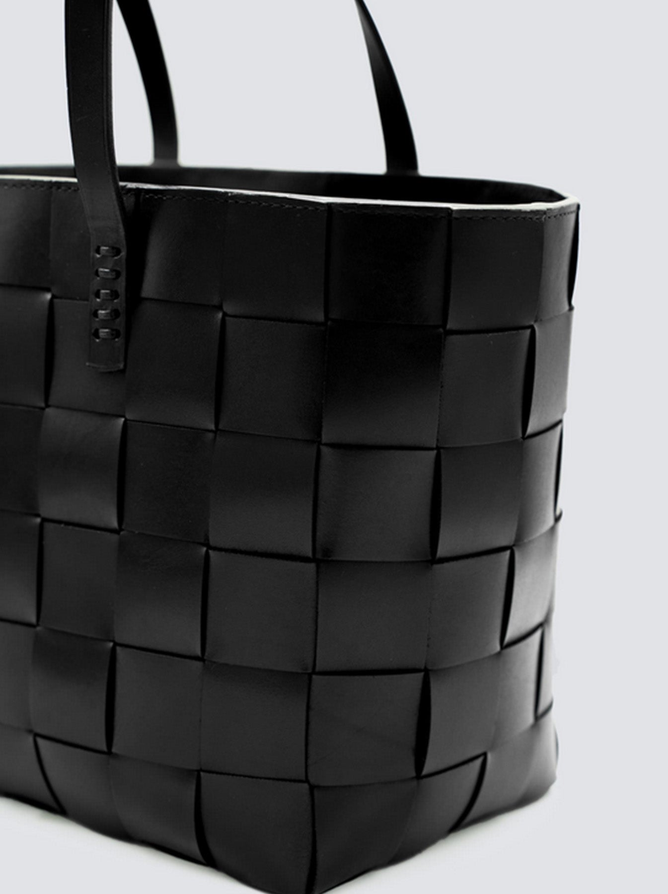 Made from the finest, supple cow leather, the Dragon Diffusion 'Japan' Tote features a striking cross-woven design that blends contemporary style with an artistic edge. Its spacious unlined interior offers ample room for your essentials. This solid black leather will develop a rich patina as it ages, adding to its unique charm over time.
