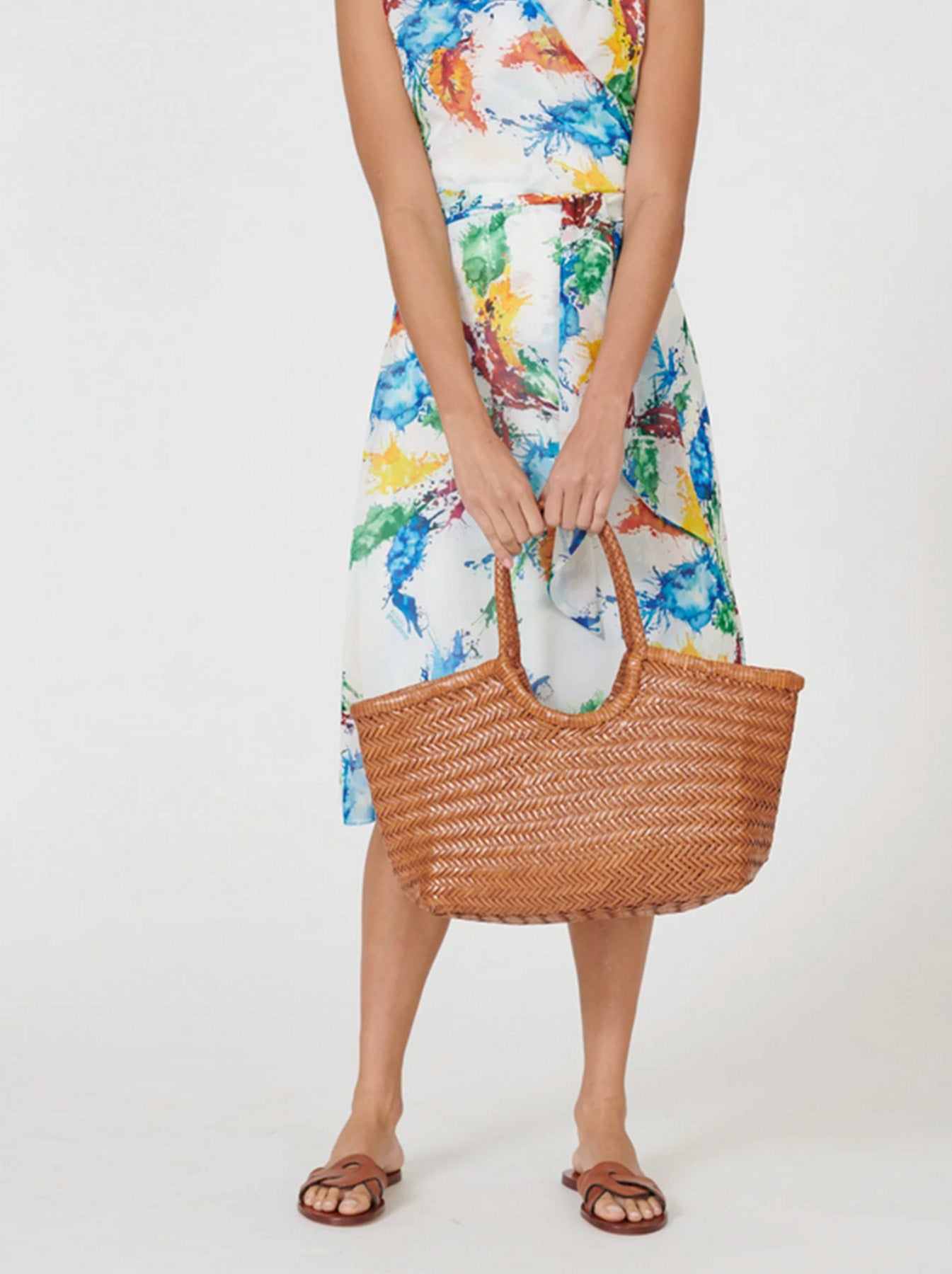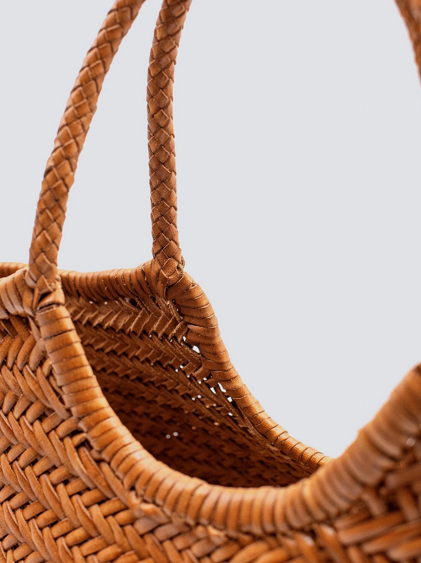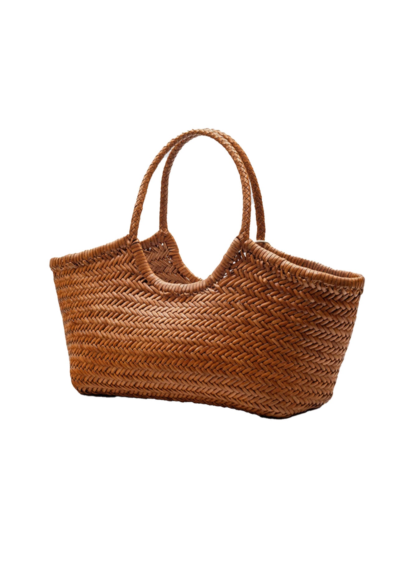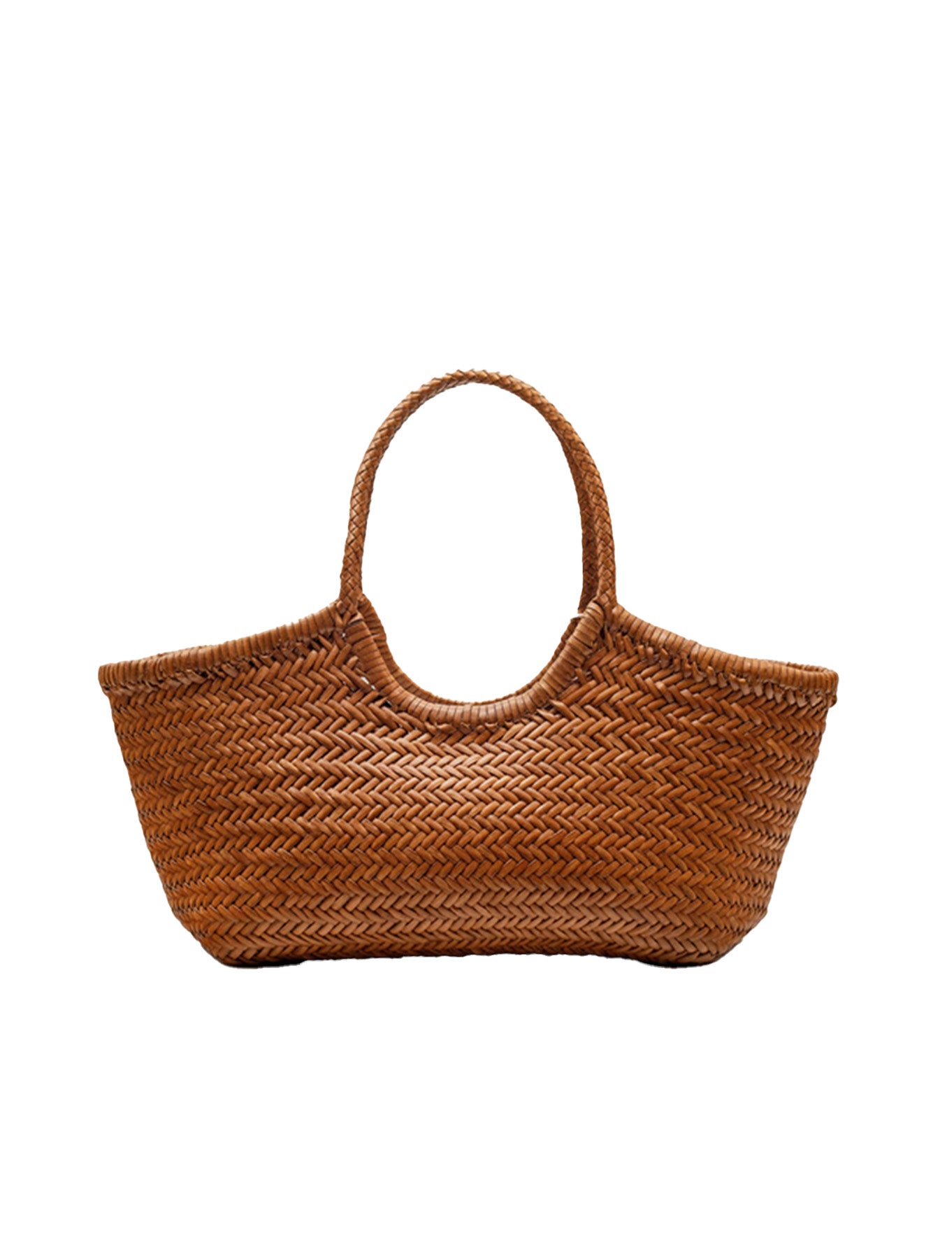 Dragon Diffusion's infamous Nantucket Tote is a year-round wardrobe staple. Hand crafted from supple leather in a deep camel brown, this bag features a signature traditional-weave pattern, that adds to its character and charm. Crafted for a roomy interior this tote boasts ample storage space for all you summer necessities.
