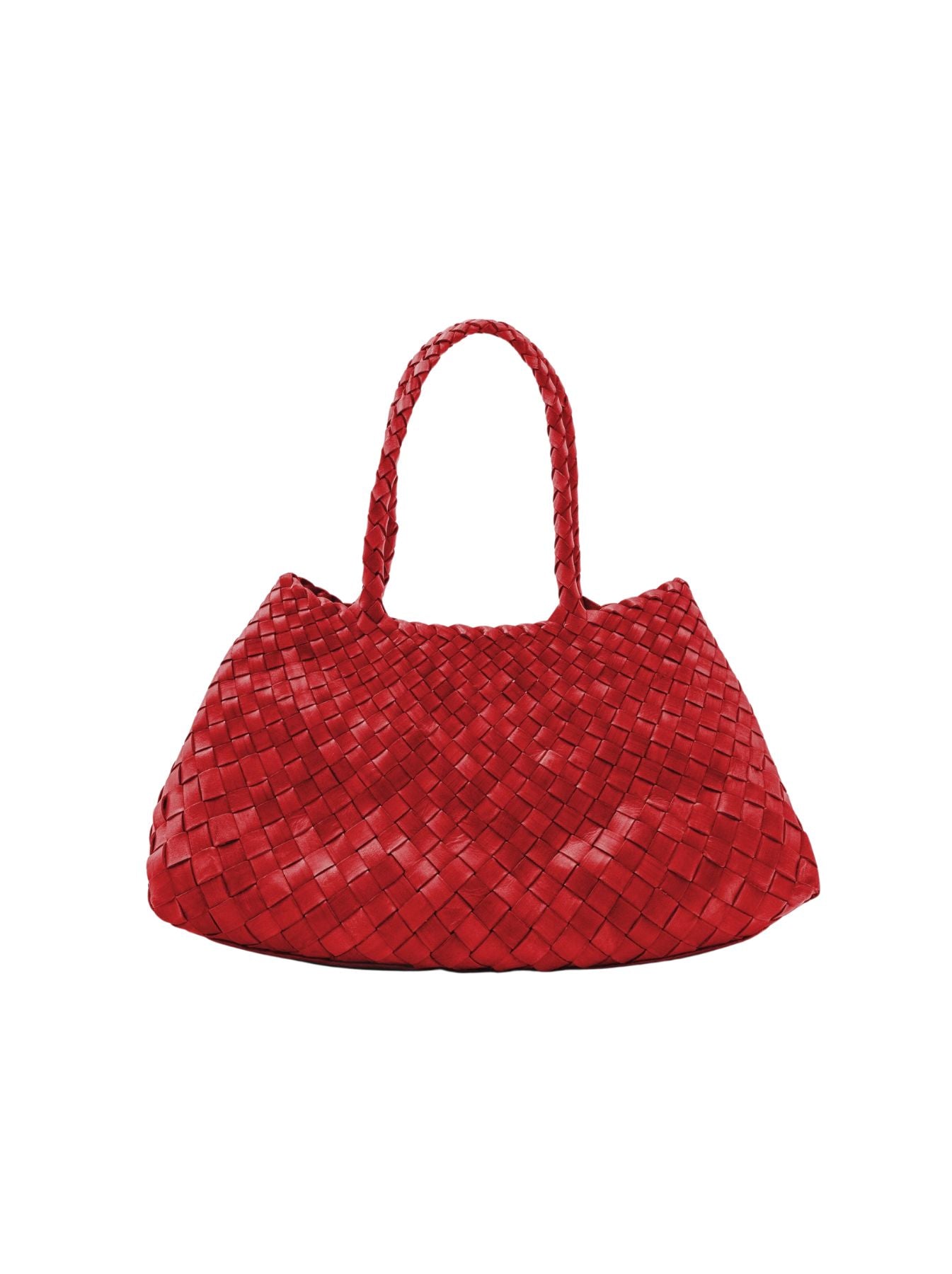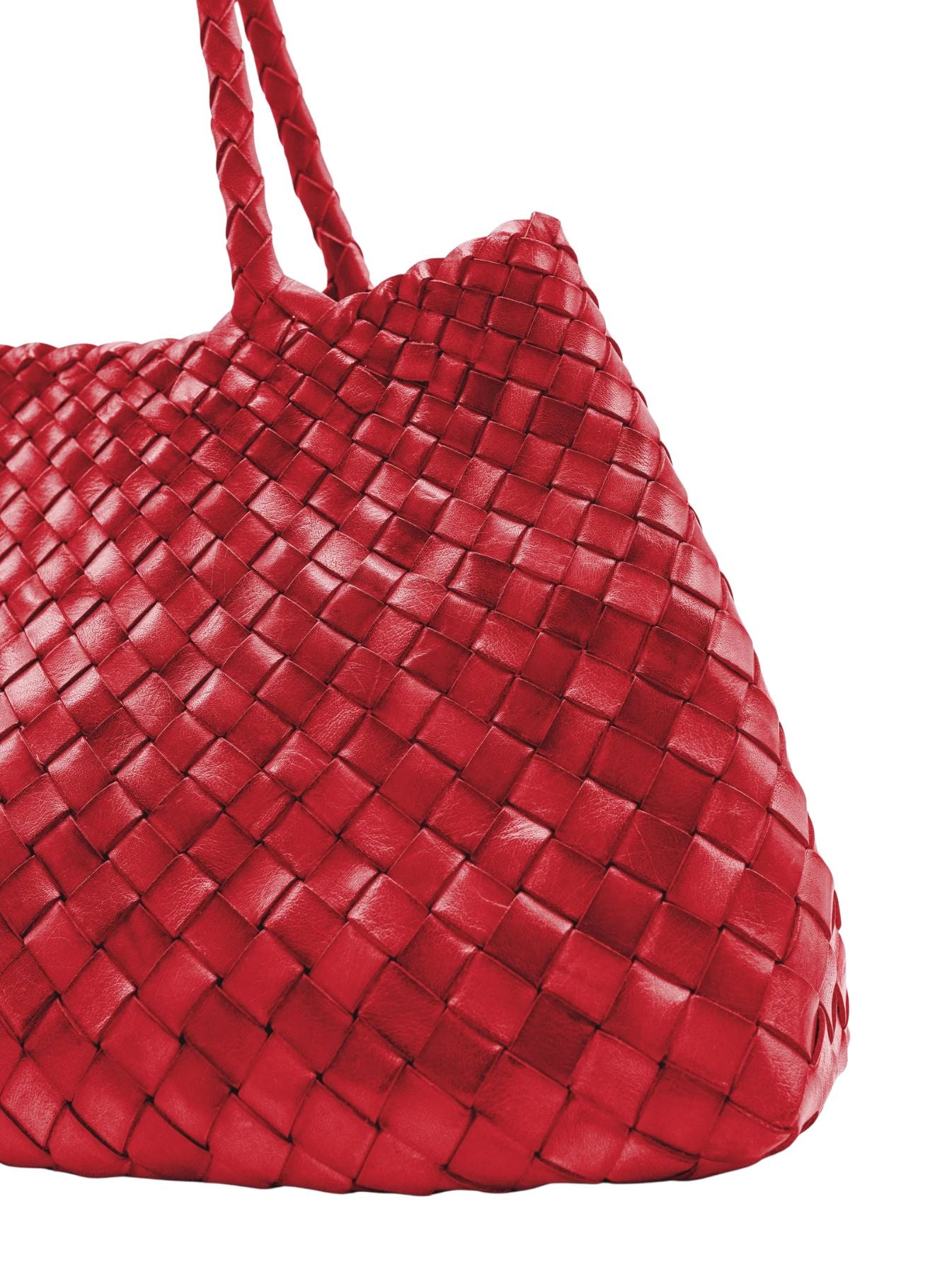 Santa Croce Large Woven Leather Tote - Poppy Red
