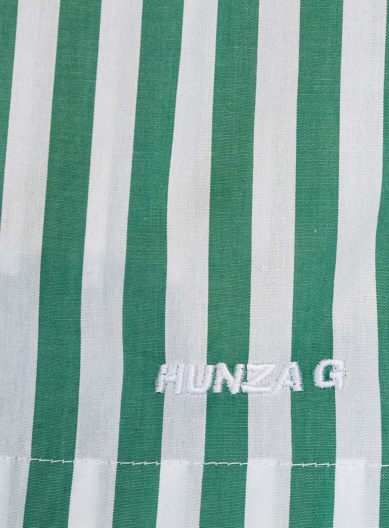 Pure cotton poplin shorts, impeccably tailored with an adjustable drawstring waistband and finished with ,the Hunza G signature embroidered logo. Designed to complement the Original Crinkle™ essentials, they pair effortlessly with matching shirts for refined, relaxed dressing—perfect for vacation and well beyond.