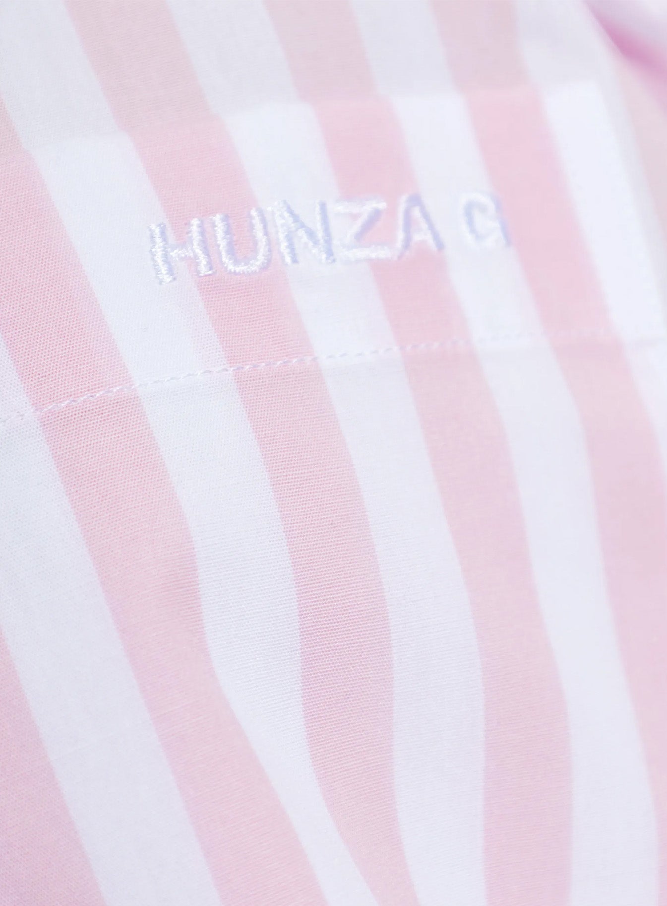 Effortless by design. Crafted from pure cotton poplin, this relaxed shirt features branded buttons and the Hunza G signature logo delicately embroidered on the pocket. Designed to transition seamlessly from beach cover-up to weekend lounging and laid-back evening wear, it’s a refined essential for every moment of summer.
