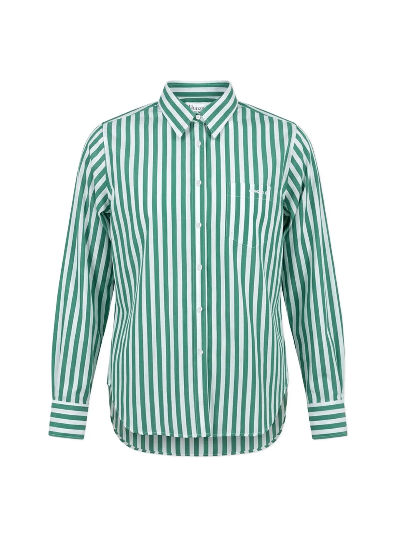 Embroidered Oversized Cotton Shirt - Emerald Cabana Stripe