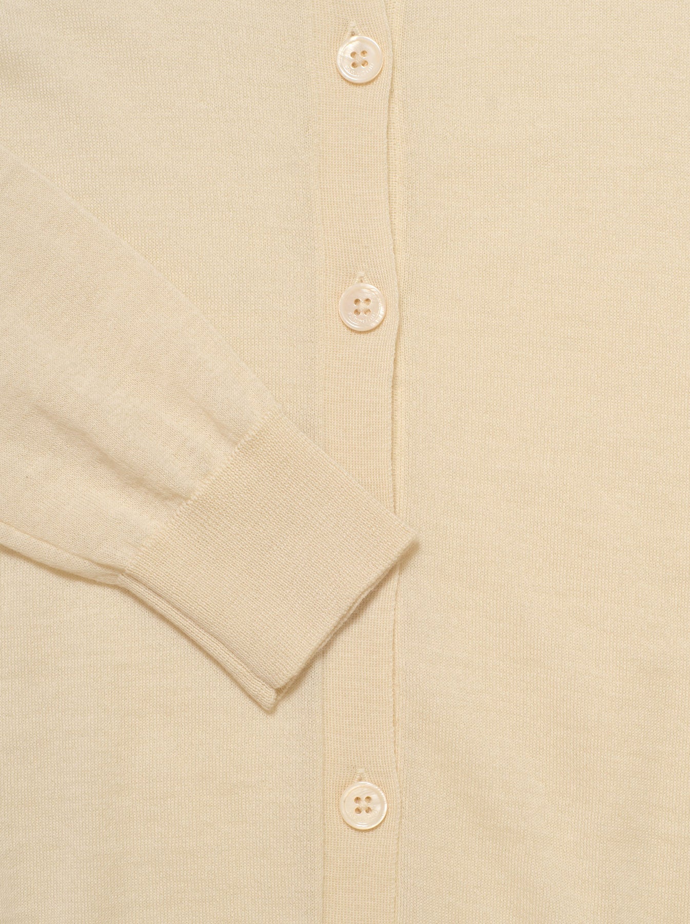 - Details: Fine knit cashmere long-sleeved, round-neck cardigan, with a boxy-fit & slightly cropped body, monochromatic pearlescent buttons down the centre placket.