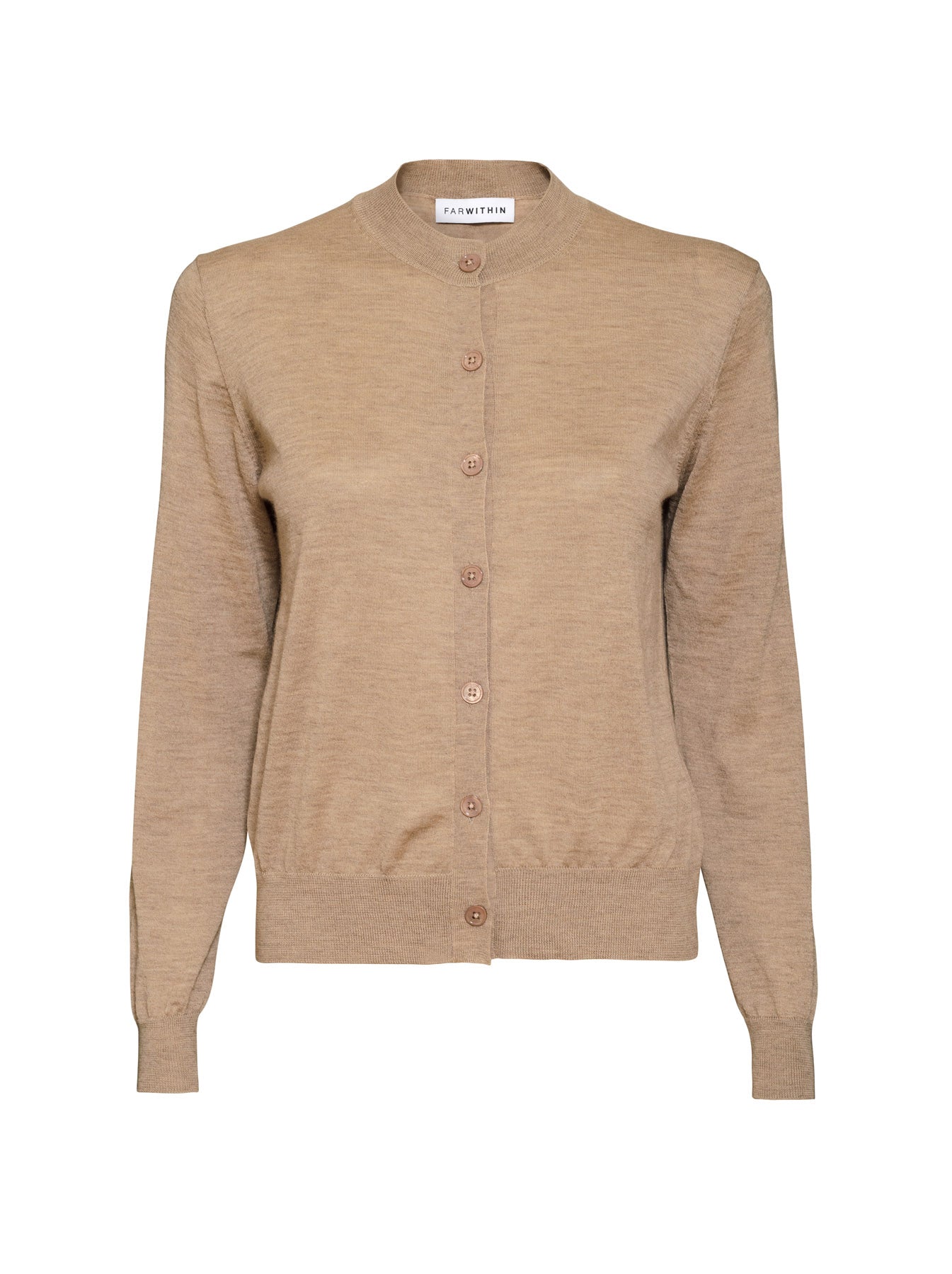 Crafted by Farwithin in a soft, light brown hue, the Ivy cardigan is made from fine 16-gauge cashmere, offering a breathable, light weight feel that is perfect for layering through the seasons. Designed with a slimmed-down fit that sits at the hip, it's finished with a subtly structured ribbed hem and front placket of tonal buttons. A clean round neckline adds a polished, understated finish. Throw it on as a gentle layer between seasons—its versatility makes it a wardrobe essential.