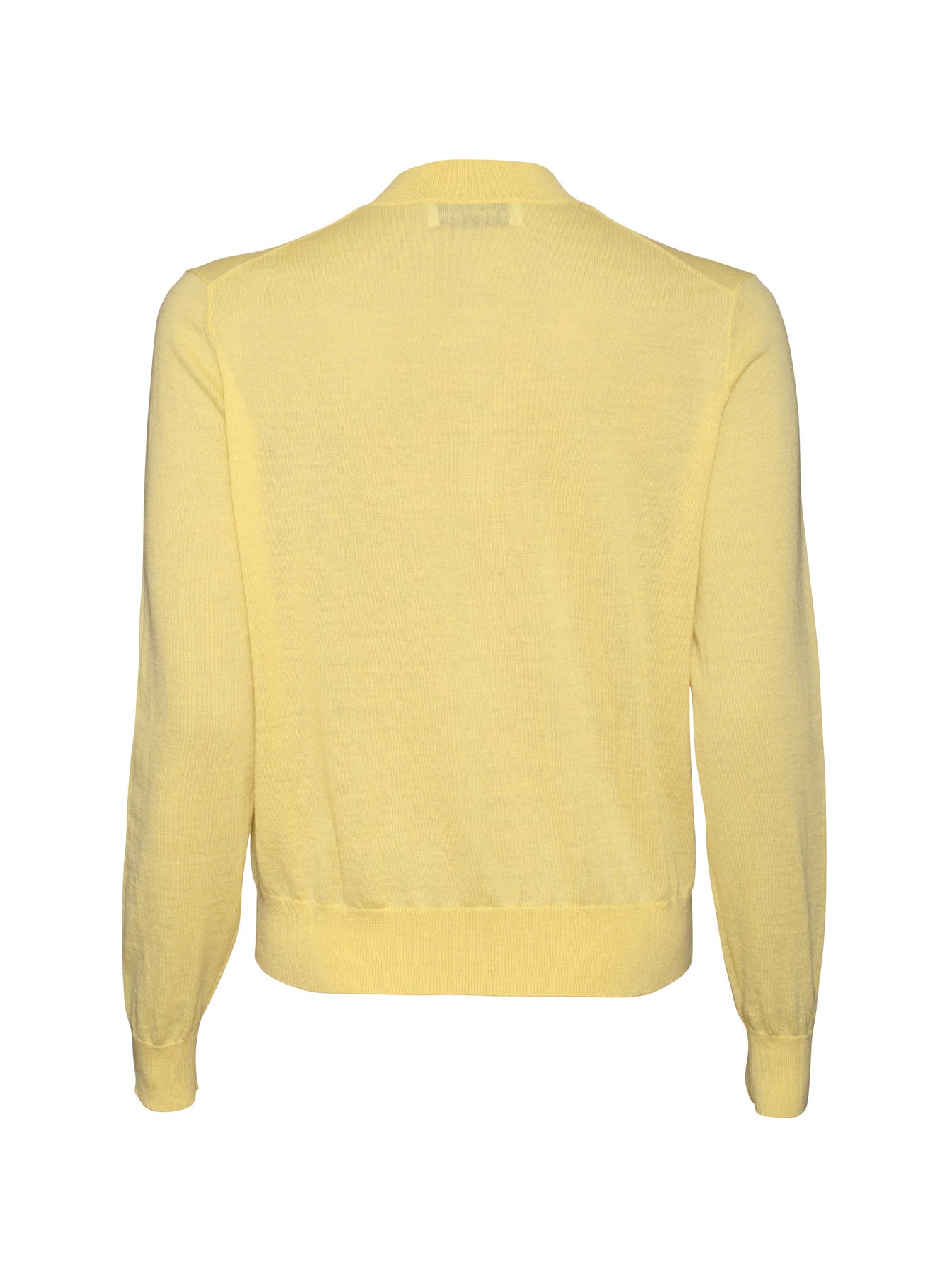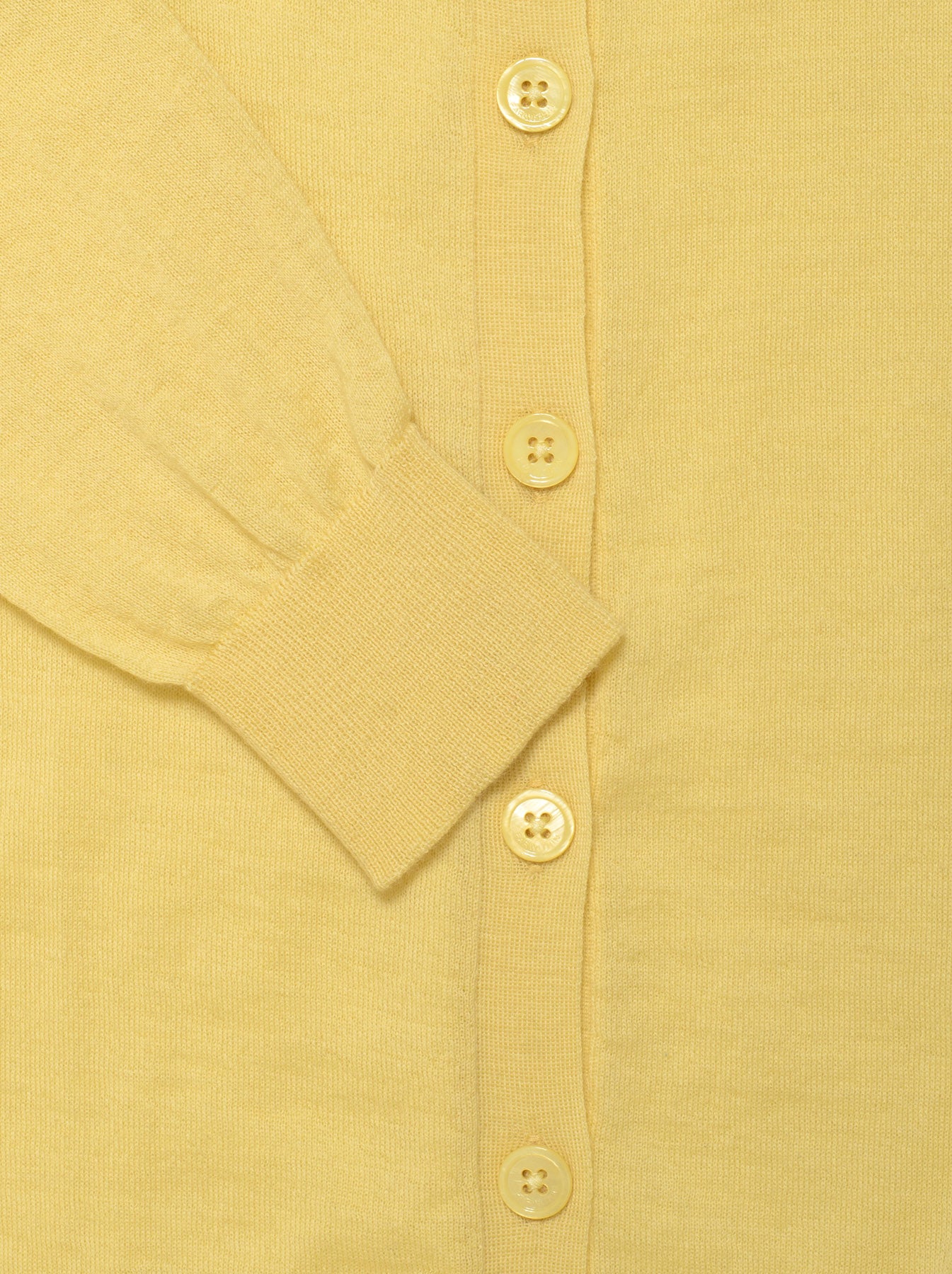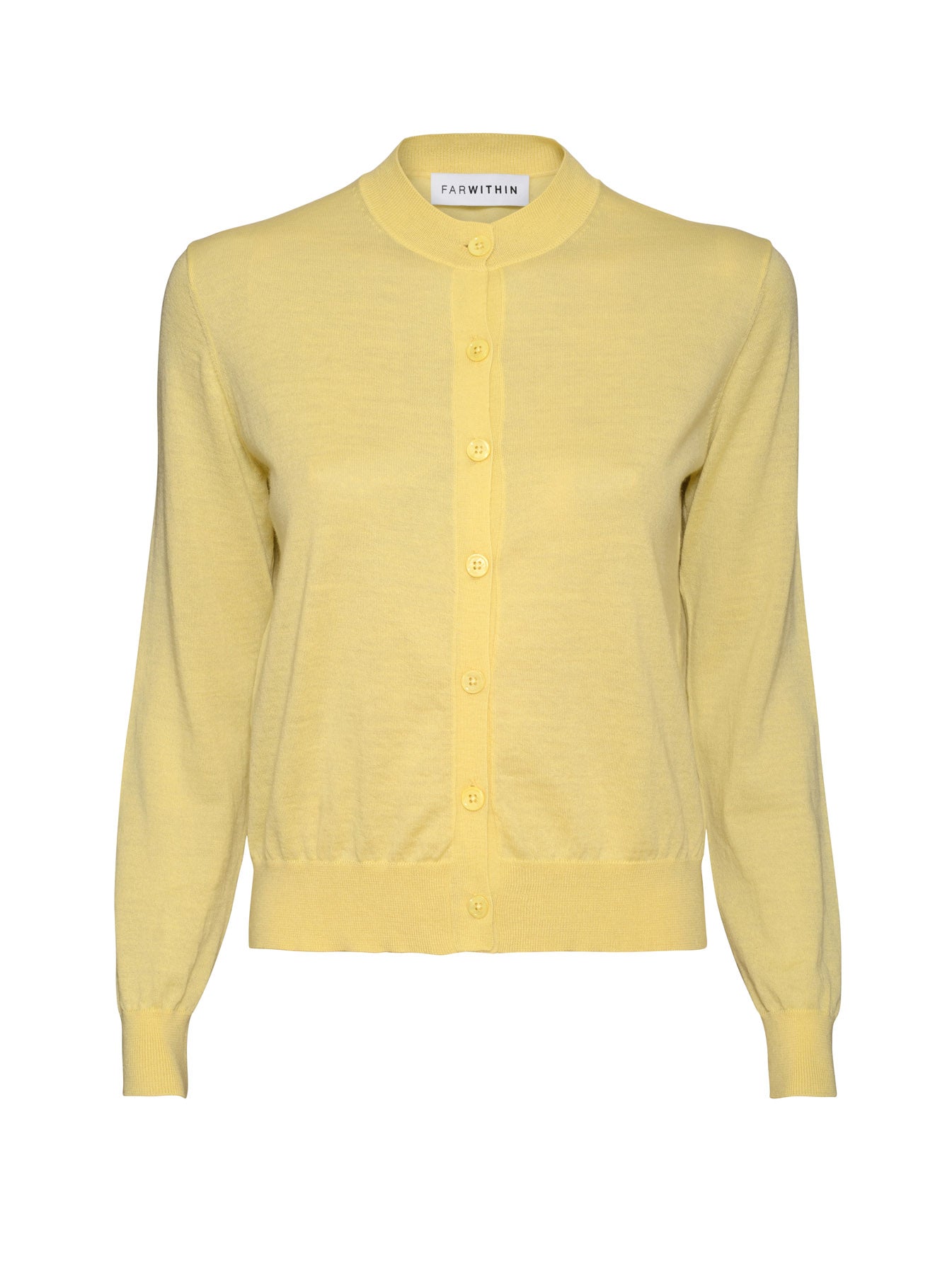 From Farwithin, this soft cashmere cardigan comes in a warm-toned pastel yellow that adds a gentle pop of colour to any look. Its lightweight,16-gauge fine knit makes it an effortless choice for year-round layering. The relaxed fit is cut to fall at the hip, and finished with a structured ribbed hem for balance. Pair this colorful cardi, with ivory wide-leg denims, and a monochromatic sneaker, for an everyday casual outfit.
