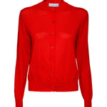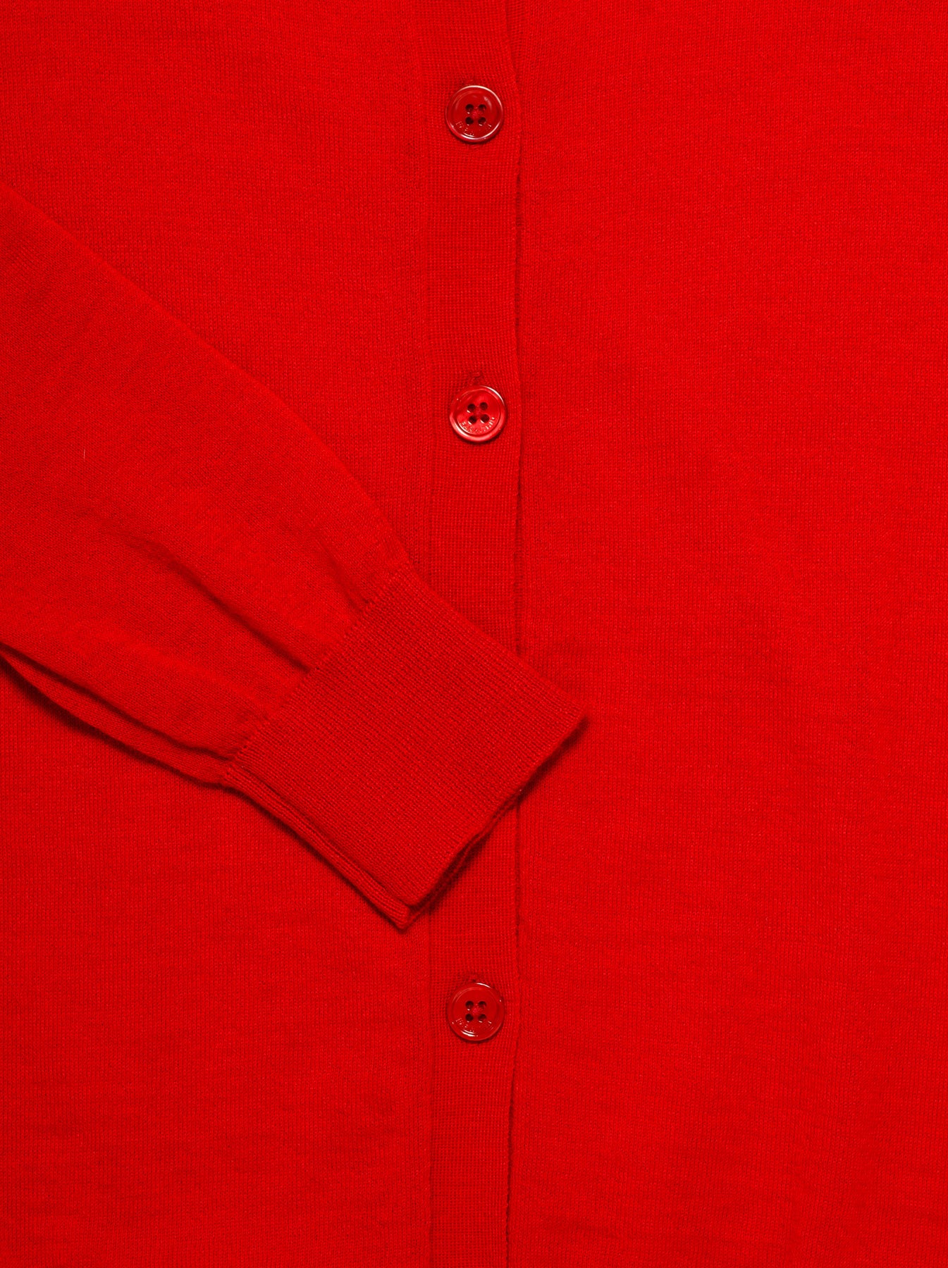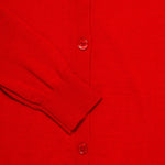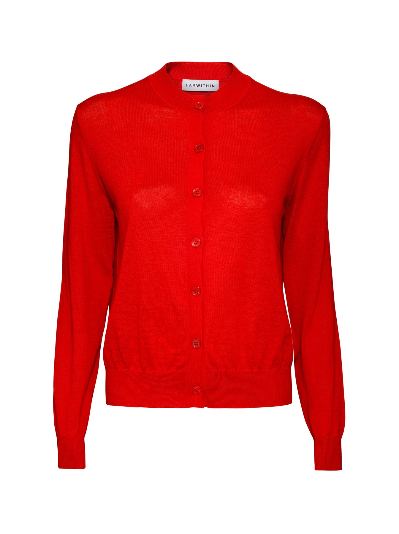 Bold yet timeless, this red cardigan from Farwithin is spun from ultra-soft 16-gauge cashmere, making it the perfect layer for every season. Its relaxed, boxy shape falls neatly at the hip, complemented by a thicker ribbed hem that adds a touch of structure. A row of pearlescent buttons lines the front centre placket, framed by a clean, round neckline. Lightweight and versatile, it's an effortless way to add warmth and color to any look.