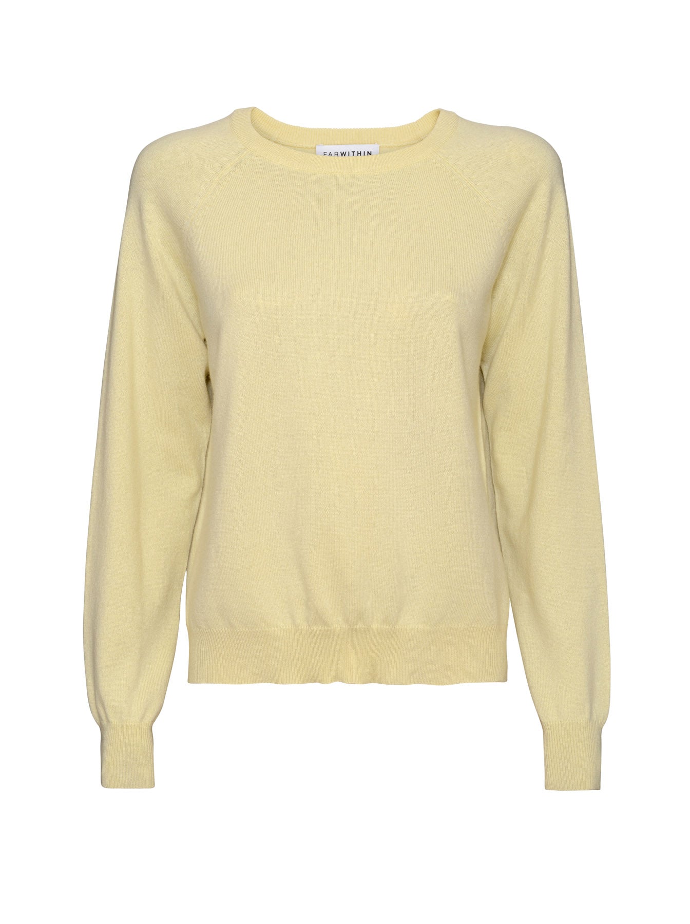 - Details: Mid-weight, cashmere knit sweater with round neckline, raglan sleeves, slouchy boyfriend-style silhouette, and slim ribbed collar, cuffs, and hem