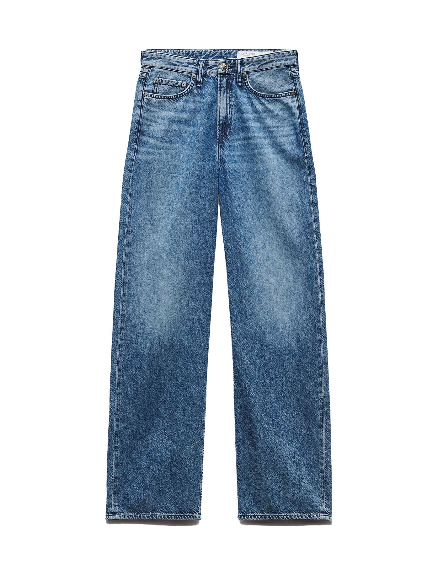 The Rag & Bone Featherweight Logan jean offers a relaxed, mid-rise fit with ample room in the hips and thighs. For a casual vibe, choose your true size and wear them low on the waist, or size down to achieve a higher rise silhouette. Made from lightweight denim, these jeans feature a comfortable, easygoing cut. Presented in River—a medium indigo shade with a crisp, clean hem—this style balances timeless appeal with effortless wearability.