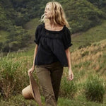 Effortlessly romantic, the Dôen Frances Top is crafted from lightweight organic cotton voile that feels soft and breathable against the skin. The black hue brings refined contrast to its delicate gathering and feminine square neckline. Style this romantic piece with high-waisted denim or a flowing skirt for an effortless look.