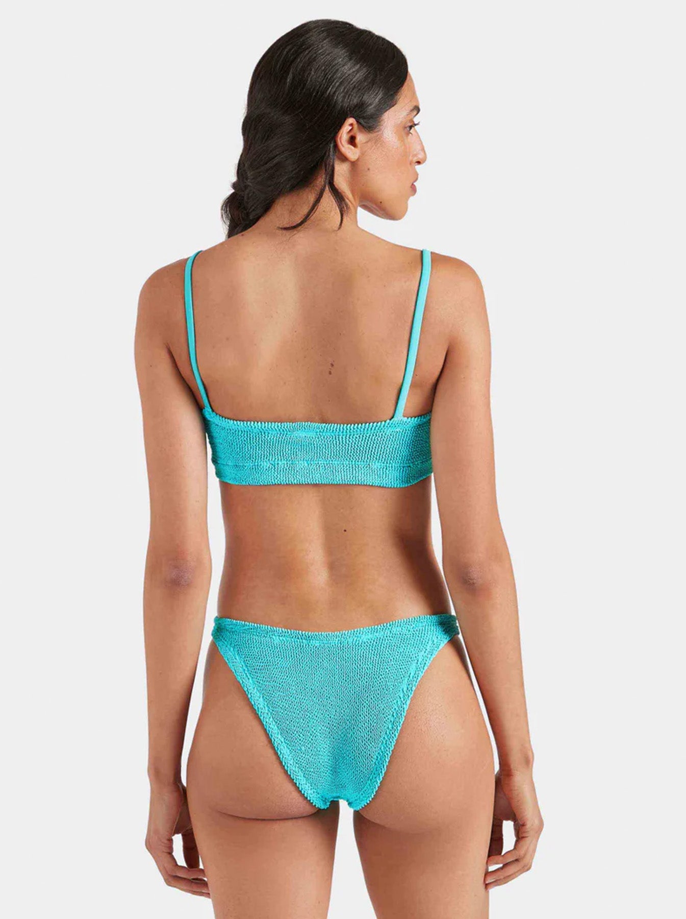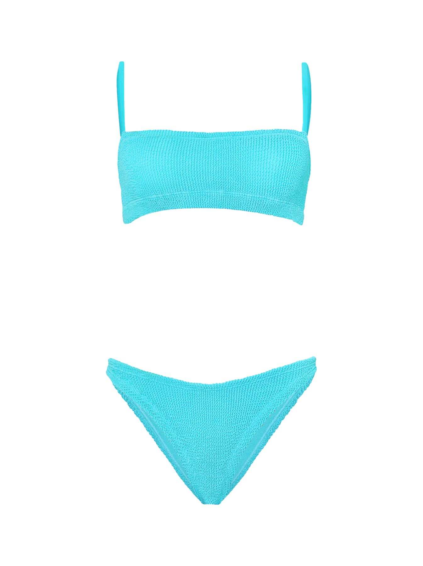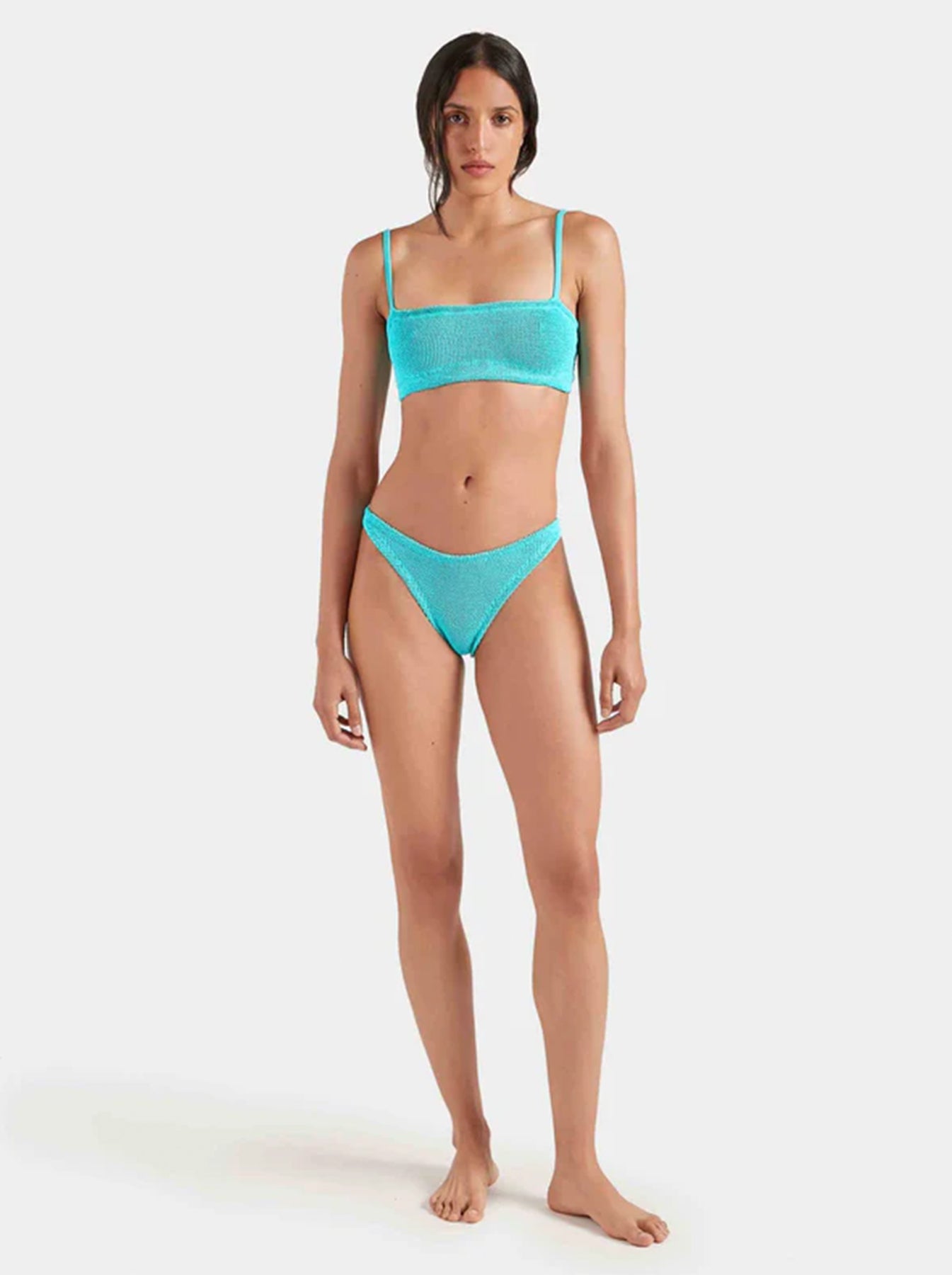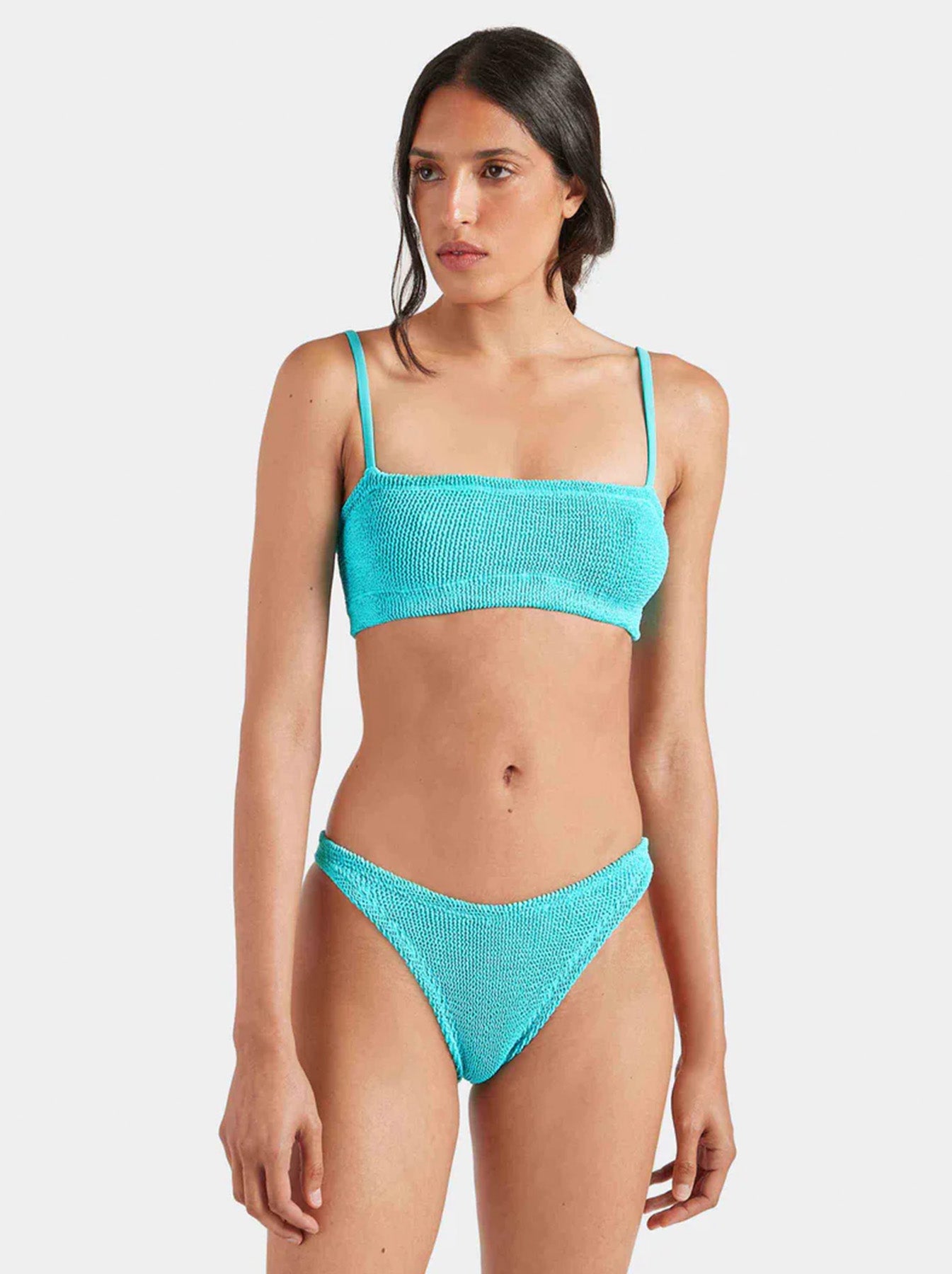 The Gigi bikini delivers effortless allure with its delicate spaghetti straps and timeless silhouette. Re-engineered by Hunza G for an enhanced fit it now offers superior bust support without compromising comfort. The Gigi bikini is the perfect two piece for summer days spent by the water.
