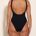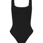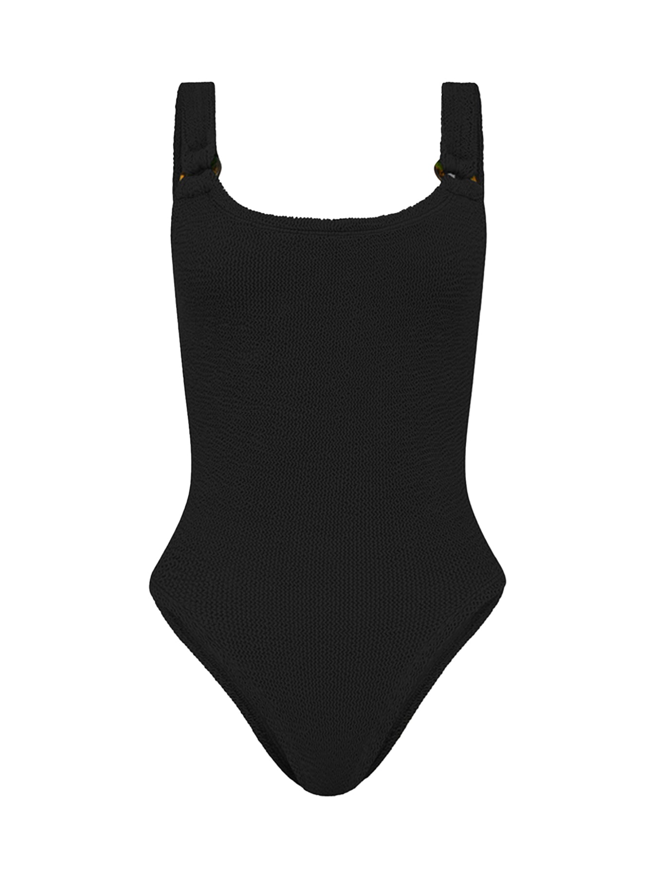 A timeless addition to your swimwear collection, the Hunza G Domino Swimsuit in Black is effortlessly chic and versatile. Crafted from the brand's signature Crinkle™ fabric, it flatters a range of body shapes for a flawless fit. With a scooped neckline, low-cut back, and fabric-covered ring details, this sleek design exudes an understated elegance you'll turn to season after season.