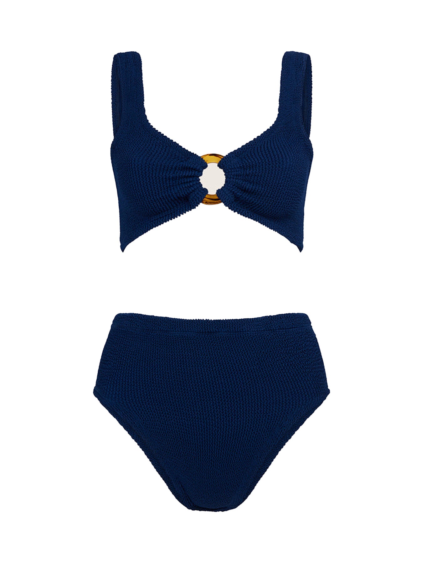Nadine Tortoiseshell Hoop Crinkle Bikini - Navy
