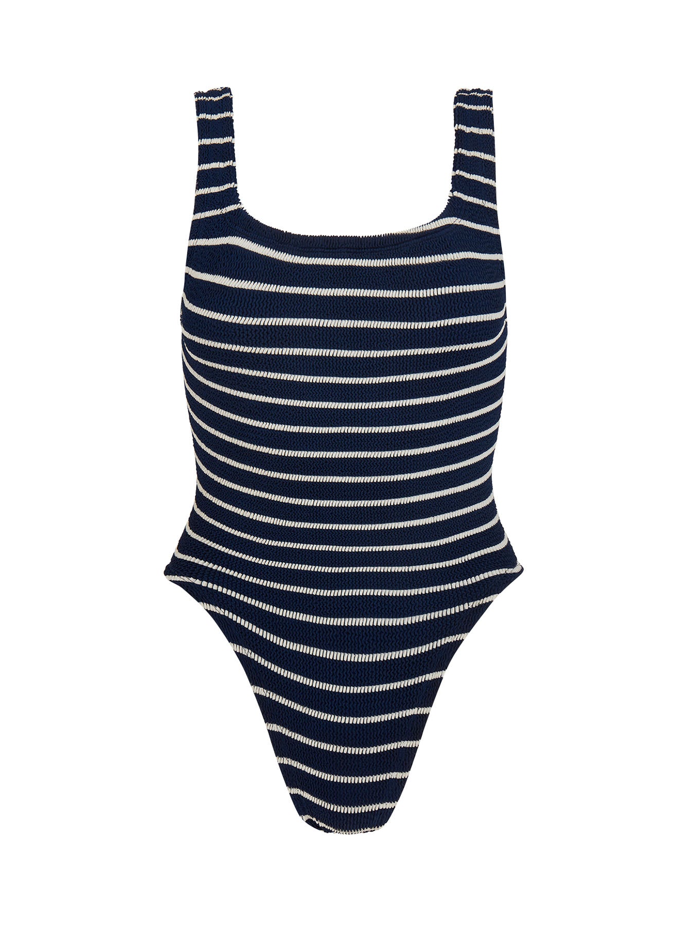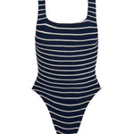 Square Neck Striped Crinkle Swimsuit - Navy/White