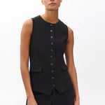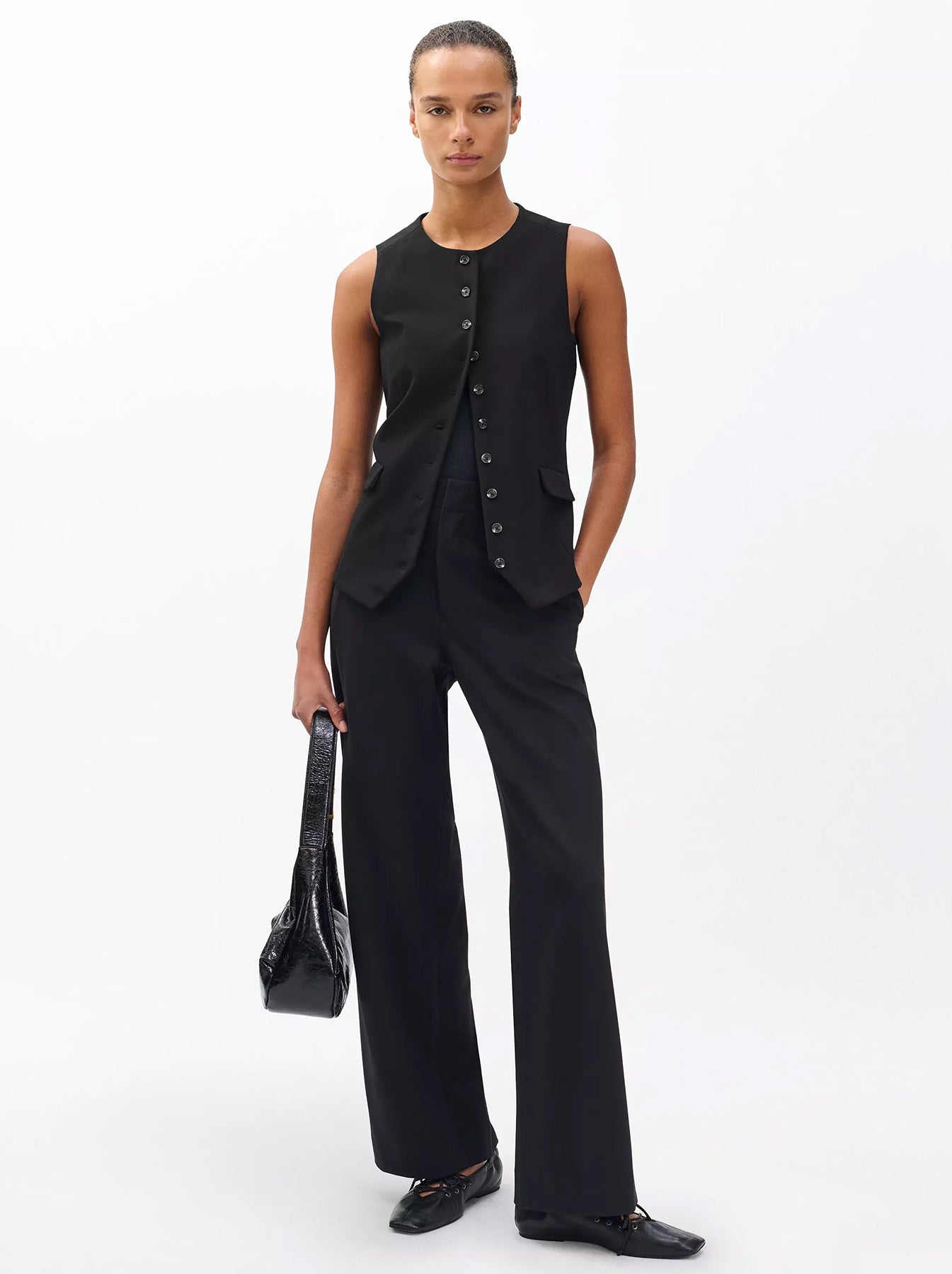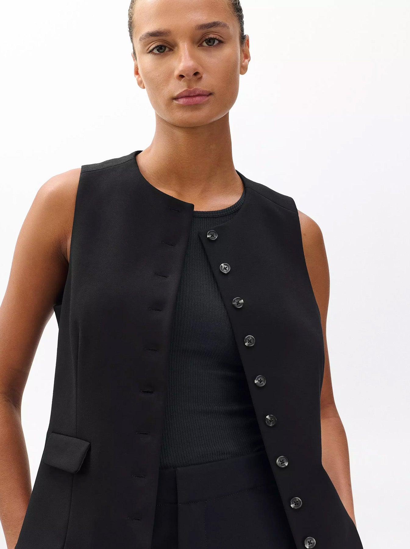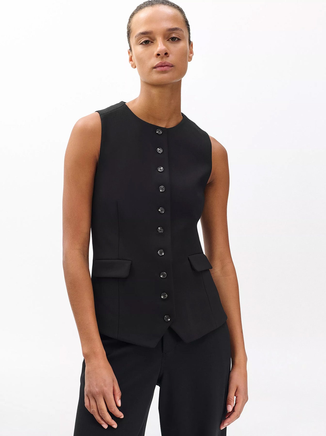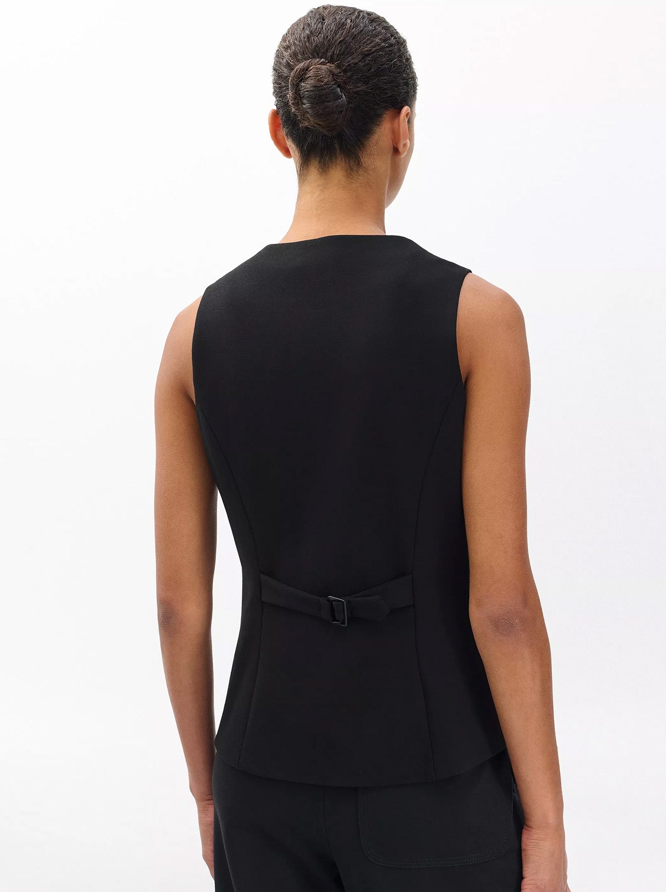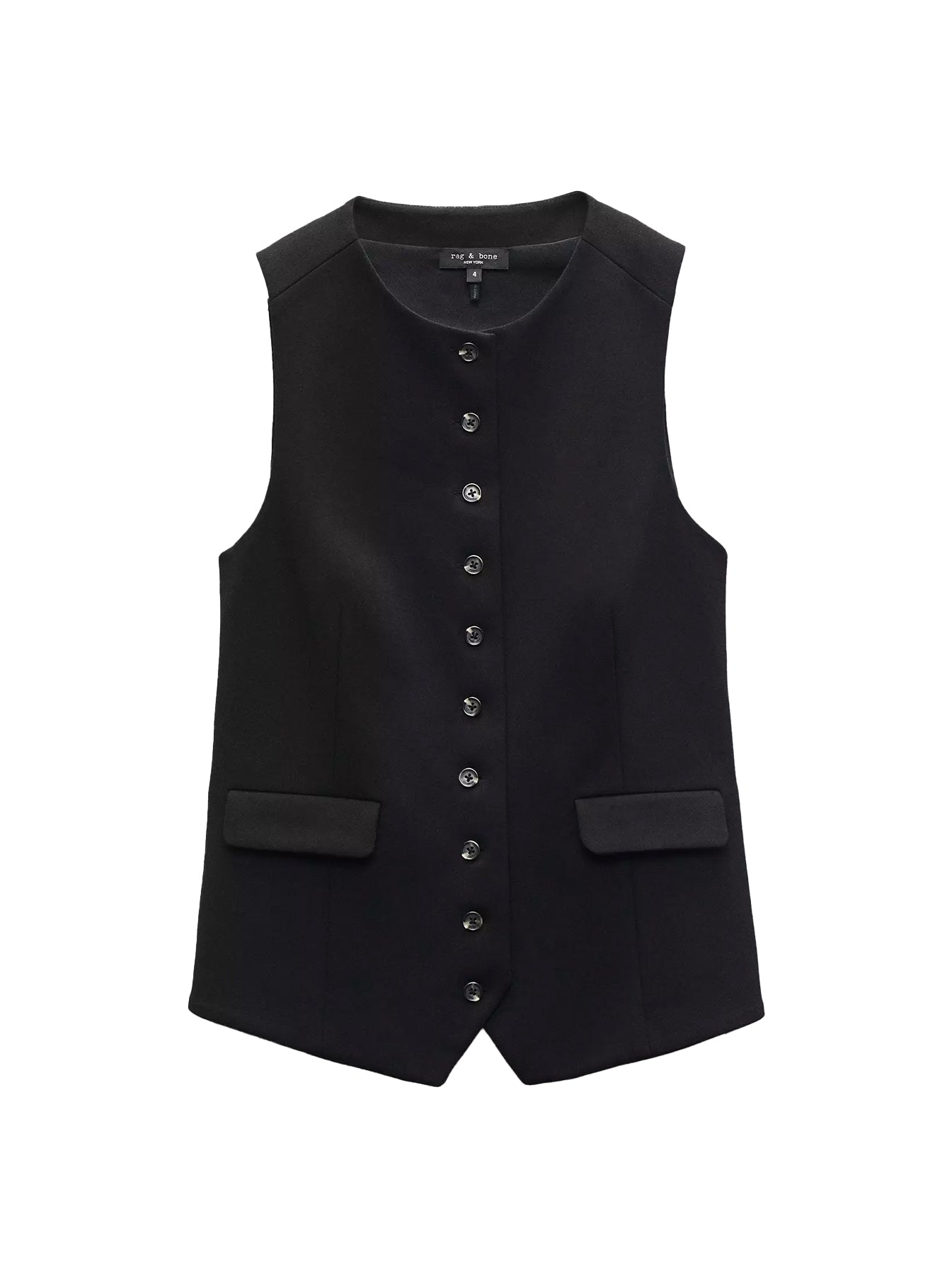 Discover the Irina Ponte Long Vest from Rag & Bone, a fresh twist on timeless tailoring. Crafted from the bestselling ponte stretch knit, this sleek button-up vest combines structure with comfort for a polished look all day long. Its fully lined, slim hip-length design pairs beautifully with jeans, leather pants, or tailored trousers, while the adjustable back guarantees a flawless fit. Plus, it’s machine washable—offering effortless style and practicality for any occasion. Elevate your wardrobe with this versatile, must-have piece.