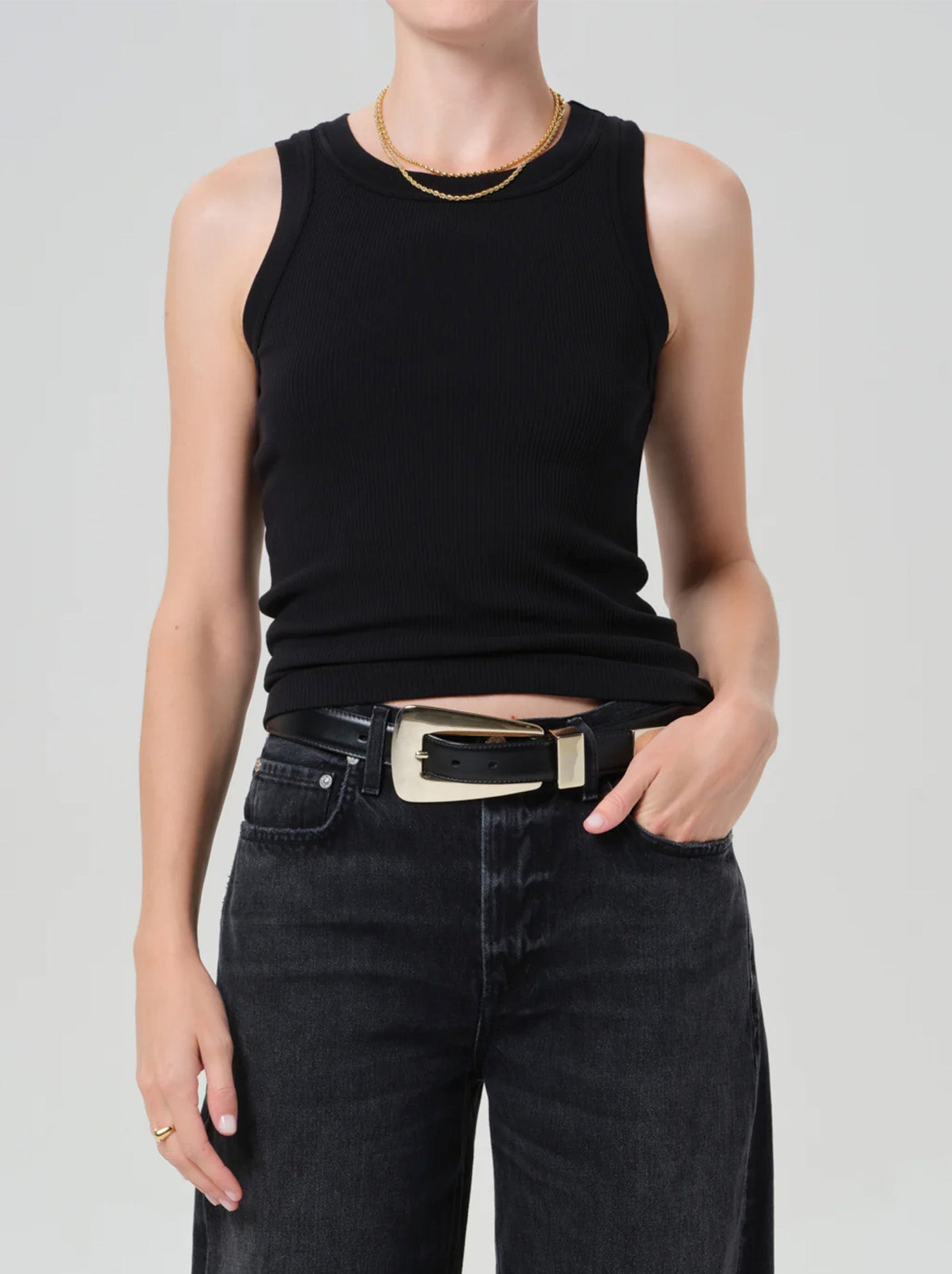 Cut from a close fitting rib fabrication, the Isabel Rib Tank from Citizens of Humanity features a flattering, supportive feel that can be layered or worn on its own. Wear with a full-length skirt and sandals in the summer.