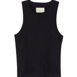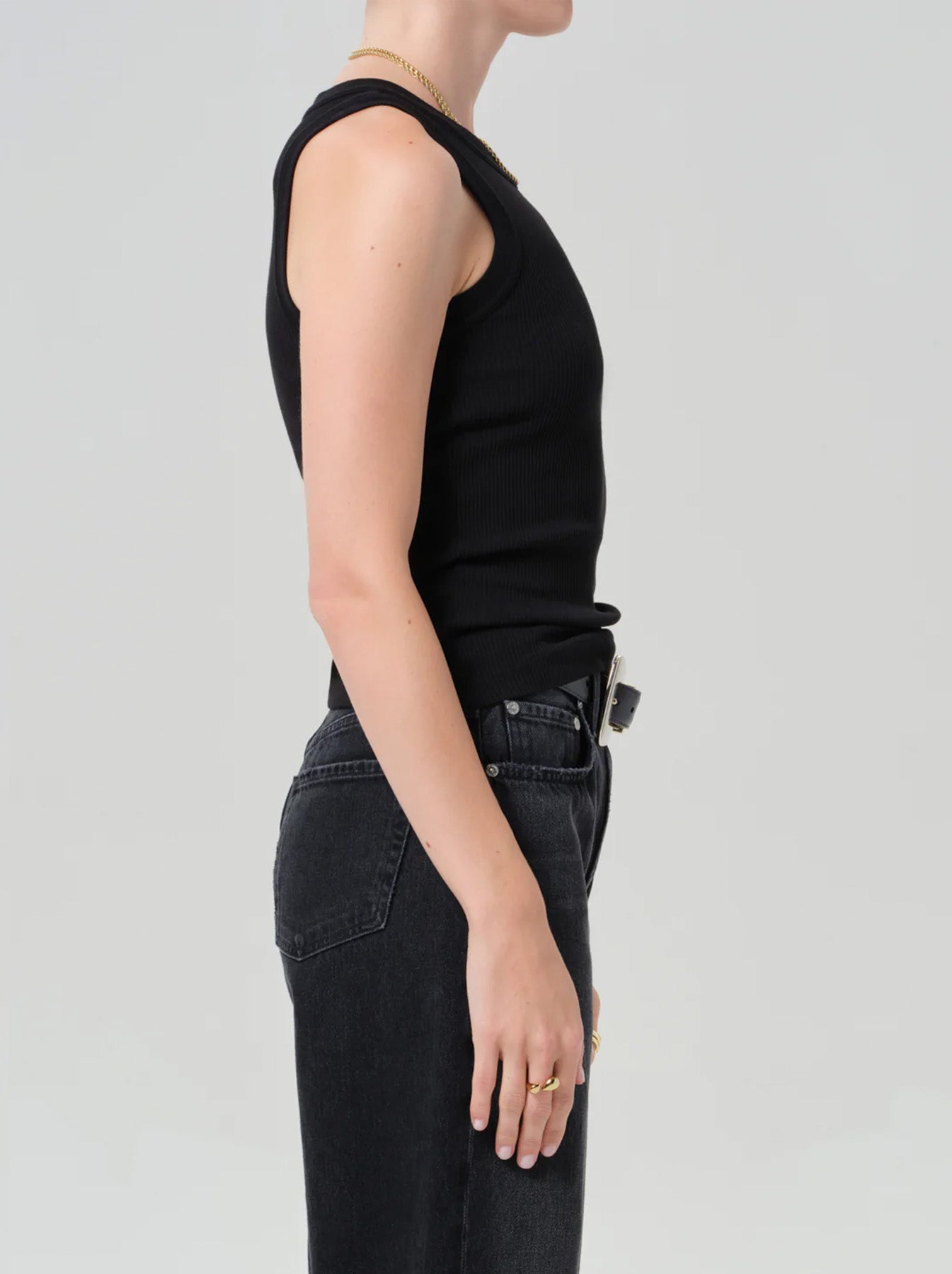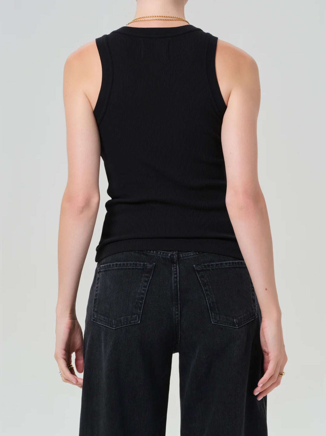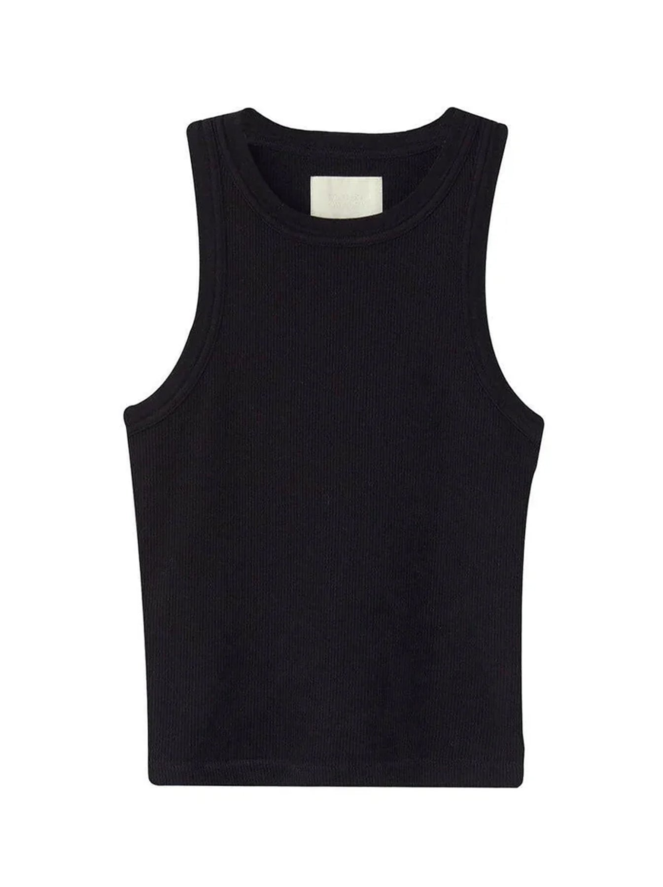 - Details: Ribbed tank with ribbed collar, underarm and hem finishing
