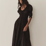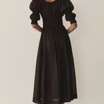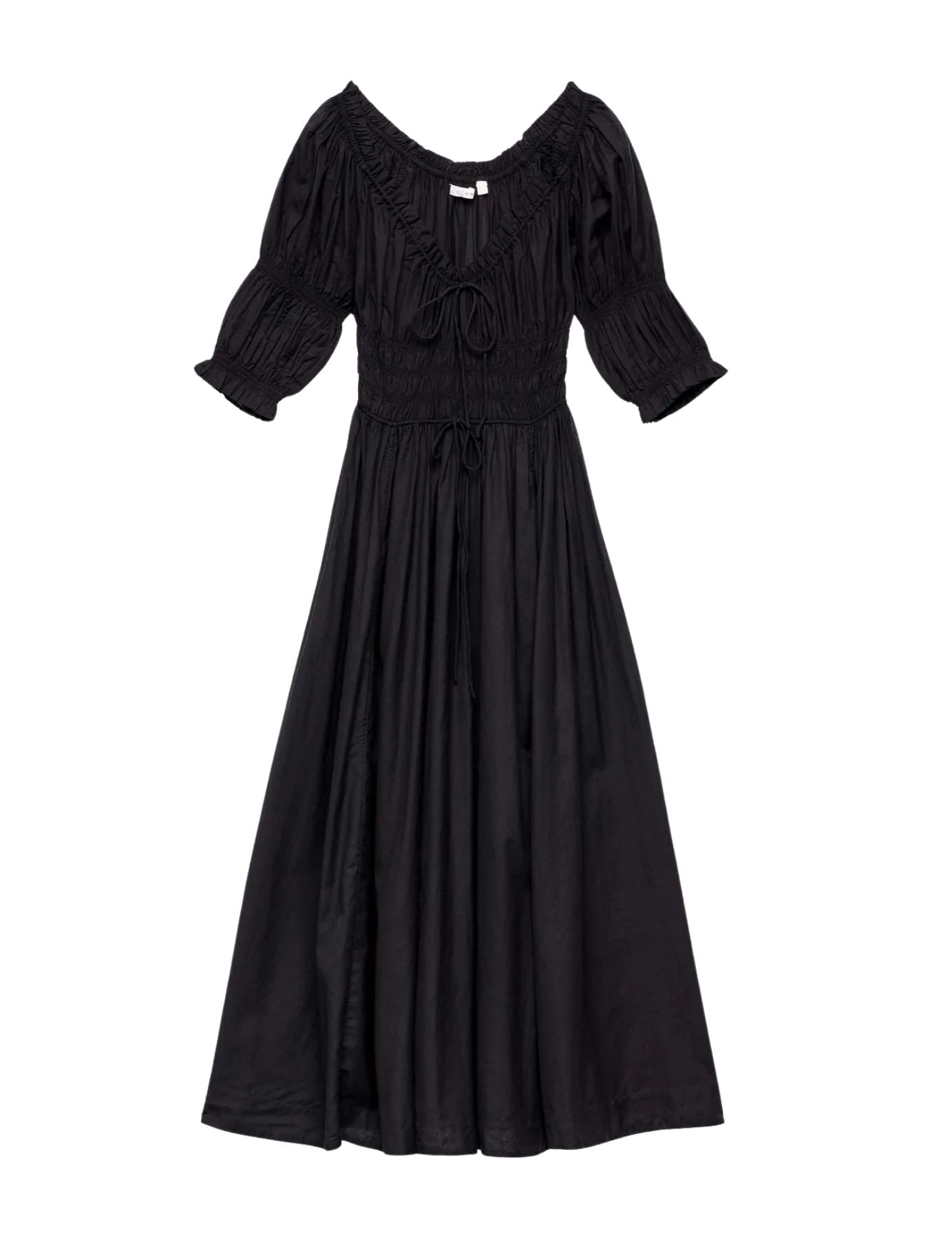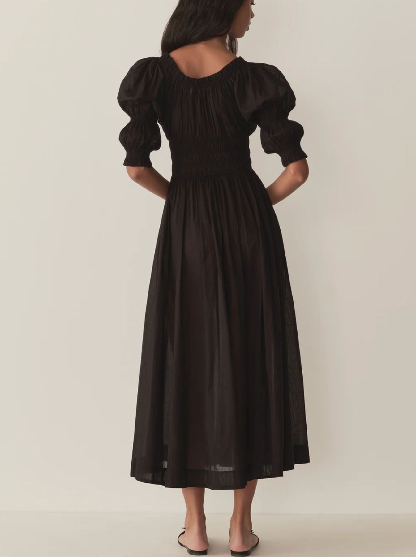 Designed in a dreamy, lightweight mix of organic cotton and viscose, DÔEN's charming Ischia Dress—an all-time favorite since Spring 2021—plays with double-puffed sleeves and a scoop neckline decked out with ruffles and a handy center tie. The smocked bodice and adjustable waist tie lead into a flowy A-line skirt that floats right above the ankles.