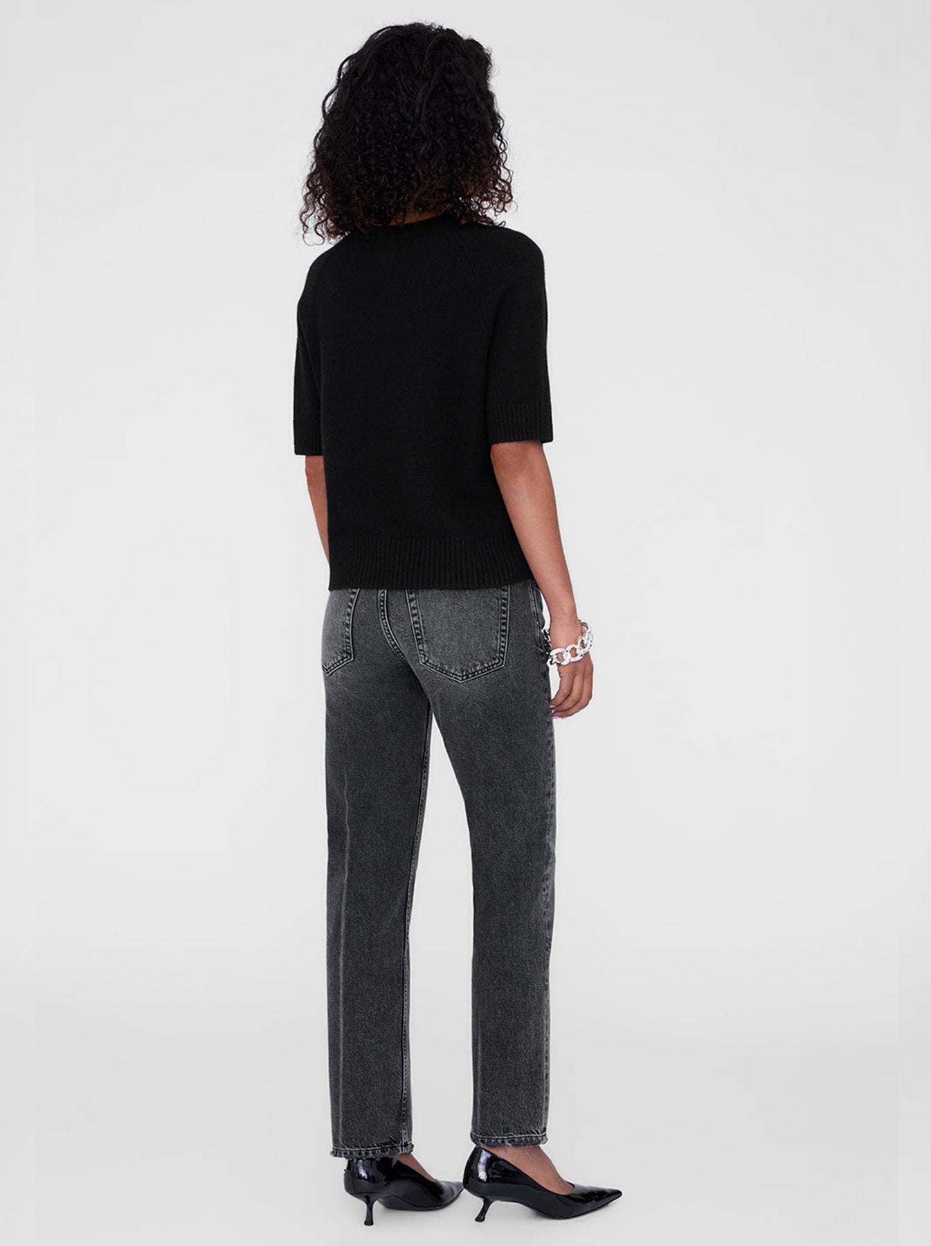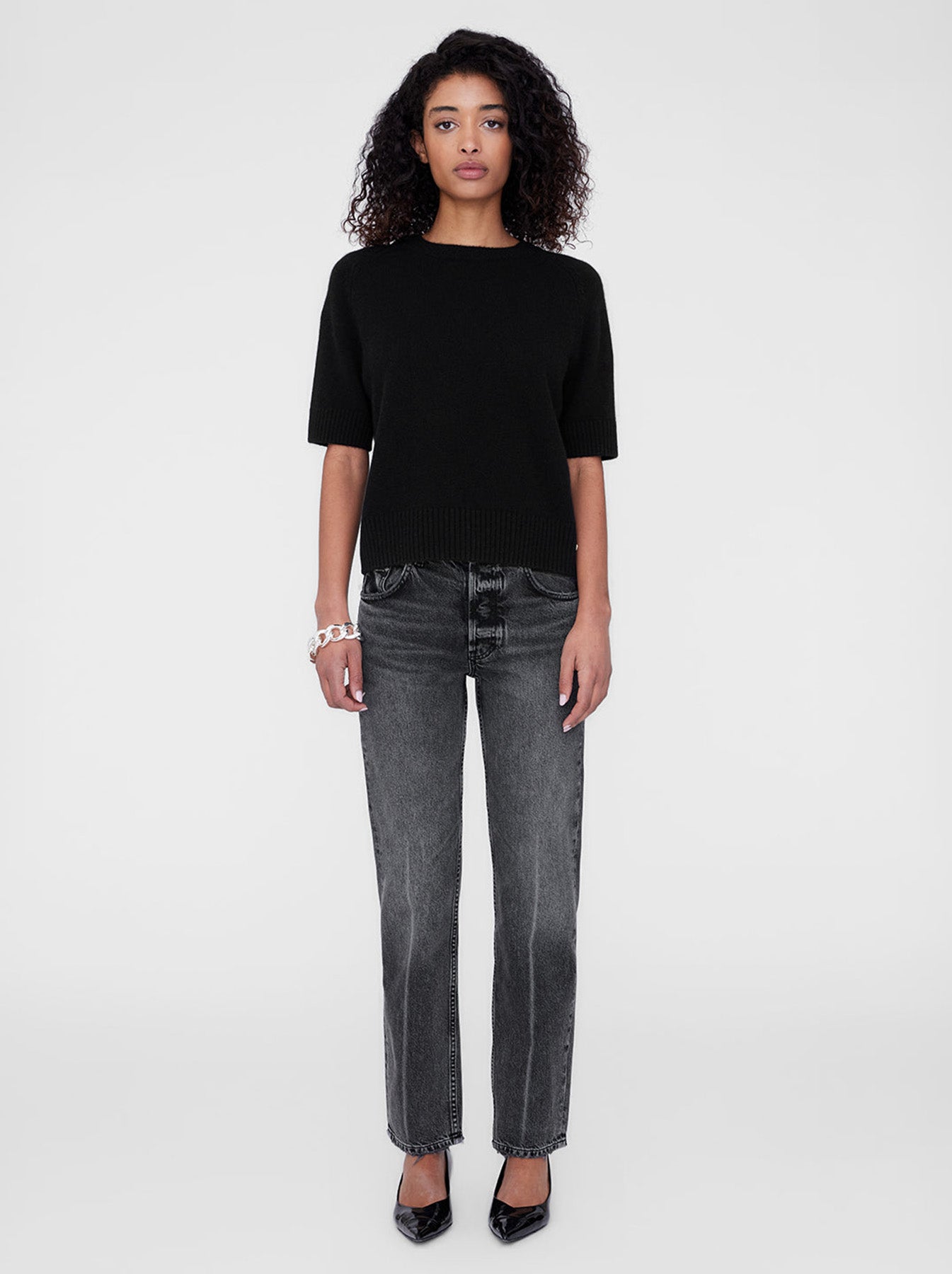 Experience effortless elegance with the Jackson Cashmere Sweater from Anine Bing. Crafted from midweight cashmere, it offers a luxuriously soft feel that provides warmth without added bulk, perfect for year-round comfort. Its versatile black shade pairs seamlessly with skirts or trousers, making it an essential choice for dressing up on any evening occasion.