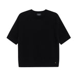 - Details: jersey stitch cashmere knit, crew neckline, raglan sleeves, hip length with a relaxed and oversized, boxy fit.